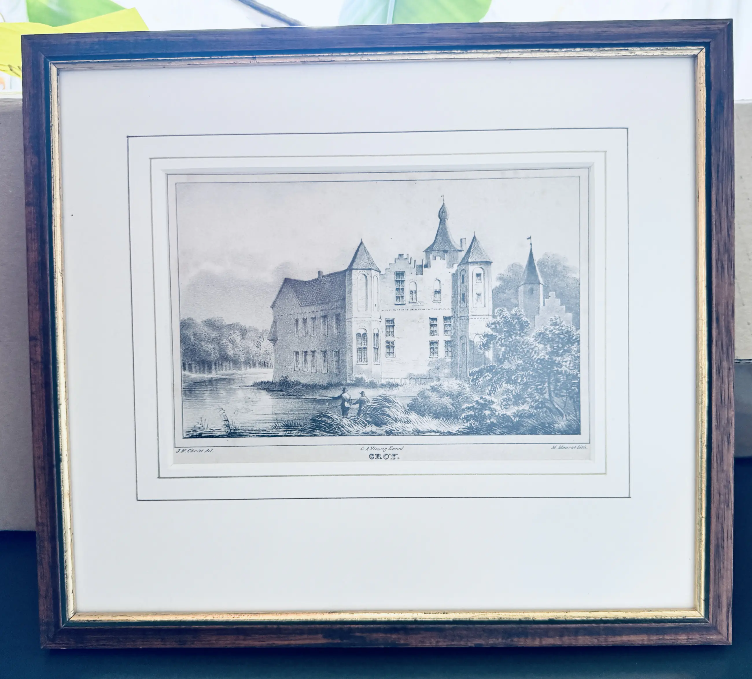 19e-eeuwse lithografie met voorstelling van Kasteel Croy te Aarle-Rixtel (Noord-Brabant).