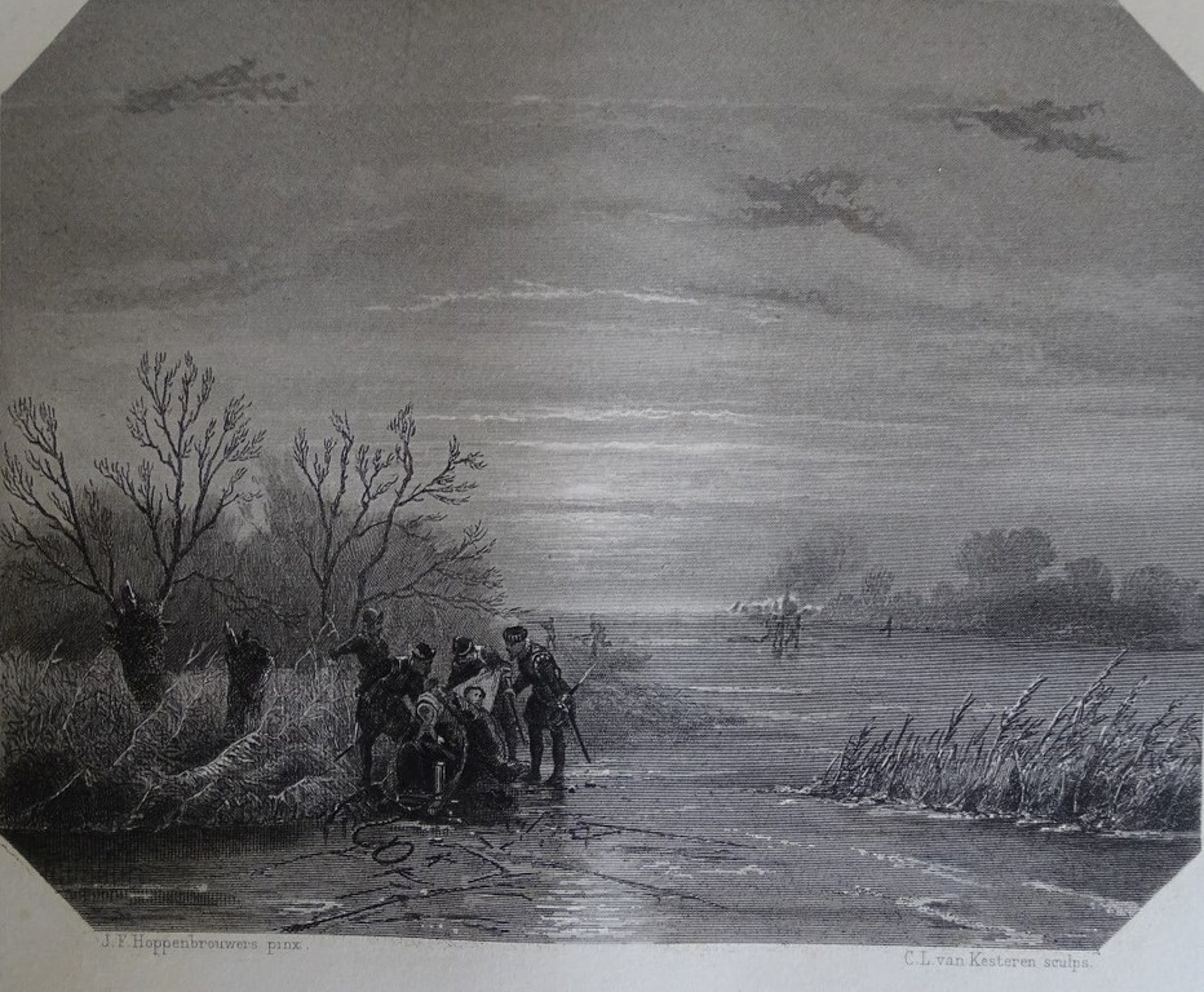 op schaatsen op de vlucht sloeg voor de naderende Spaanse troepen.