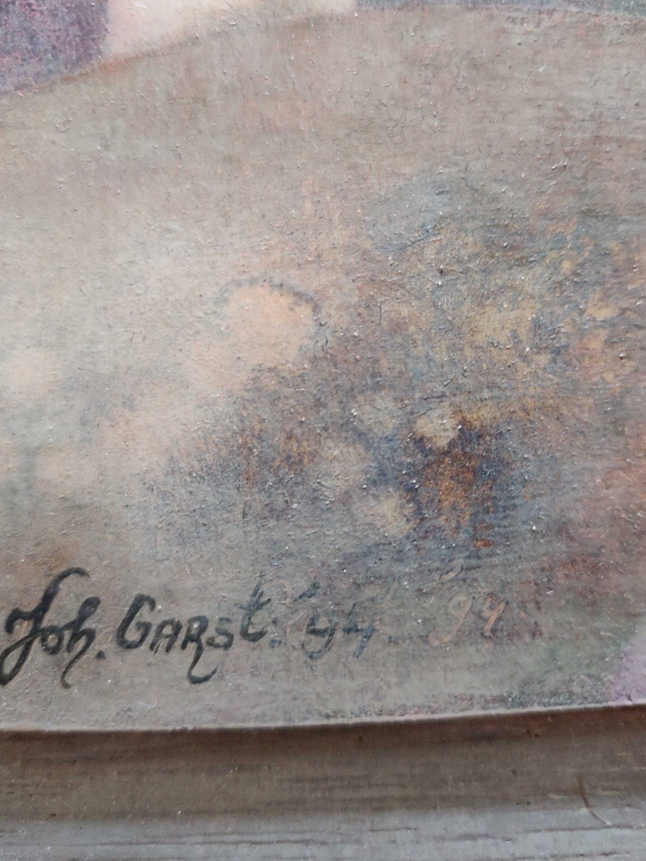 Schilderij door Johannes Garst. Geen titel bekend. Olieverf. In houten lijst. Werk is in goede staat.