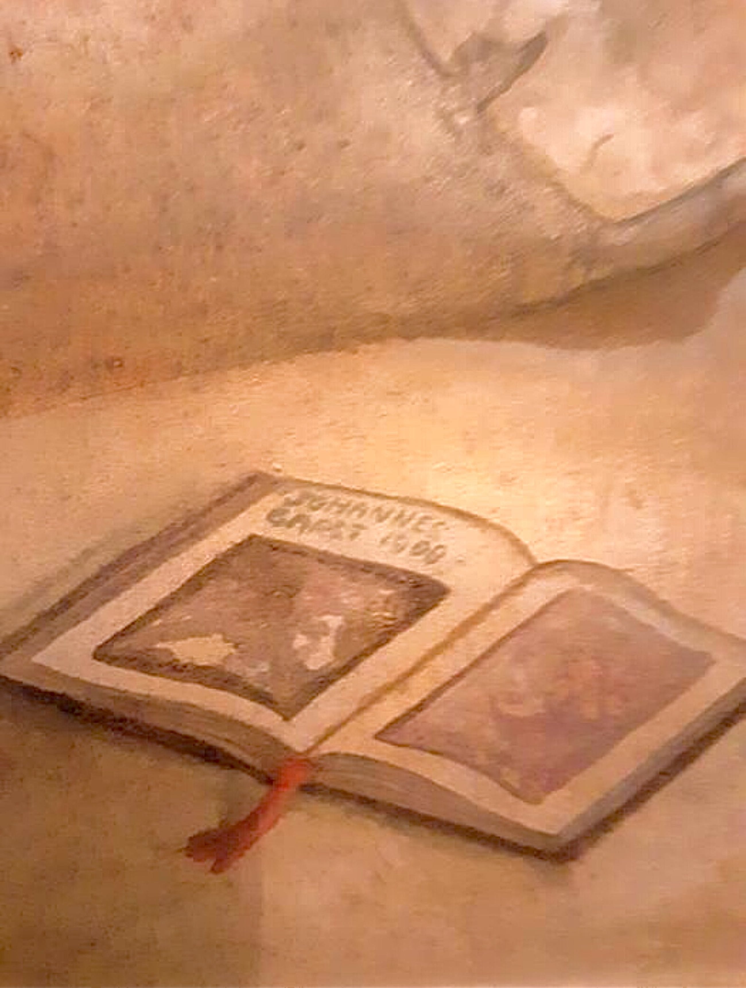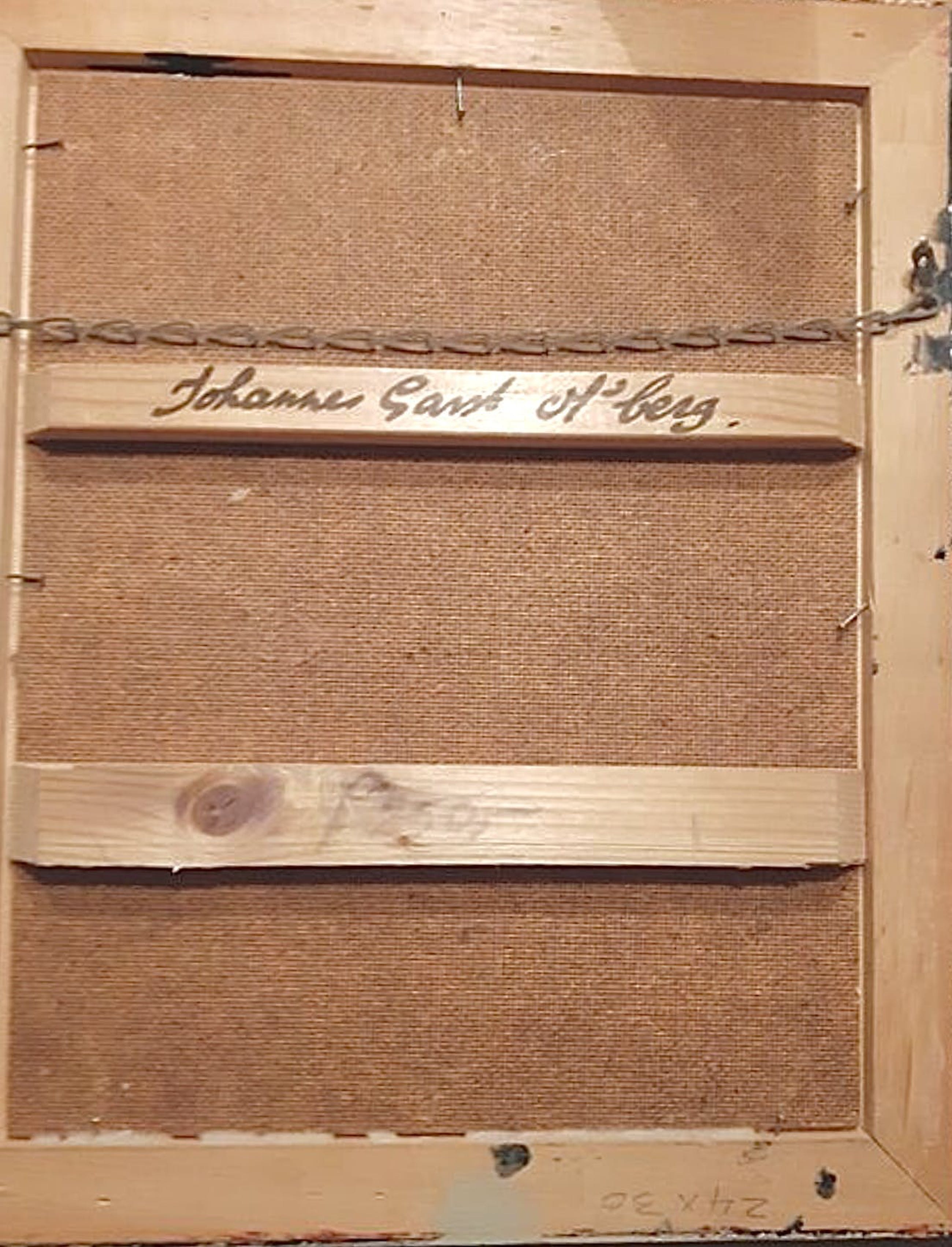 Olieverf op houten paneel - schilderij wordt geleverd met lijst als op foto's - handgesigneerd Johannes Garst 1988 op voorzijde (op afgebeeld boek) en op achterzijde van het werk.
