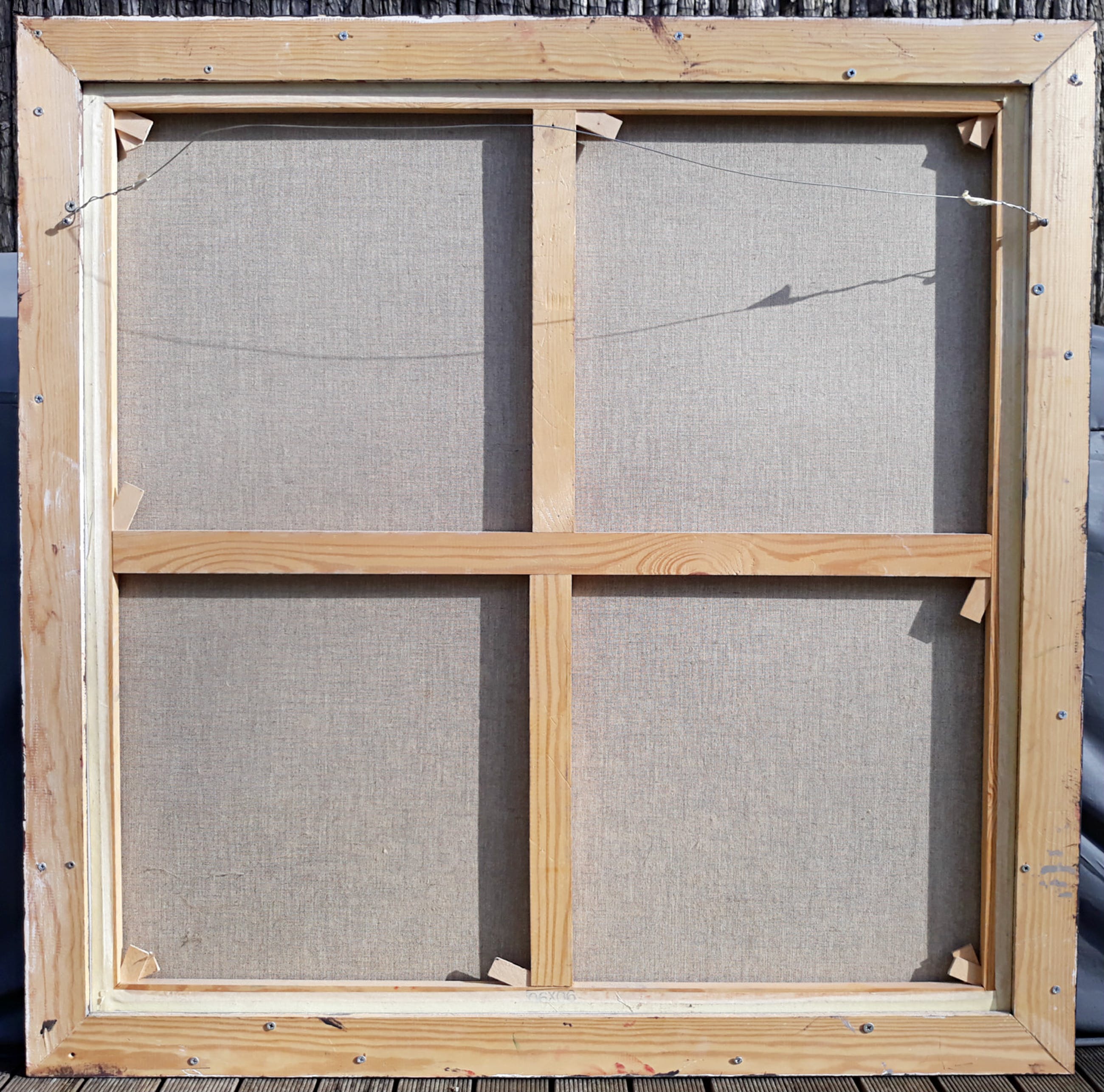 Afmetingen: 98cm x 98cm (incl. lijst), 90cm x 90cm (doek)