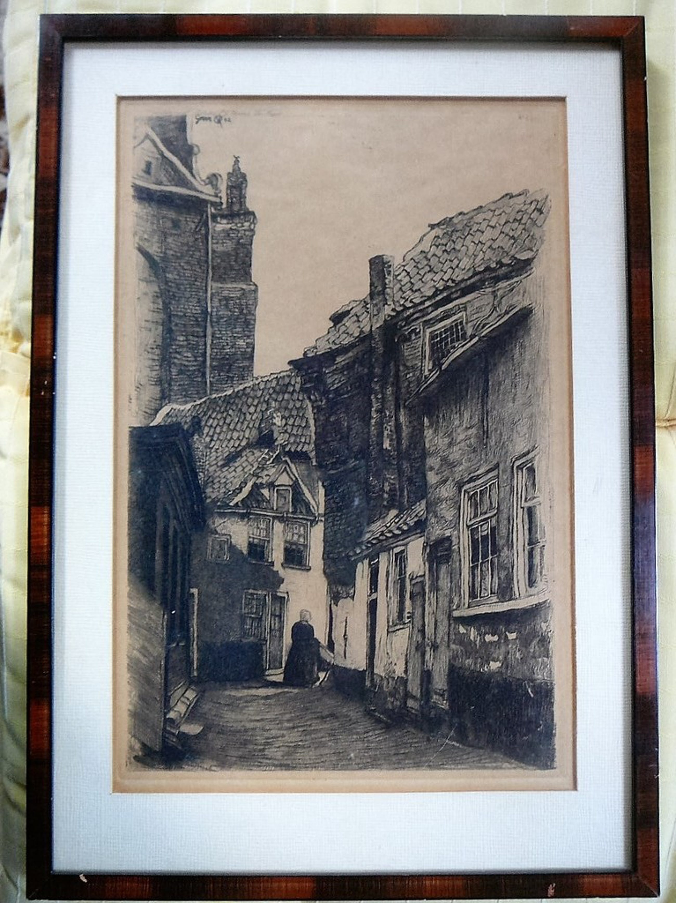 Heel mooie ets van Steegje te Grave door Graadt van Roggen 1867-1959