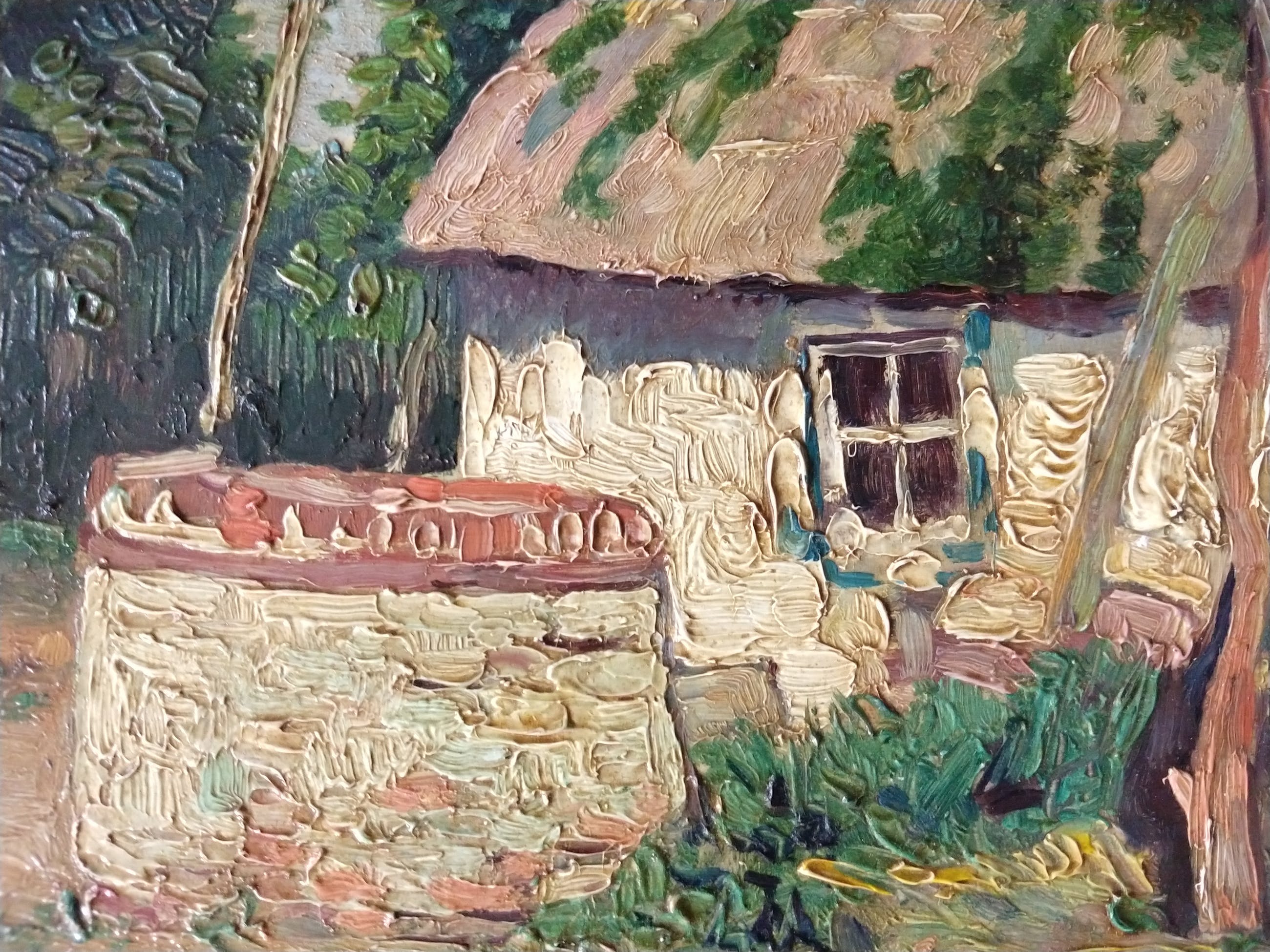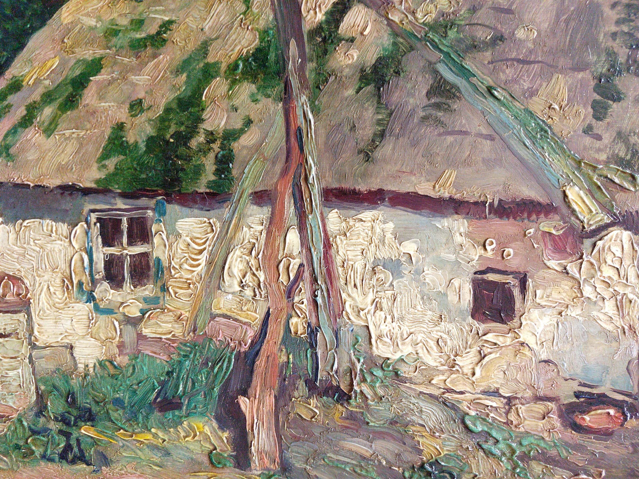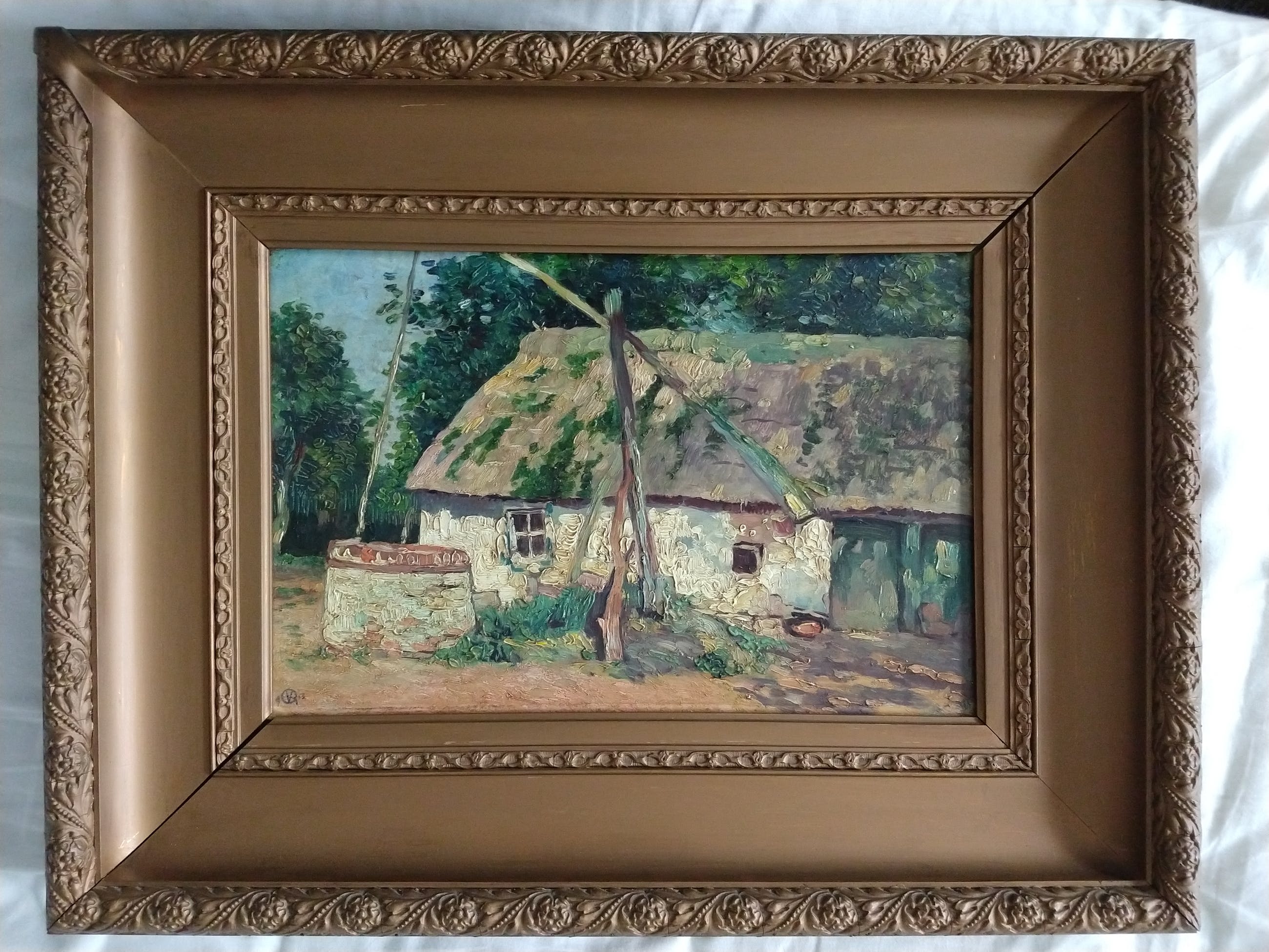 Johannes Graadt van Roggen (1867-1959). Huisje te Leende. Gesigneerd en verso met titel: Het huisje bij Leende. Gesigneerd met monogram en gedateerd 1912. Het schilderij is in zeer goede staat. De lijst heeft ouderdomssporen.