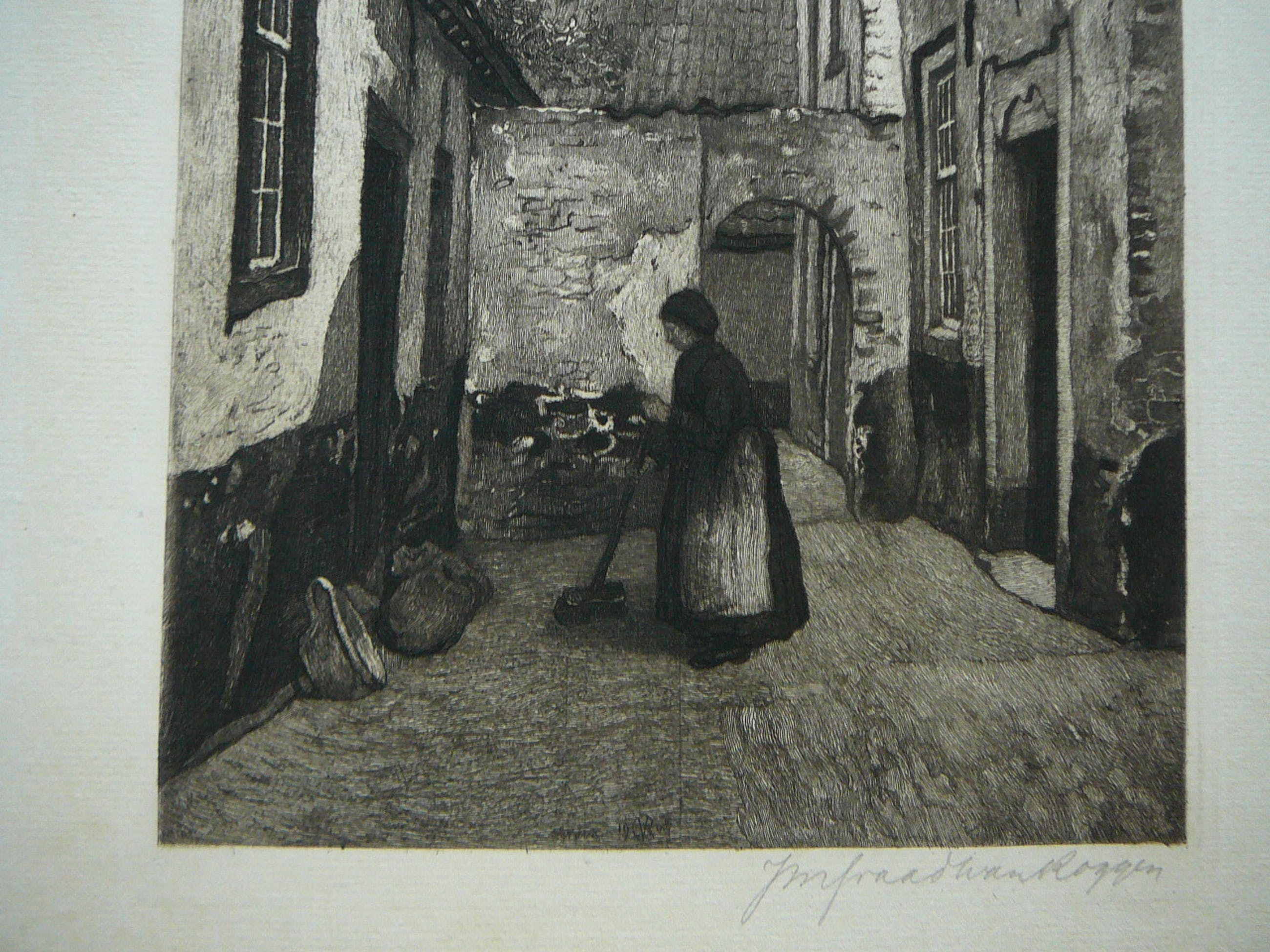 Zeer mooie ets van Graadt van Roggen uit 1904 Hofje te Grave