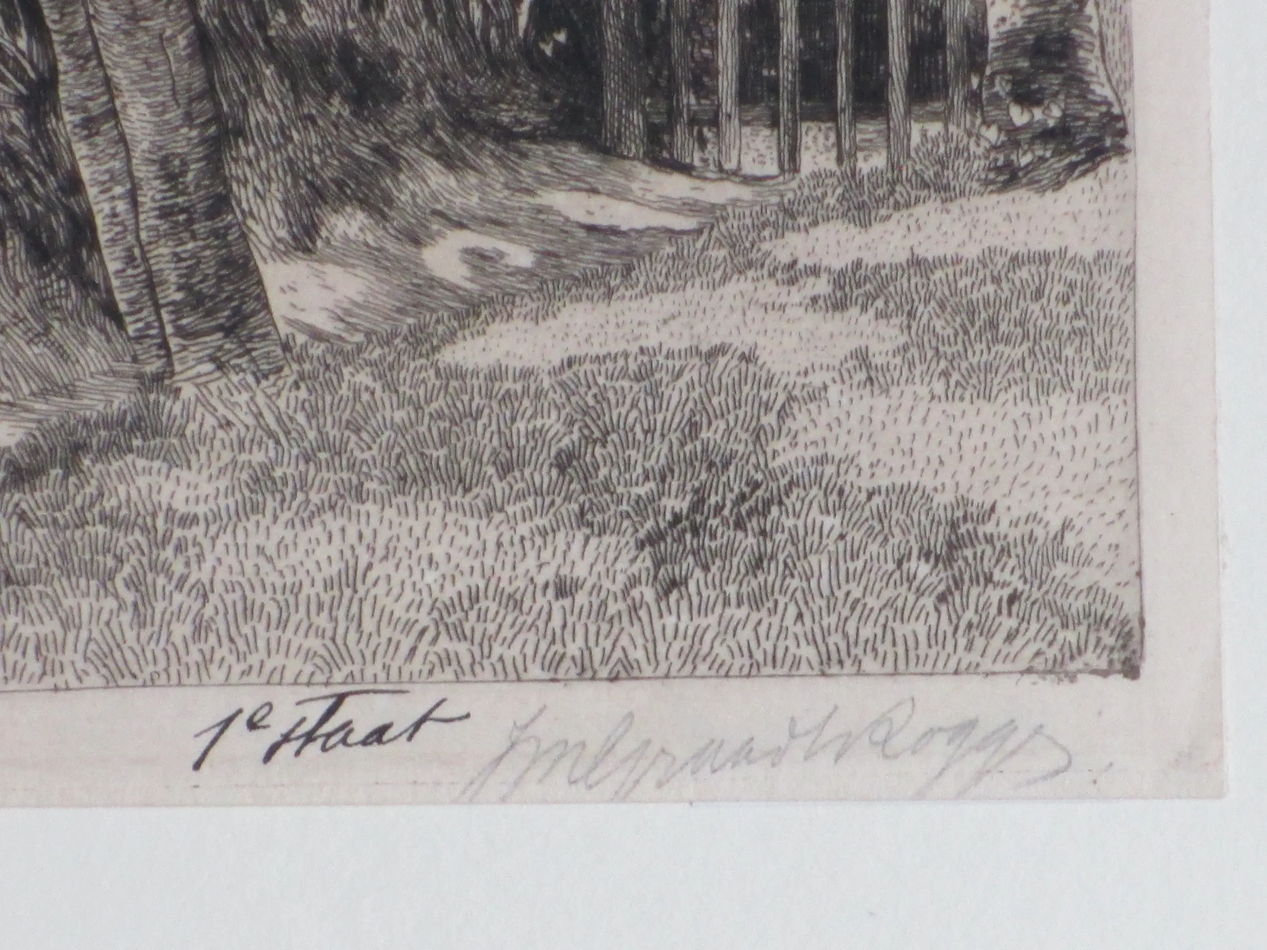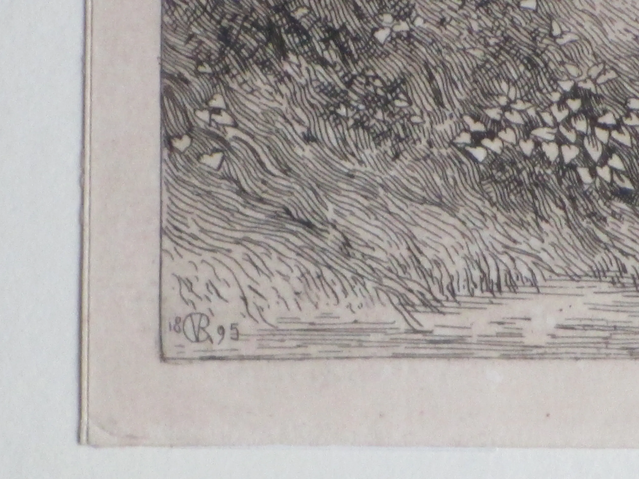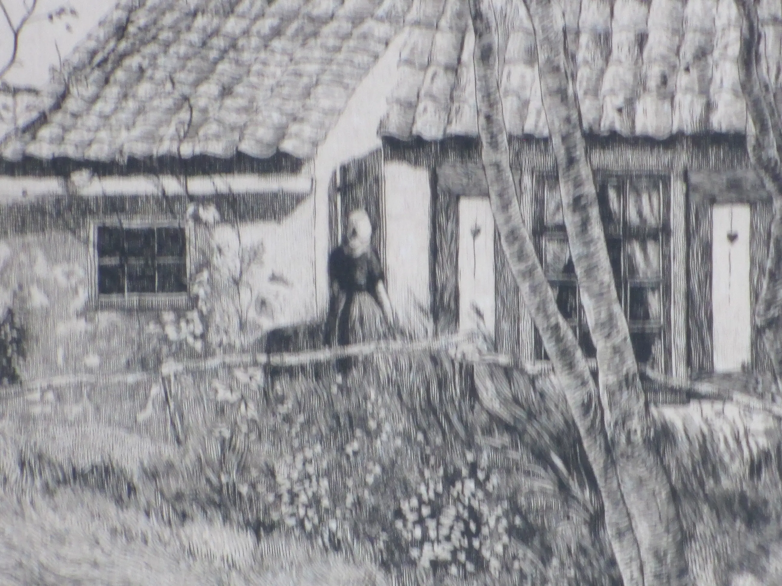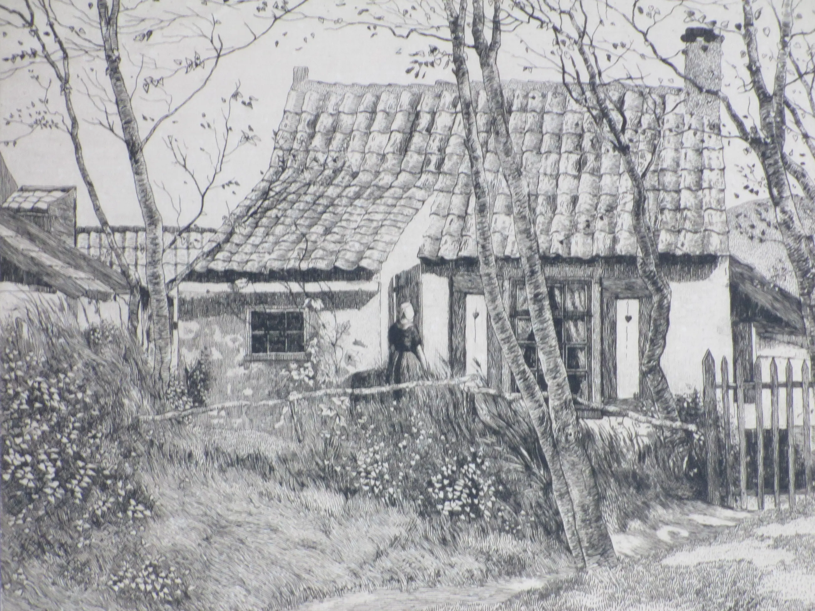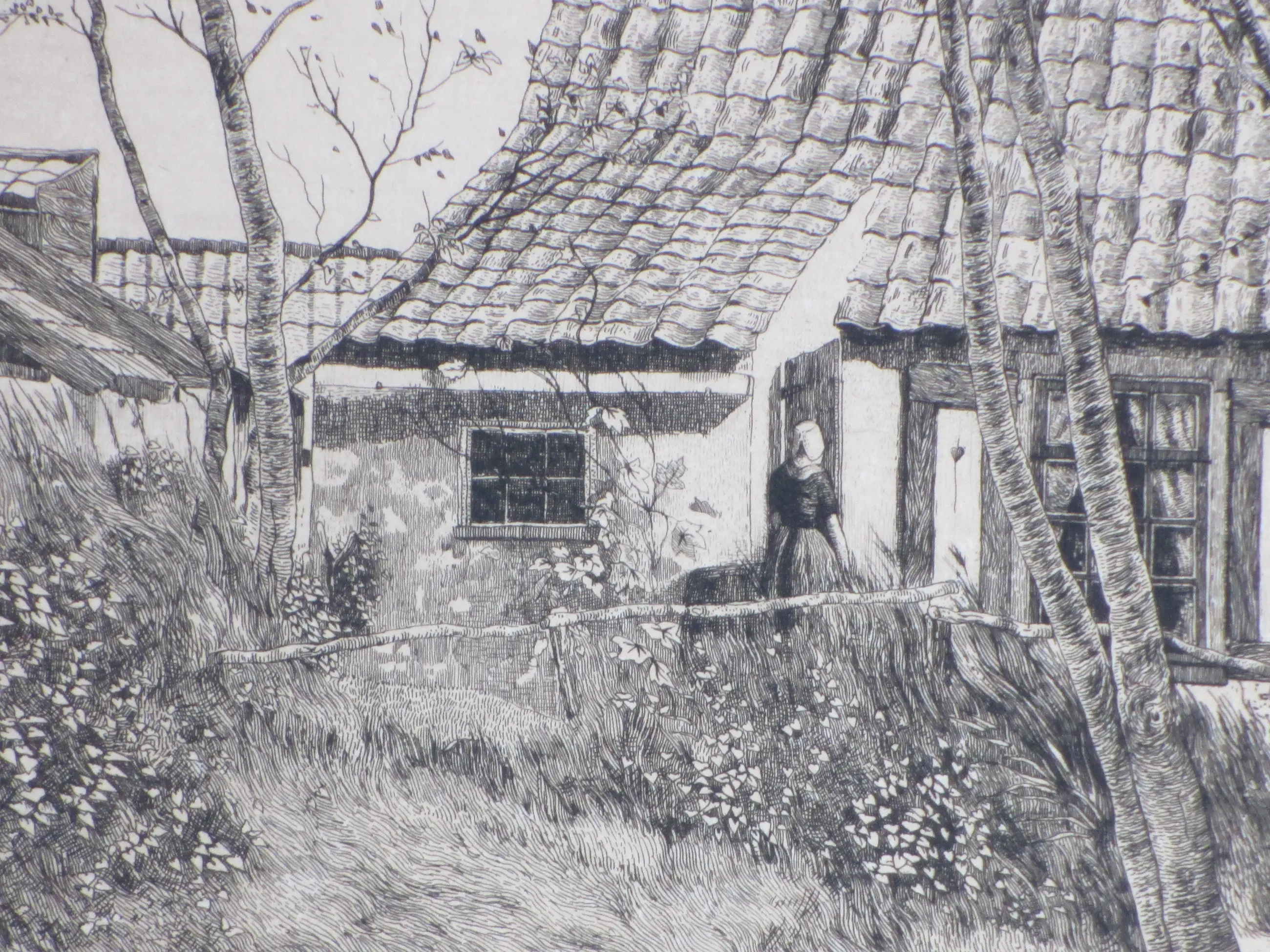 Weinig geziene ets door J.M. Graadt van Roggen Voorstelling van een huisje met boerin in Nieuw Domburg Losbladig, beeldmaat 18.2x23.1, bladmaat 20x24.8 Gesigneerd in potlood r.o.: 'JM GraadtvRoggen' Annotatie in pen r.o.: '1e staat' Tevens gemoznogrammeerd en gedateerd in de druk l.o.: '18GvR95'
