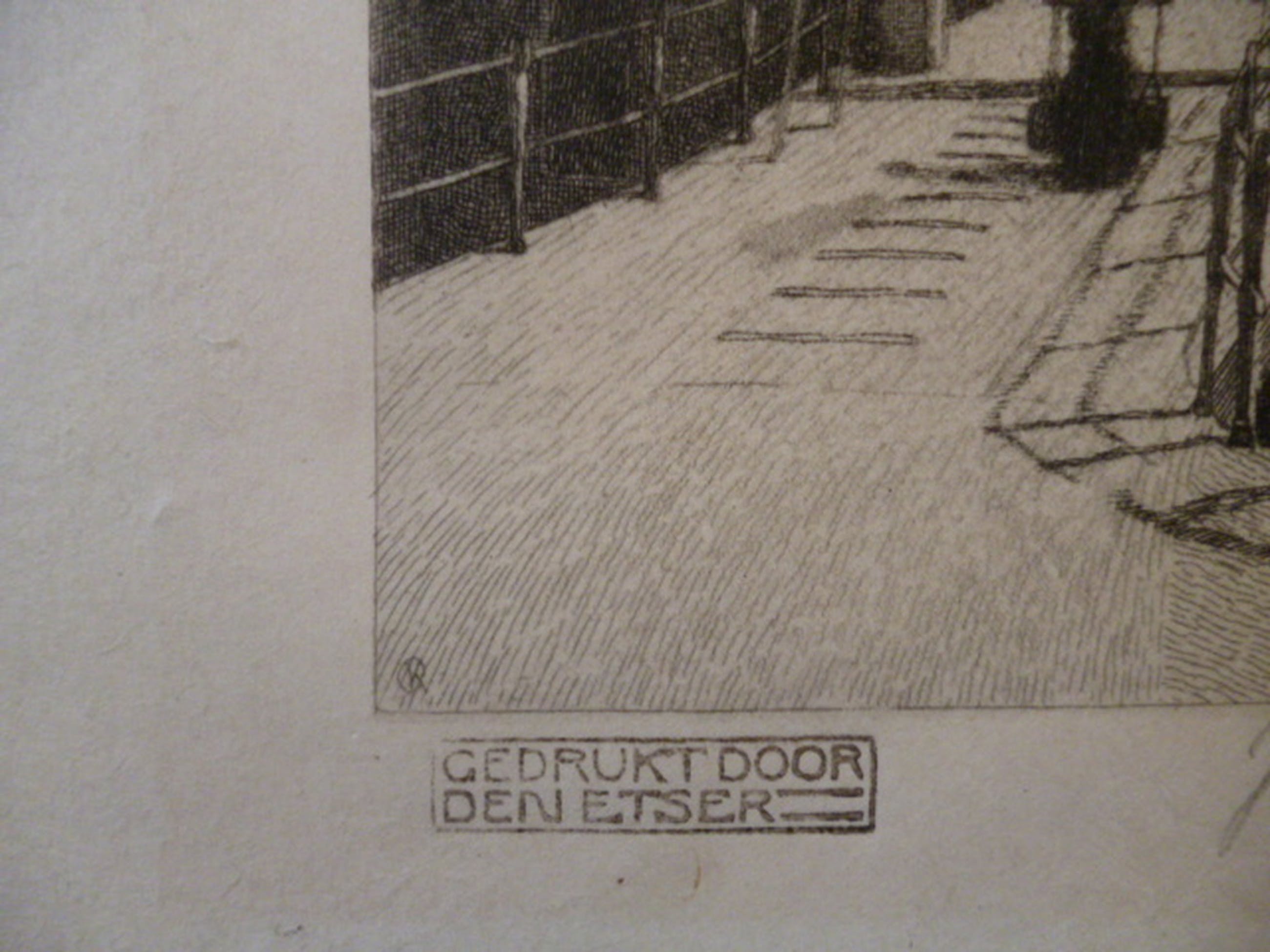 Ets uit 1896. Potlood gesigneerd rechtsonder. Monogram in de plaat linksonder. "Gedrukt door den etser" linksonder.