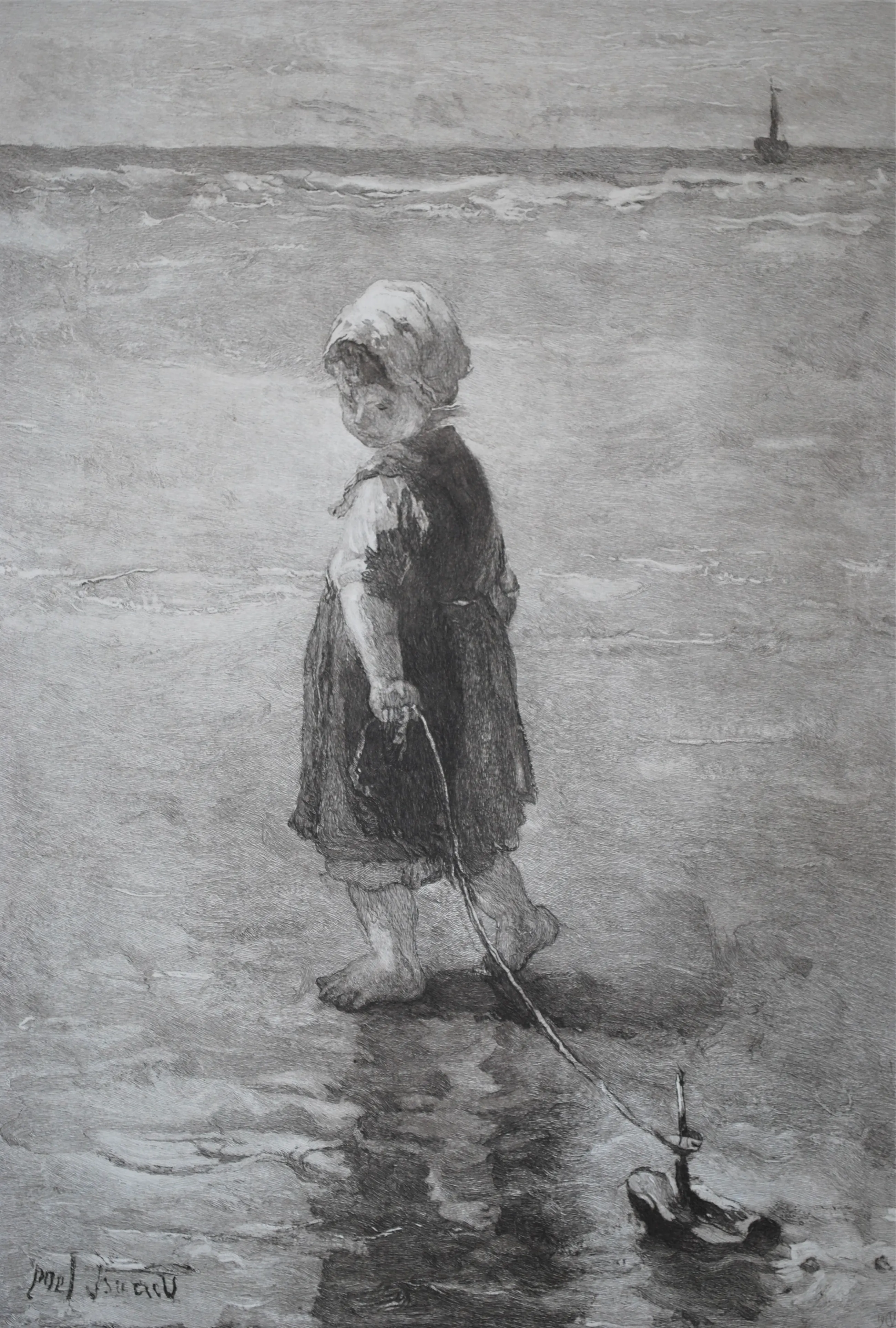 Ets naar de aquarel van Jozef Israëls. Gesigneerd in de plaat l.o.