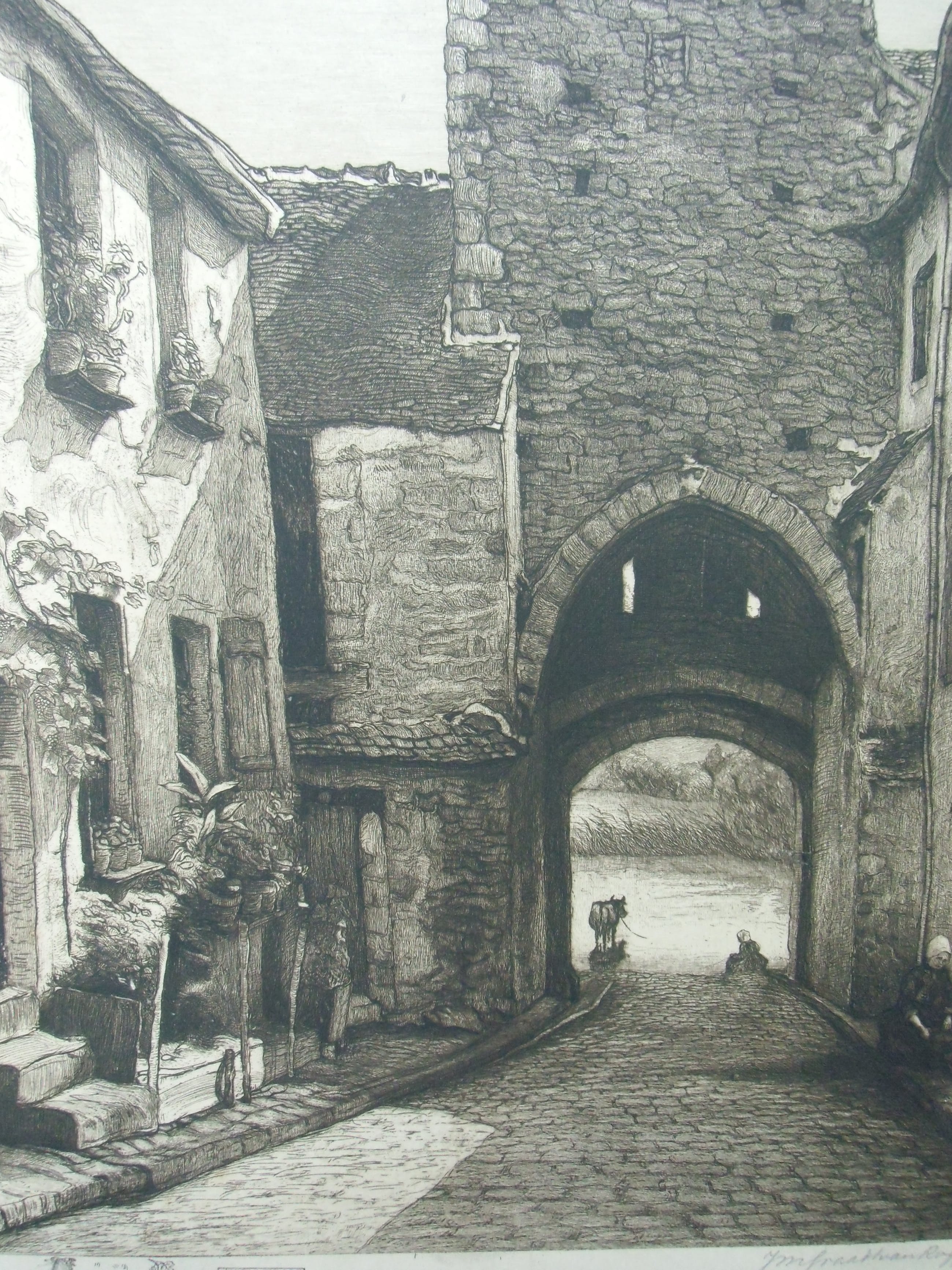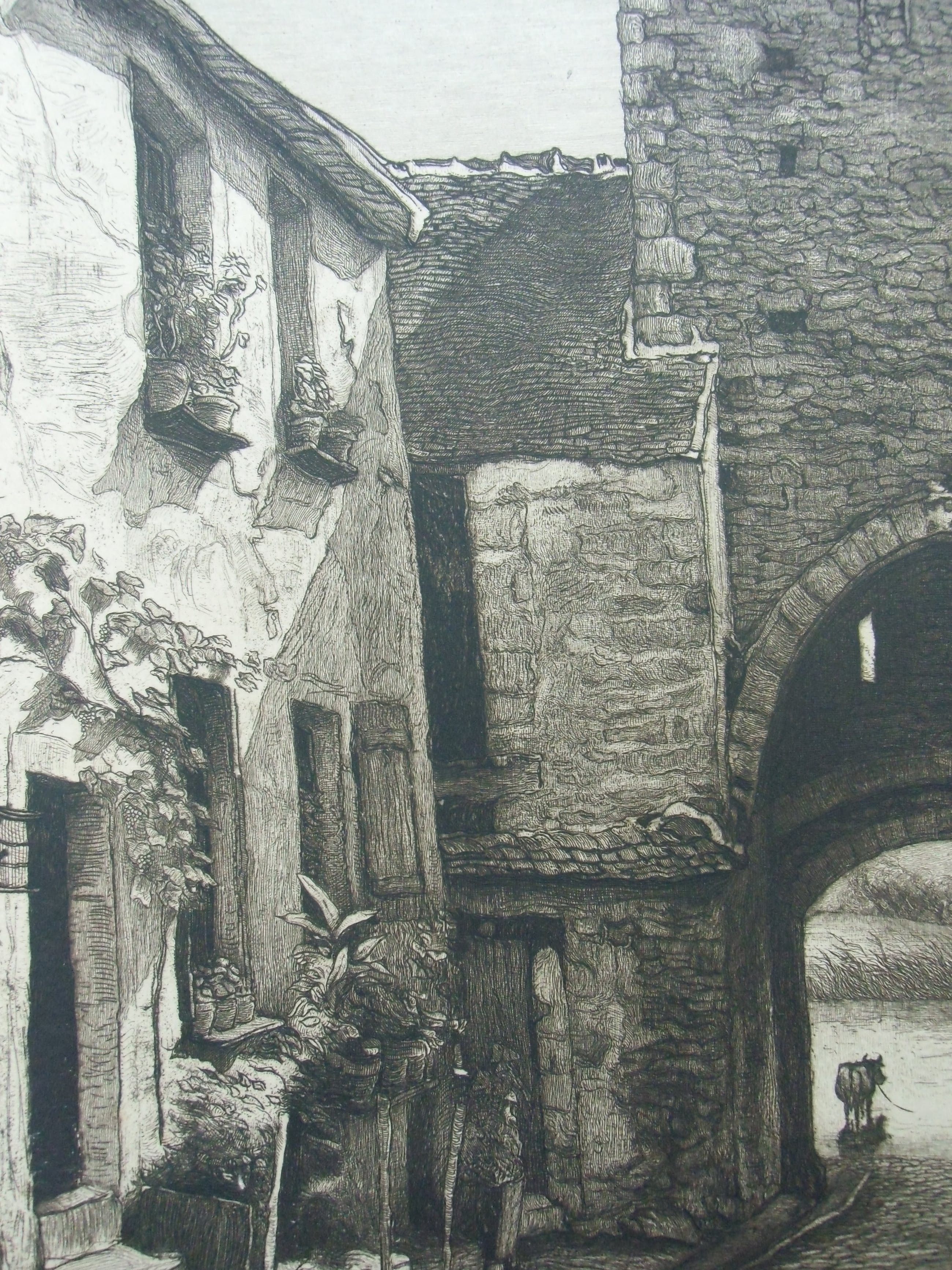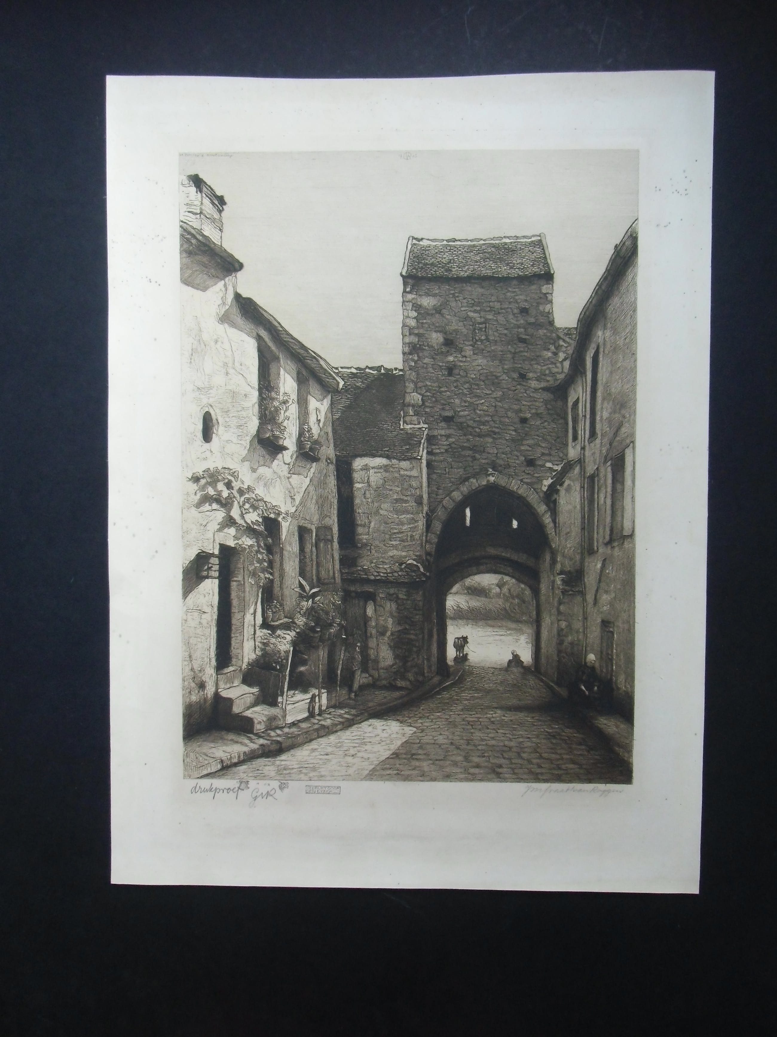 Een bijzondere in goede conditie verkerende ets van Johannes Graadt van Roggen uit 1905. Het betreft hier een PROEFDRUK geparafeerd door Graadt van Roggen en voorzien van het stempel "gedrukt door den etser " . Geen passepartout of lijst. Enkele vlekjes in de marge. Met potlood gesigneerd.