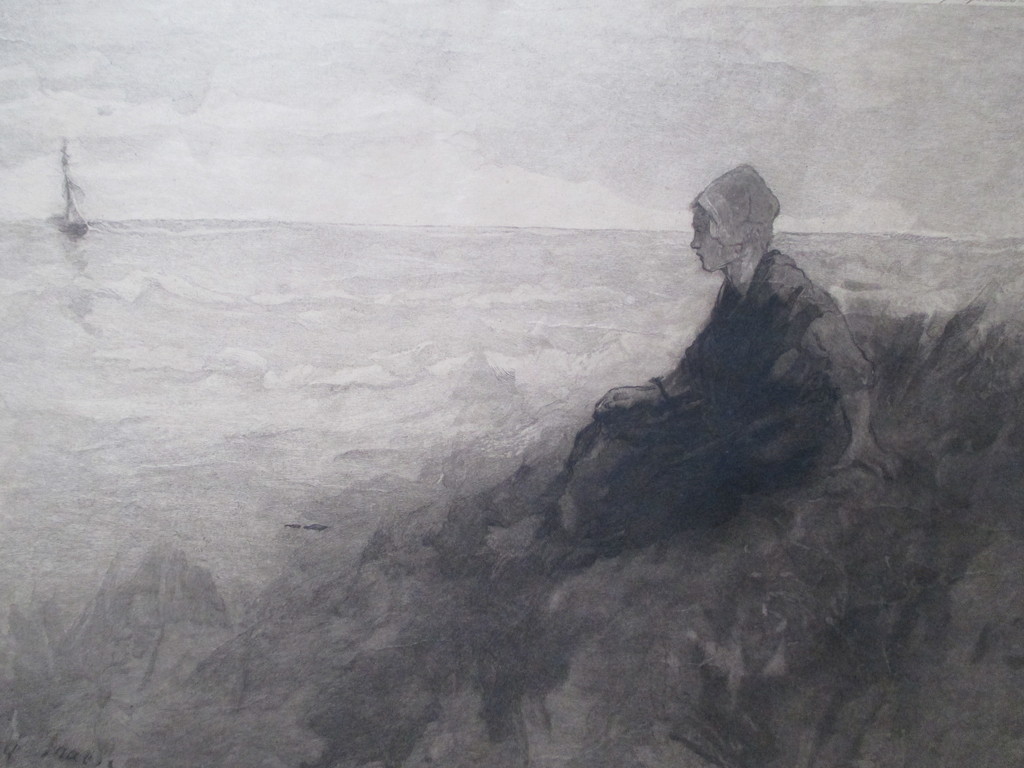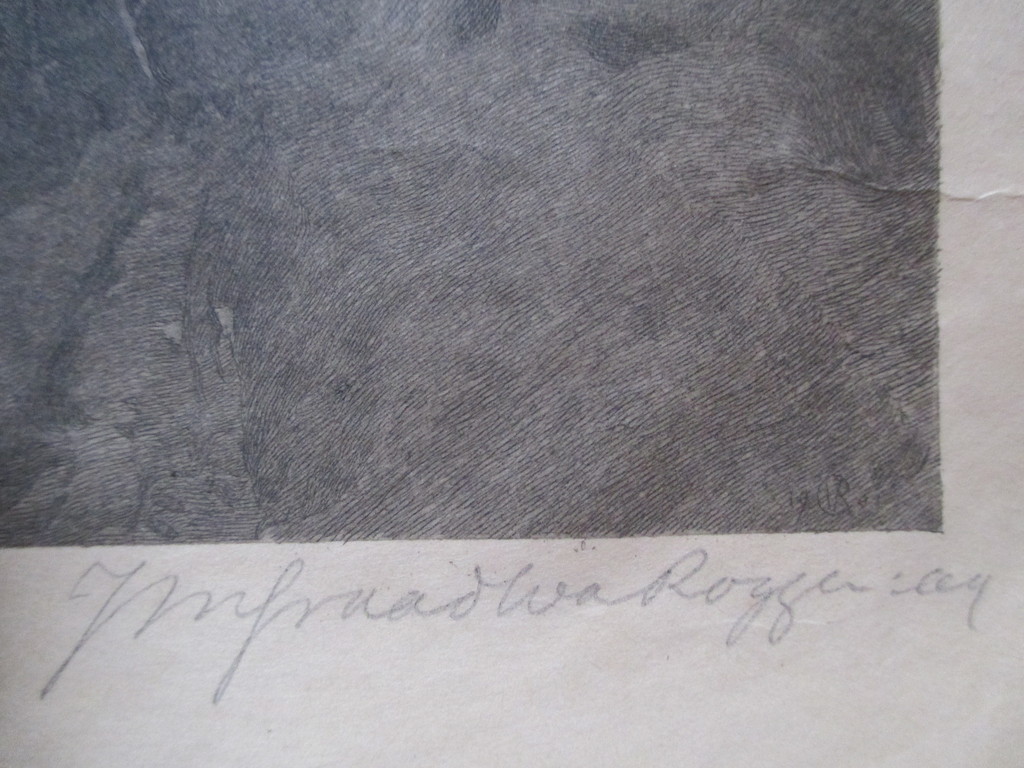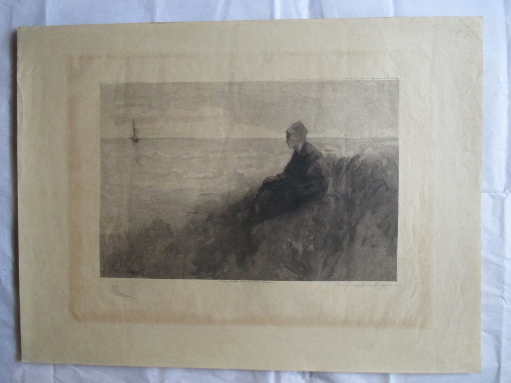 Laatste keer aangeboden: Reproduktie-ets van J. Graadt van Roggen (1867-1959) naar Jozef Israels op dun papier, r.o gesigneerd in potlood. Afm. blad 50x37,3, afm. beeld 32,2x21,3. De staat van de afbeelding is vrij goed, doch wel egaal vergeeld, zie voor de algehele staat van het blad de laatste foto.
