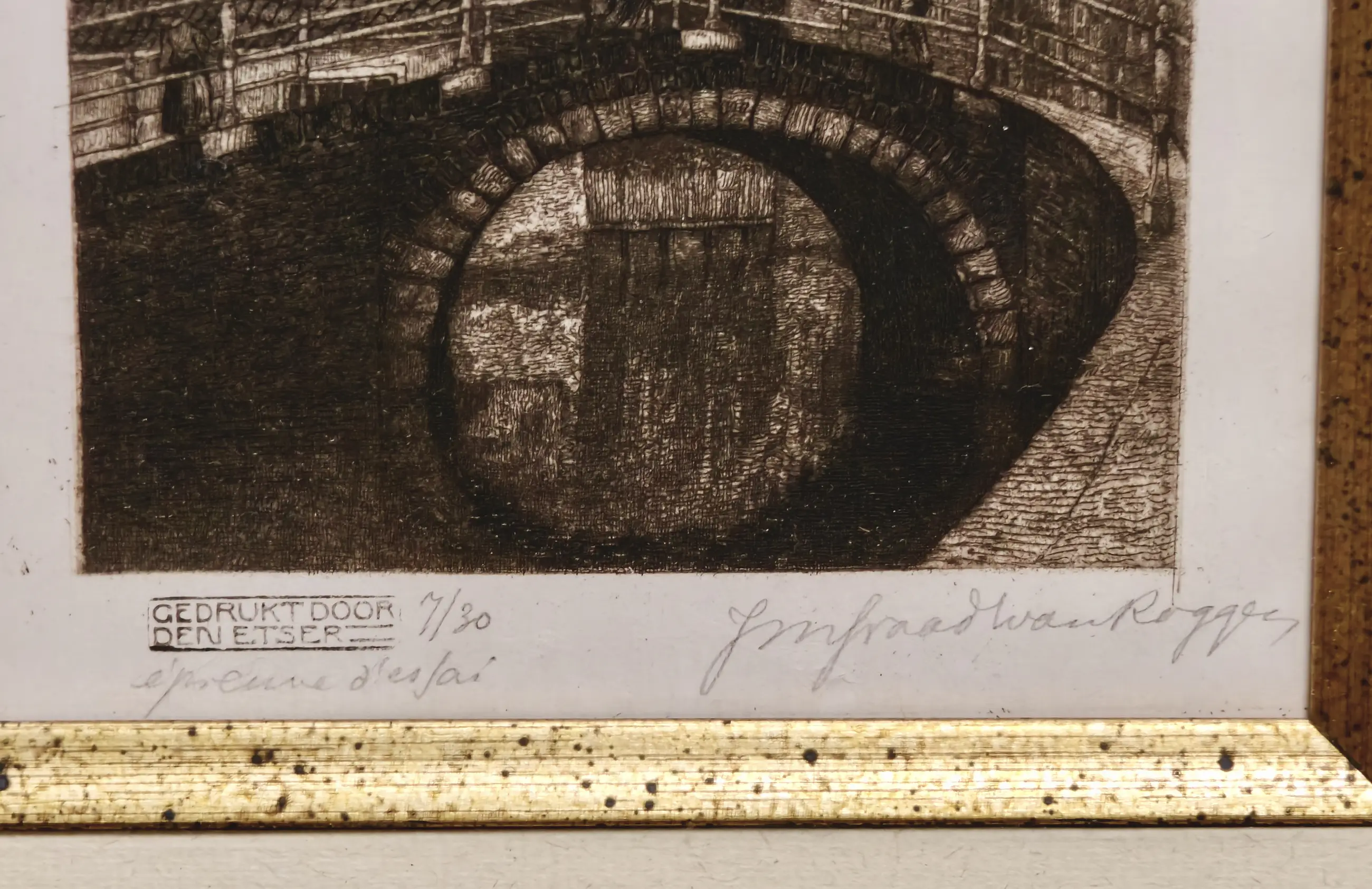 Gedrukt door de kunstenaar zelf en rechtsonder gesigneerd 'JM Graadt van Roggen'