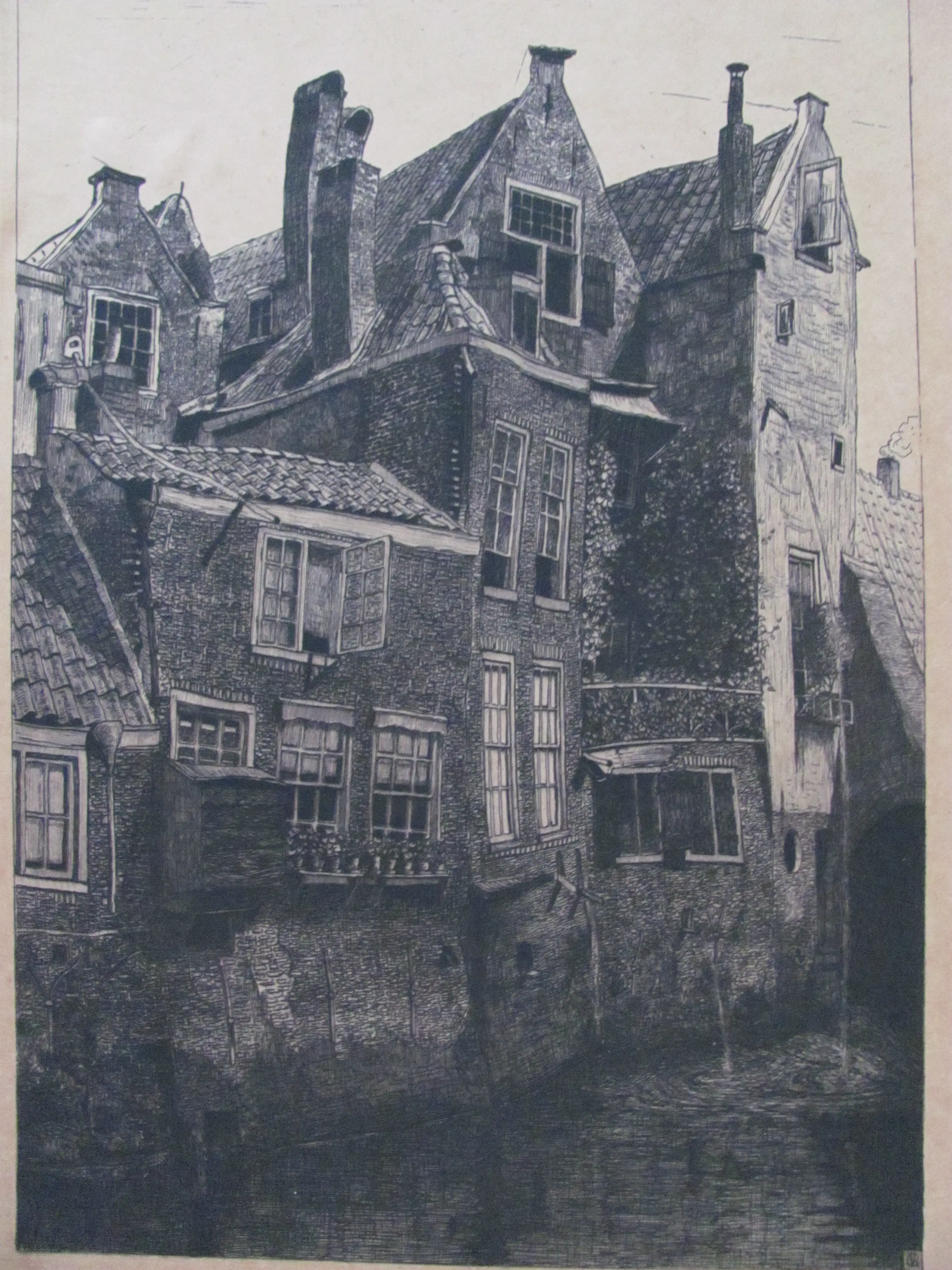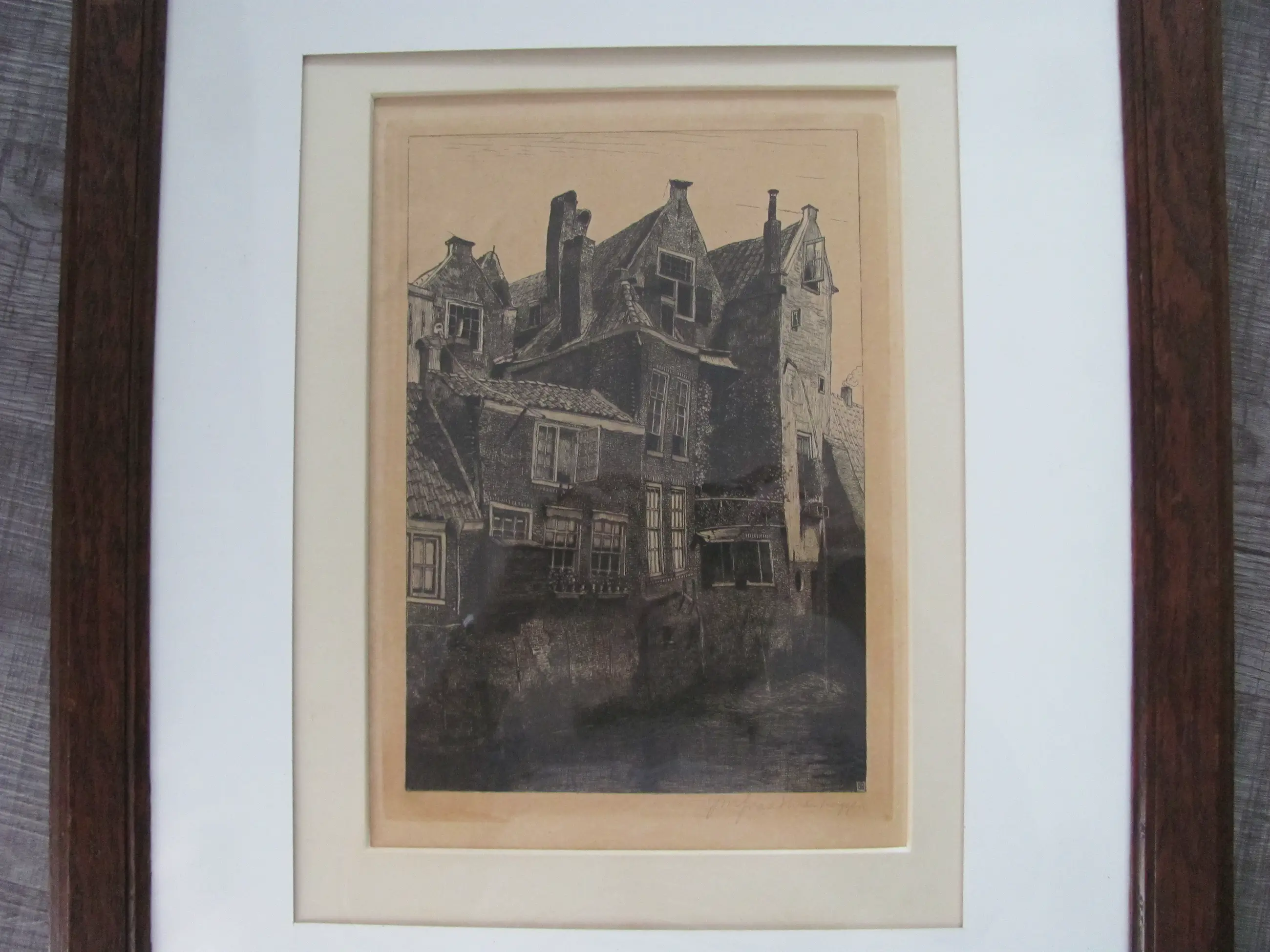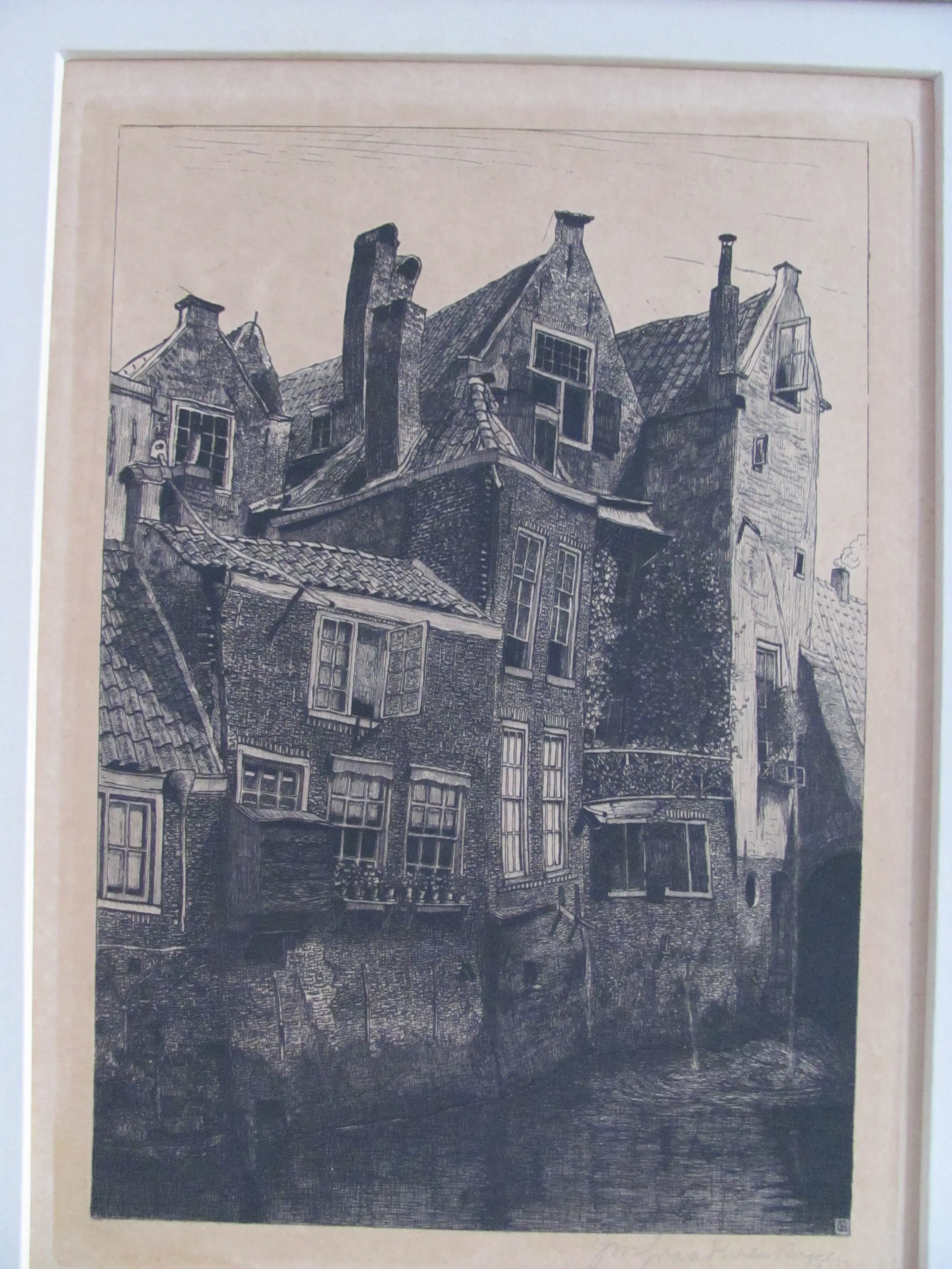 Ets van Johannes Graadt van Roggen. Ondanks de ouderdom in mooie staat. In de originele lijst, ingelijst achter glas in dubbel passepartout. In het boekje "Het grafisch werk van Johannes Matteus Graadt van Roggen (1867-1959)" staat de ets vermeld onder de naam "etsen" - 1897 no. 58.