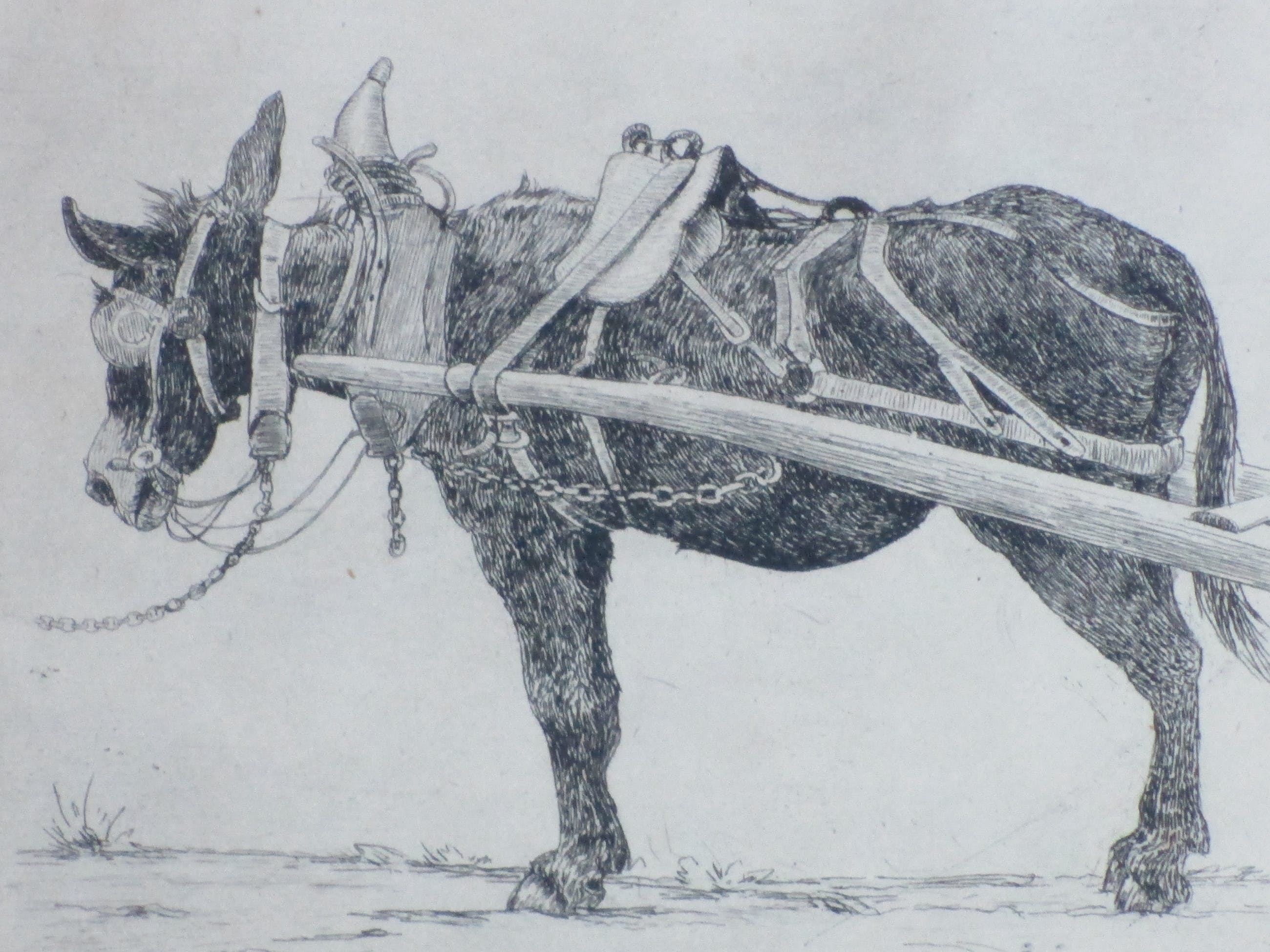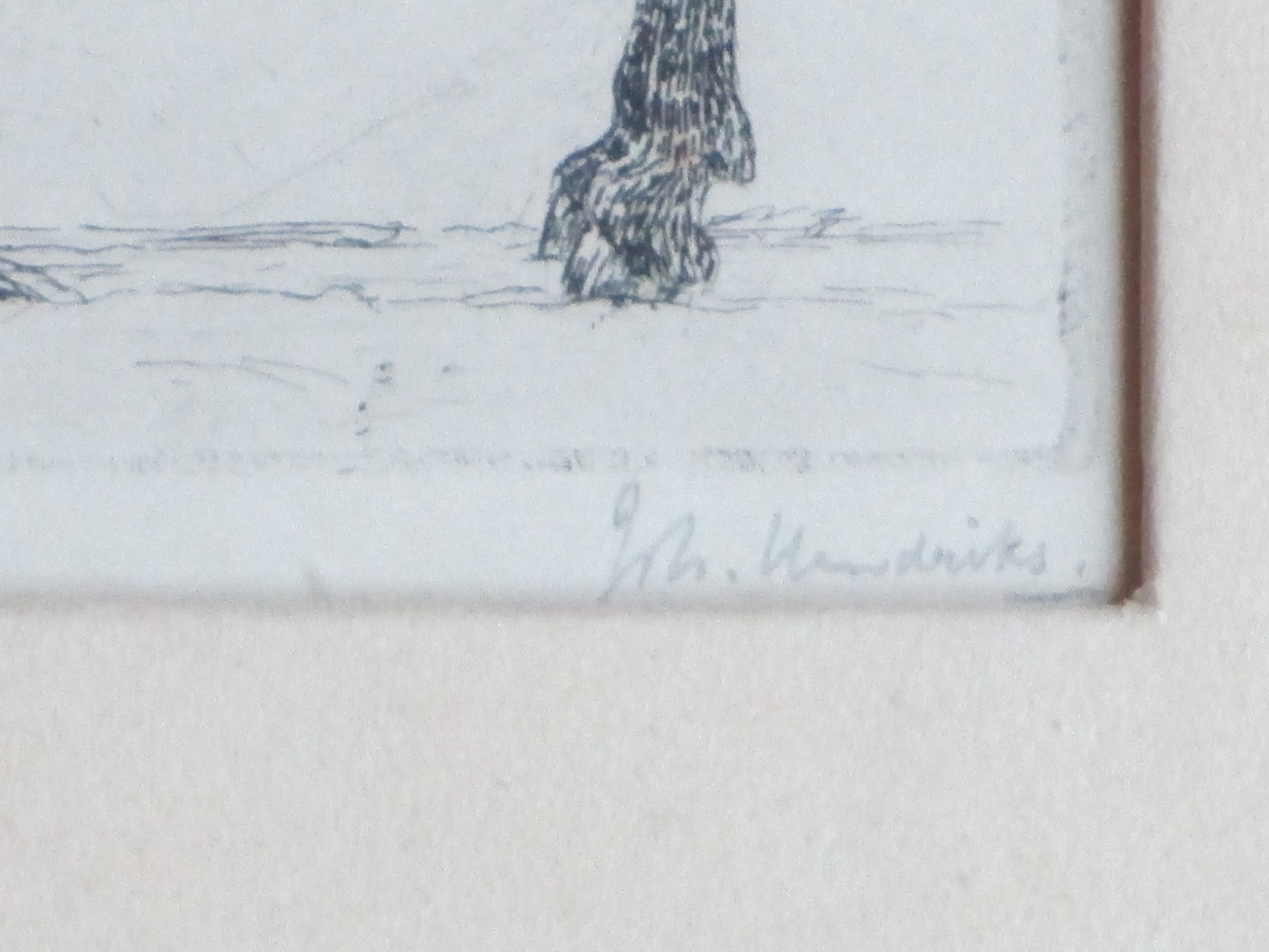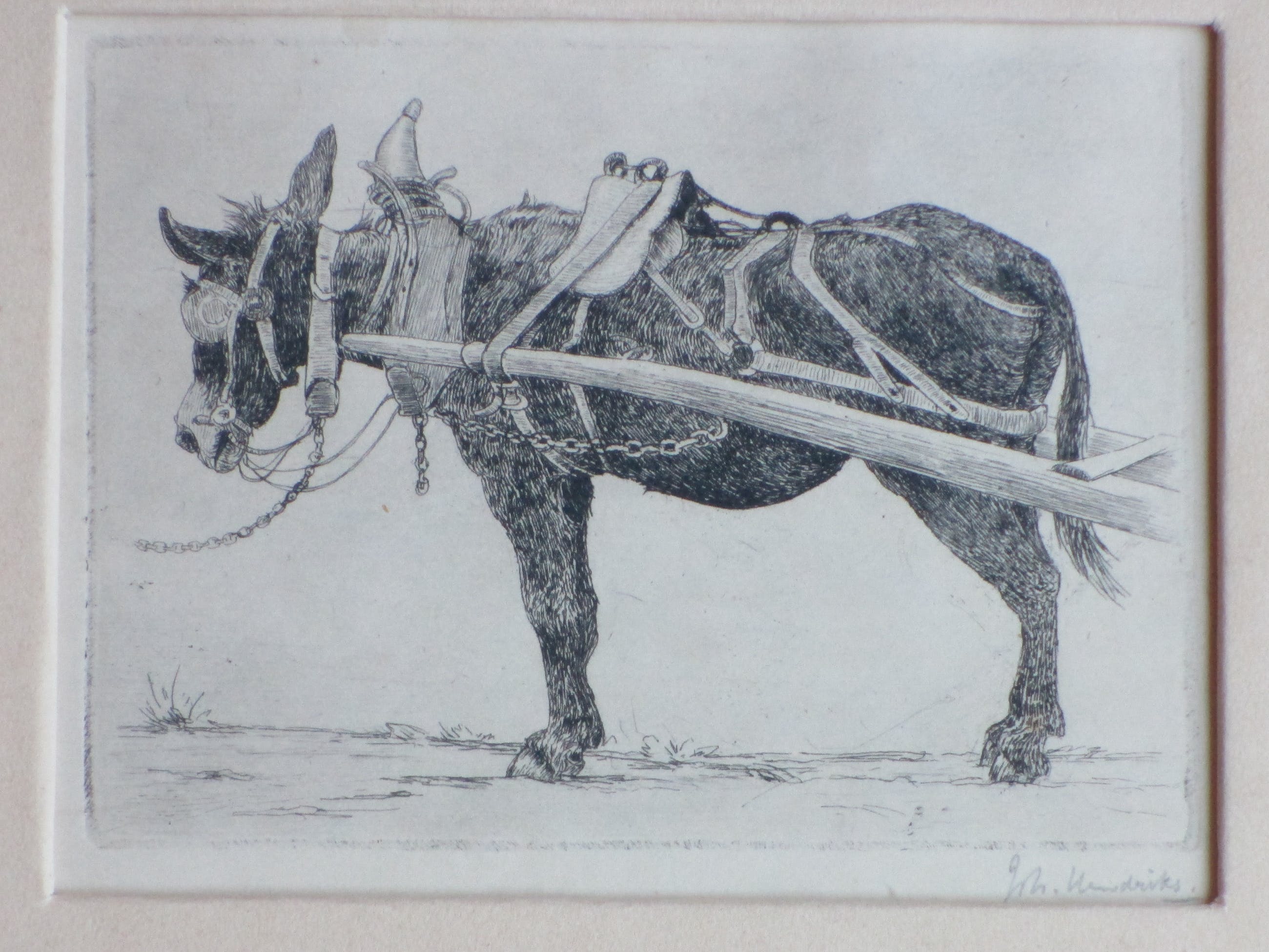 Ets door Johan Diedrich Hendriks Voorstelling van een mediterraan ezeltje Ets onder passepartout, beeldmaat 10.5x14, p.p.maat 25x28 Gesigneerd in potlood r.o.: 'Joh. Hendriks' Authenticiteit volledig gegarandeerd