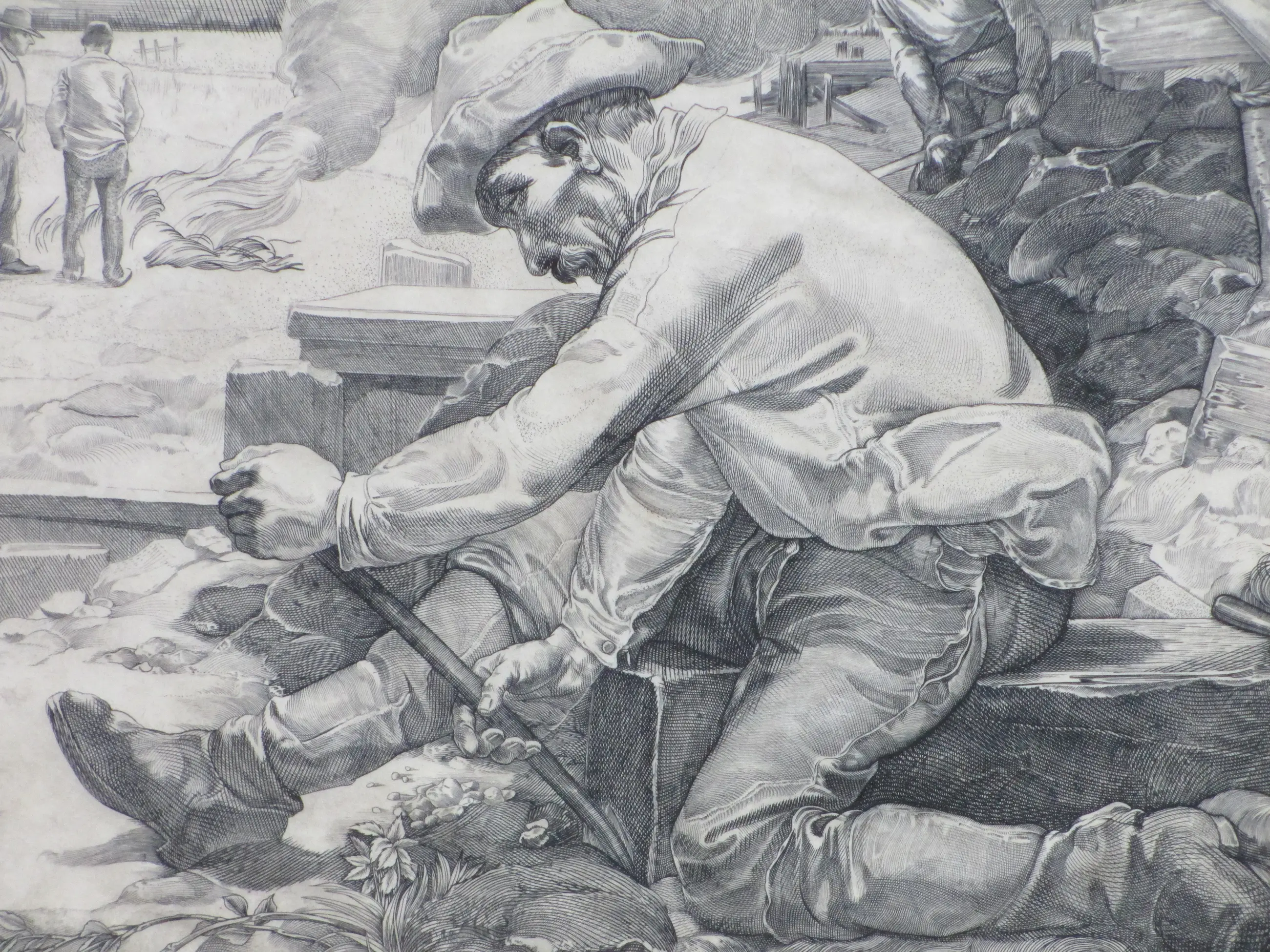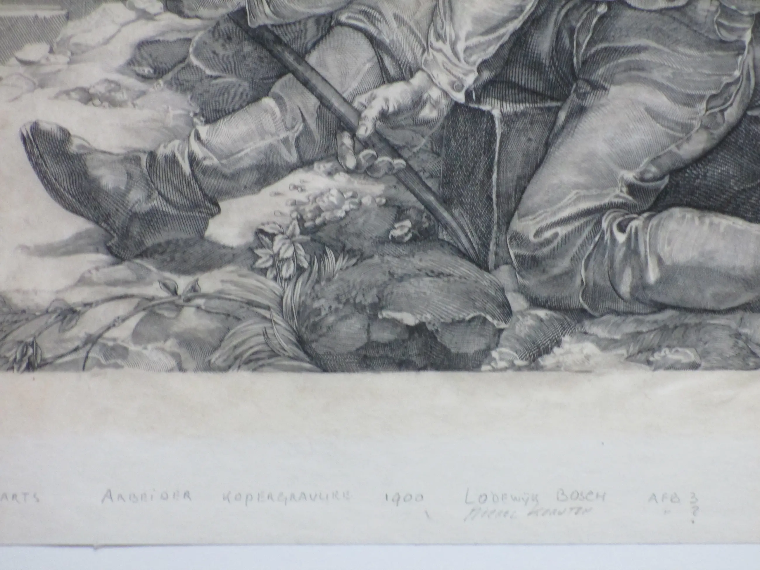 Kopergravure door J.J. Aarts Voorstelling van een arbeider Losbladig, beeldmaat 24x32, bladmaat 32x41 Gesigneerd en getiteld l.o. Datering en literatuurannotaties m.o.