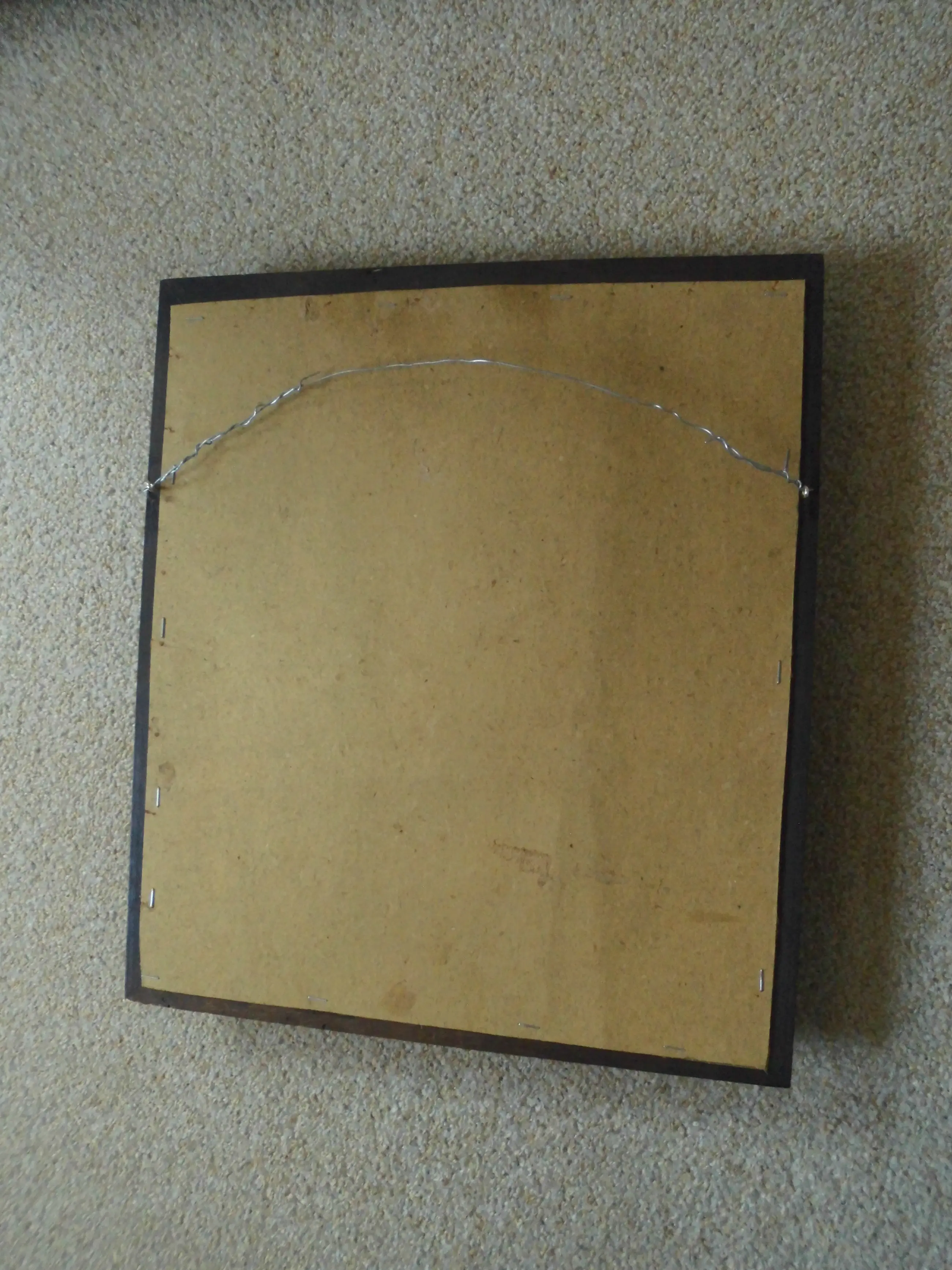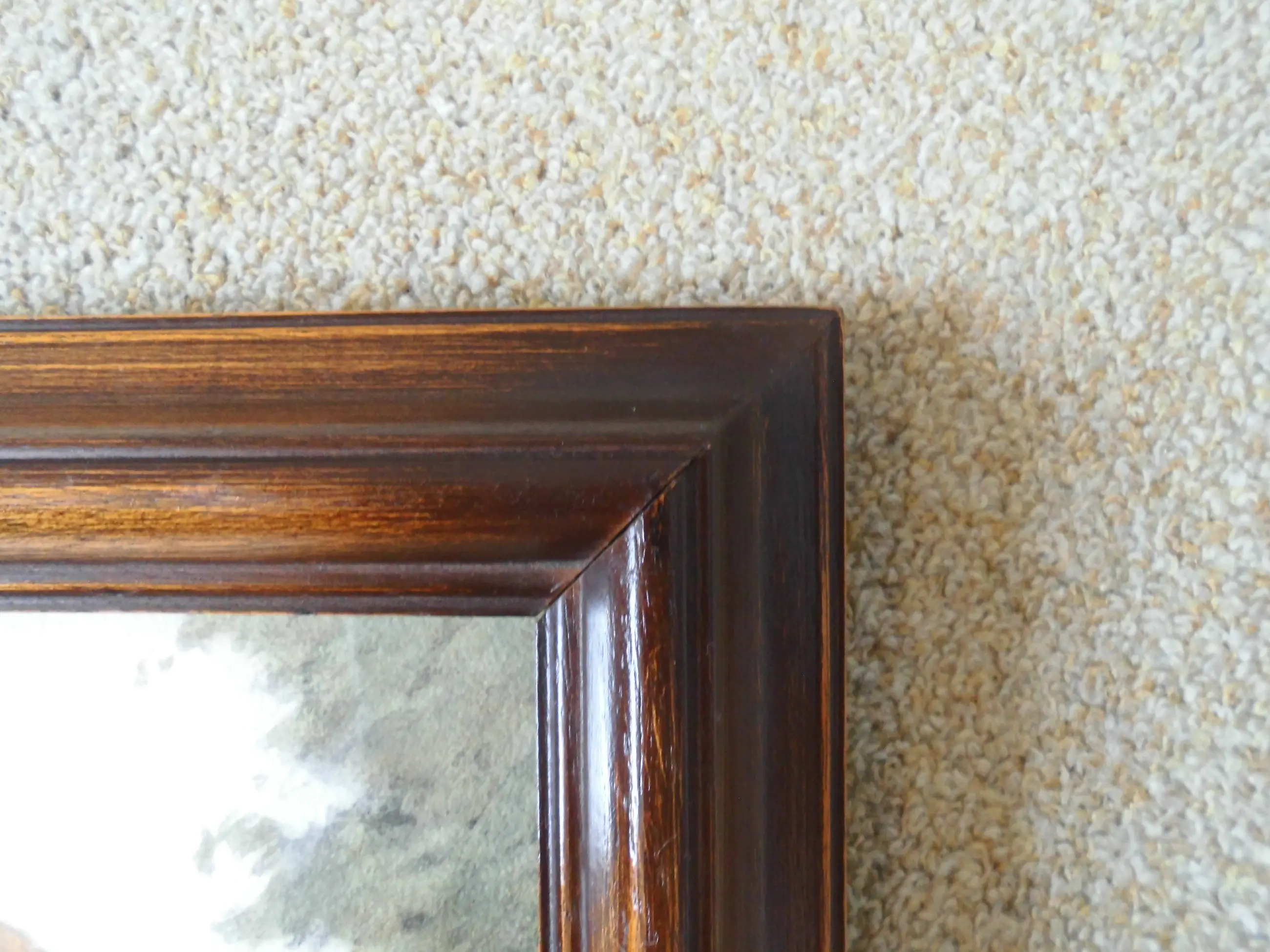 met goede houten lijst , heeft zijn kleine plekjes maar in goede staat !