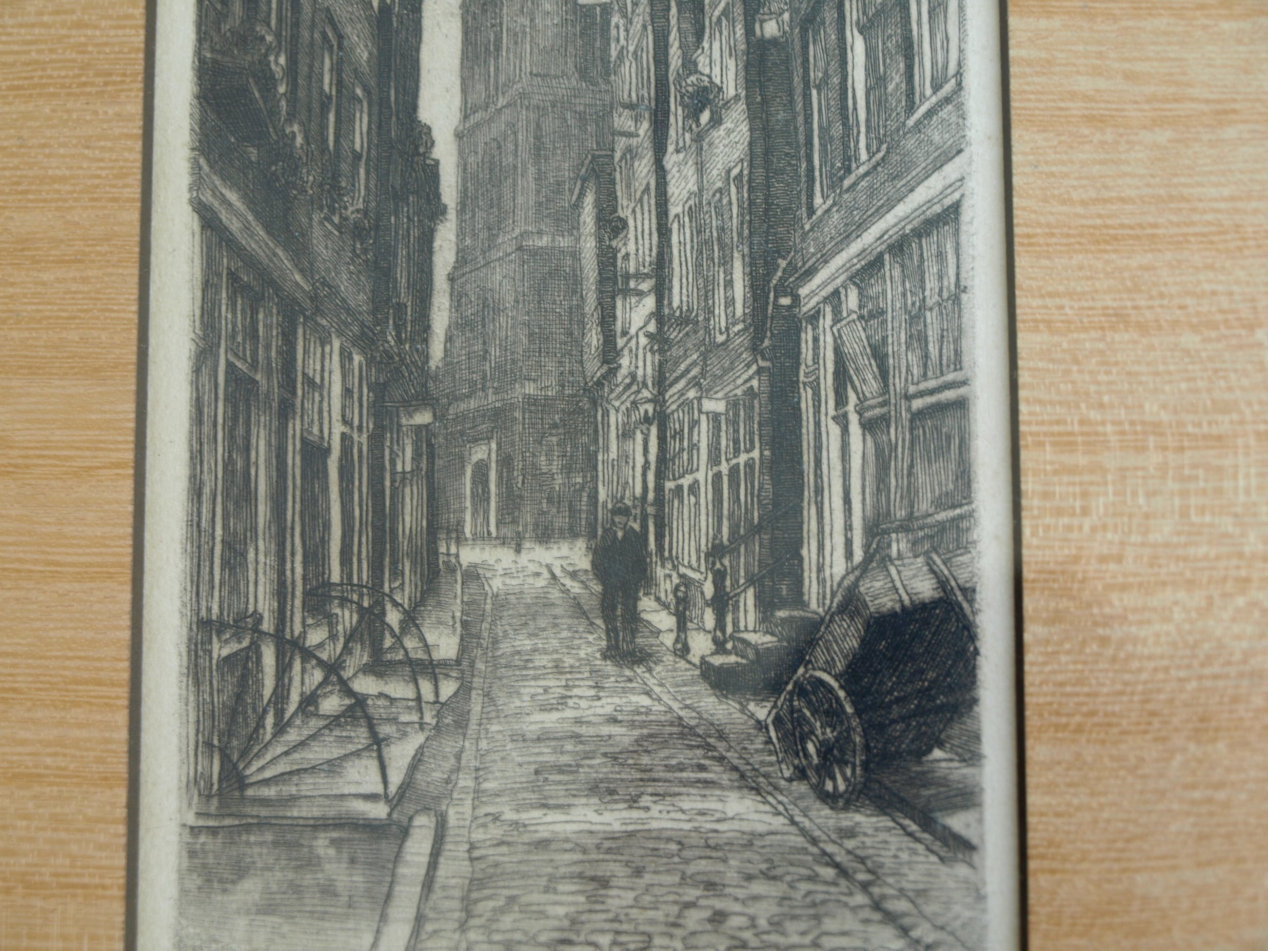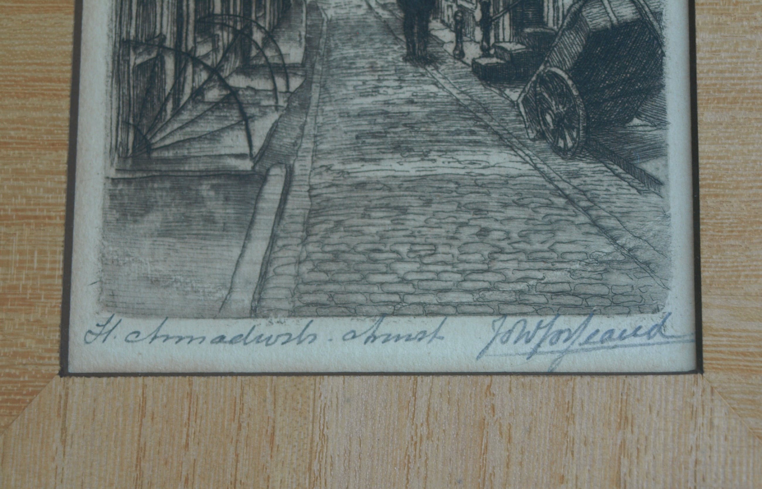 -Afmetingen: Lijst, 35 x 23 cm. Beeld / ets, 18 x 7,5 cm.
