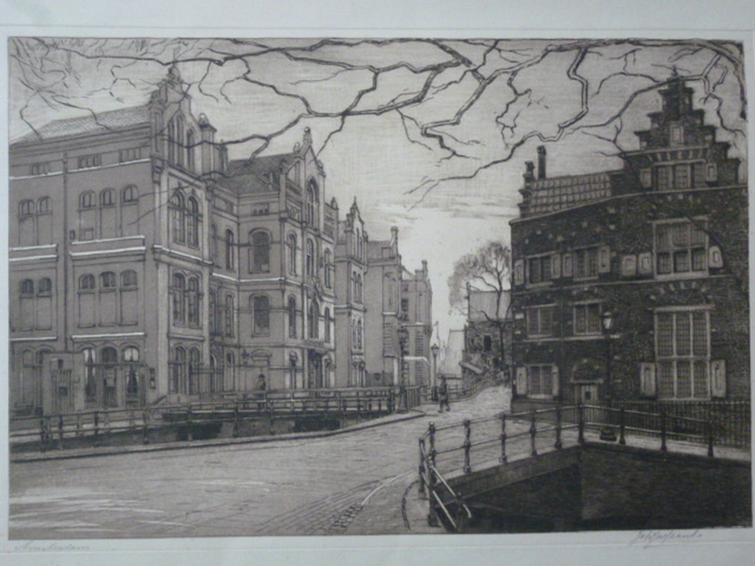 Ets, potlood gesigneerd rechtsonder. Getiteld linksonder.
