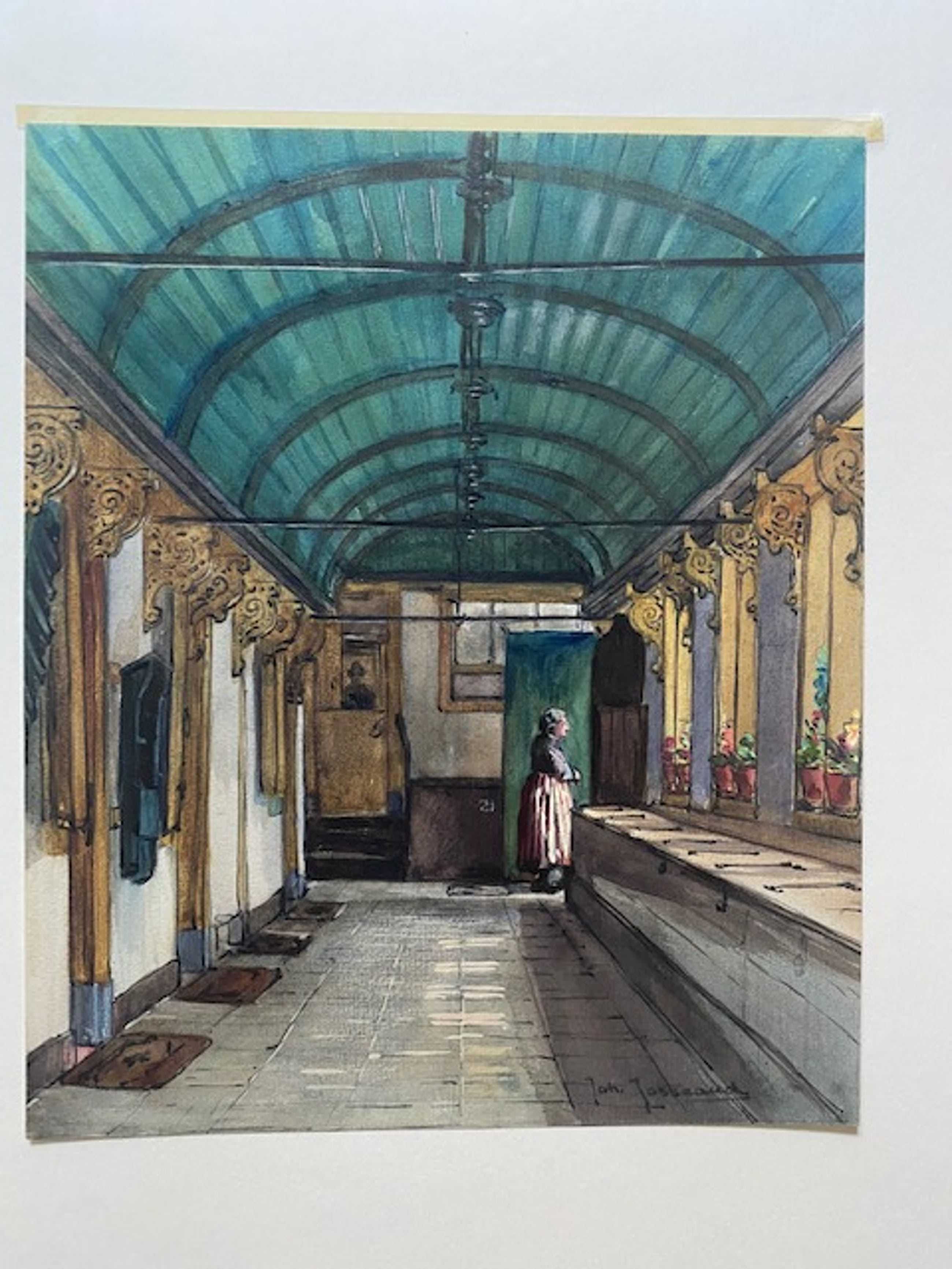 Johannes Josseaud 1880-1935 Aquarel van het Sint Pietershof te Hoorn rond 1910, voormalig oudemannen- en vrouwenhuis in het centrum van de Noord-Hollandse stad Hoorn. Het complex omvat een hoofdgebouw en een hofje. Zowel het hoofdgebouw als het hofje is nog altijd in gebruik als wooncomplex voor ouderen, maar nu voor ouderen die zelfstandig kunnen wonen.