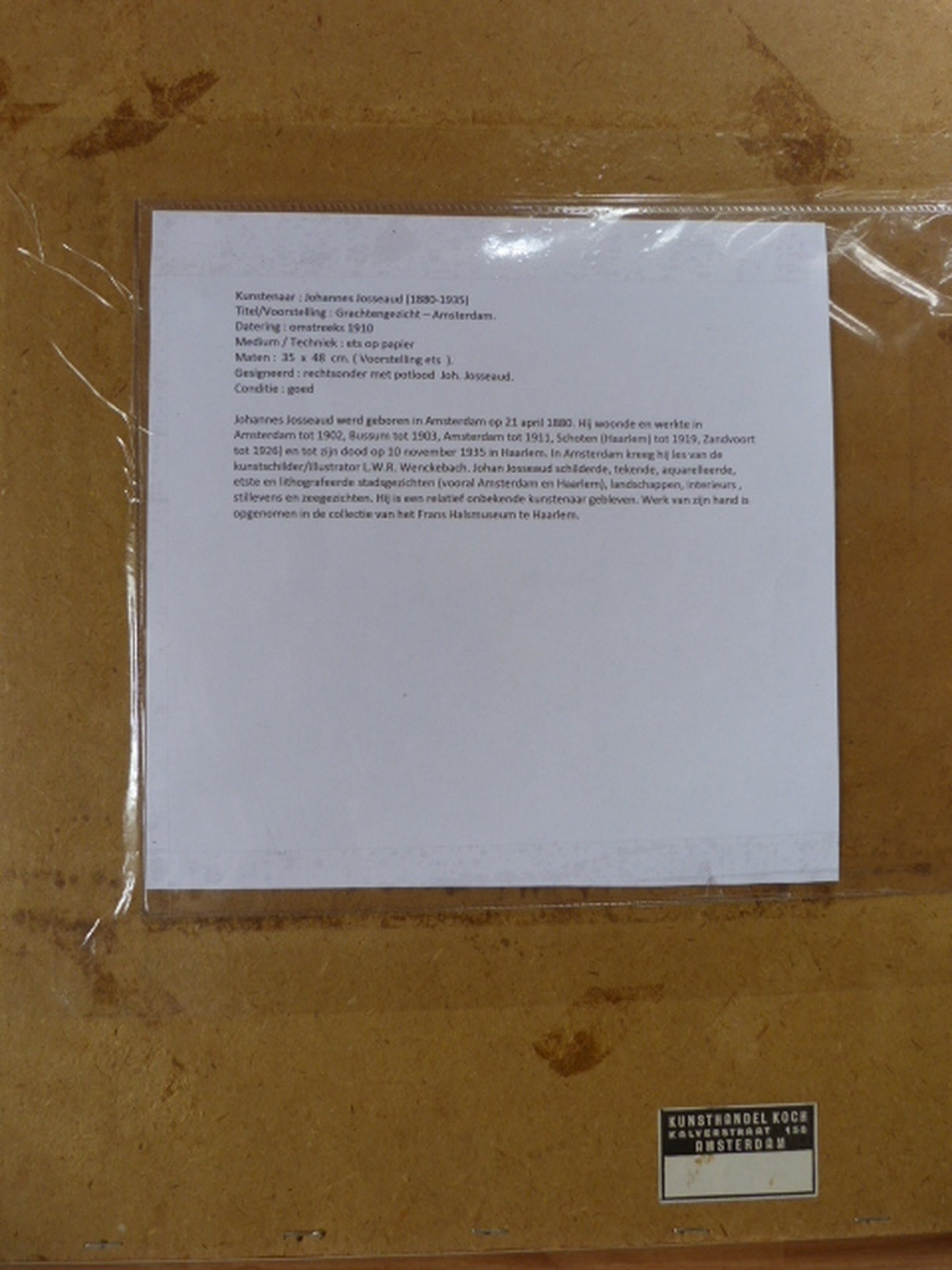 Gesigneerd : rechtsonder met potlood Joh. Josseaud.