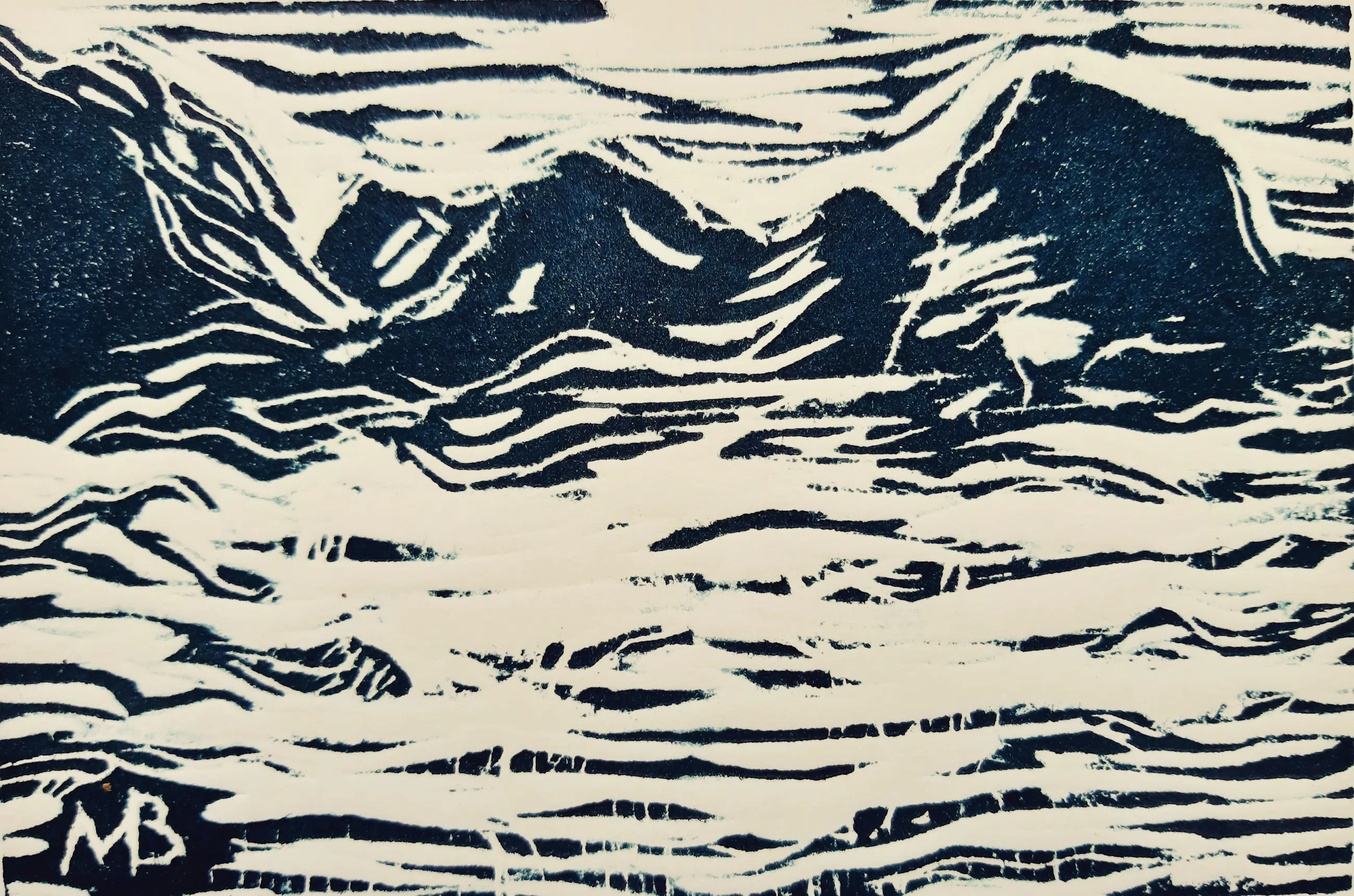 Houtsnede uit serie Prentje van de Maand, november 2022, in dat jaar was ĥet onderwerp 'Rivieren'