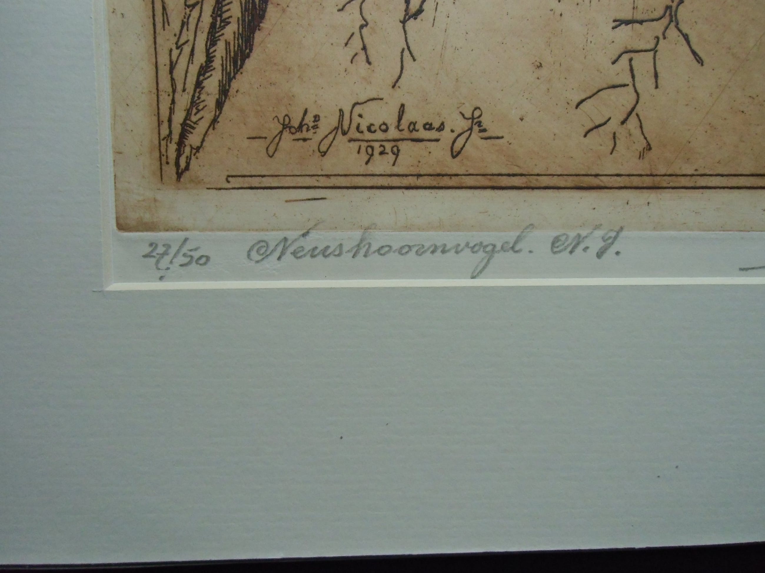 Ets met plaattoon die qua onderwerp nog teruggrijpt op het verblijf van Johannes Nicolaas in Surabaya rond 1925. Het werk is in 1929 afgedrukt in een oplage van 50 exemplaren.