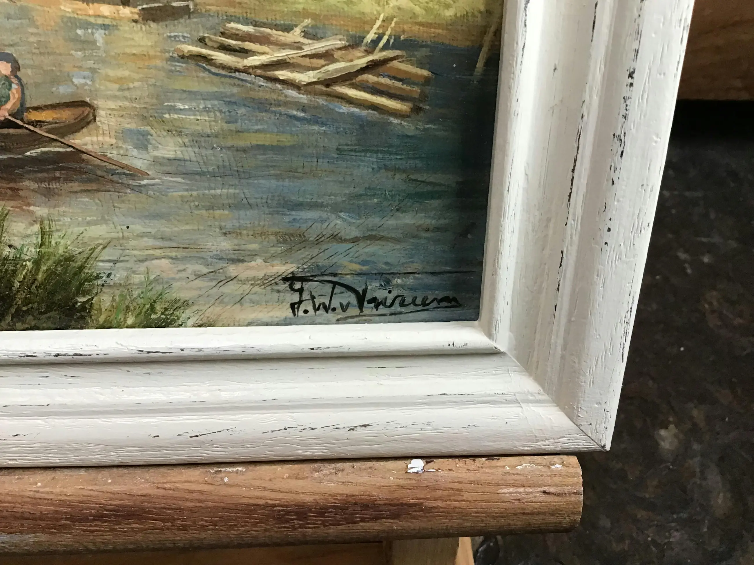 Van Tririum staat vooral bekend om zijn schilderijen van poezen en eenden. Dit is dus een klein uitstapje naar een klassiek onderwerp. Marouflé, linnen op board.