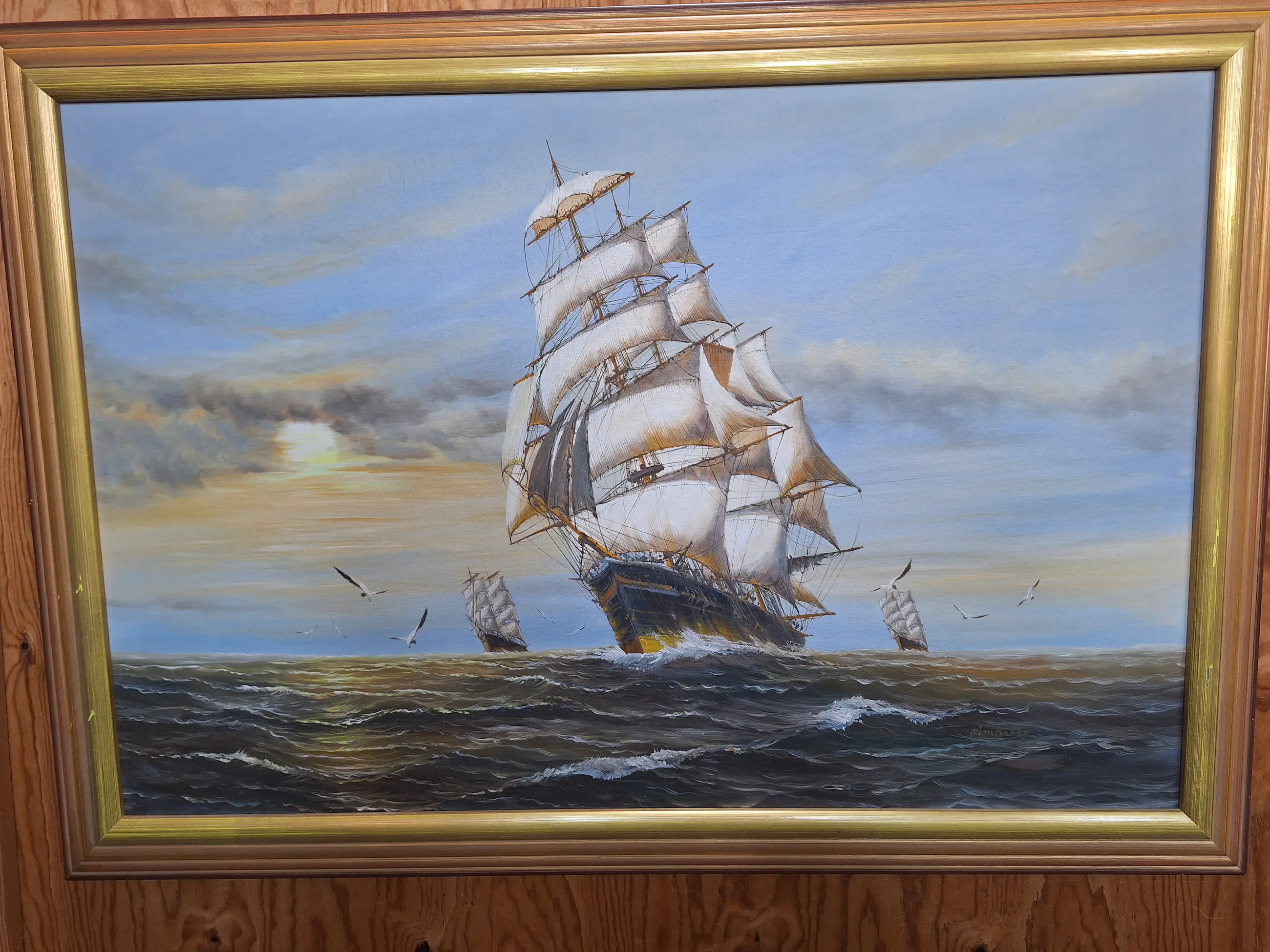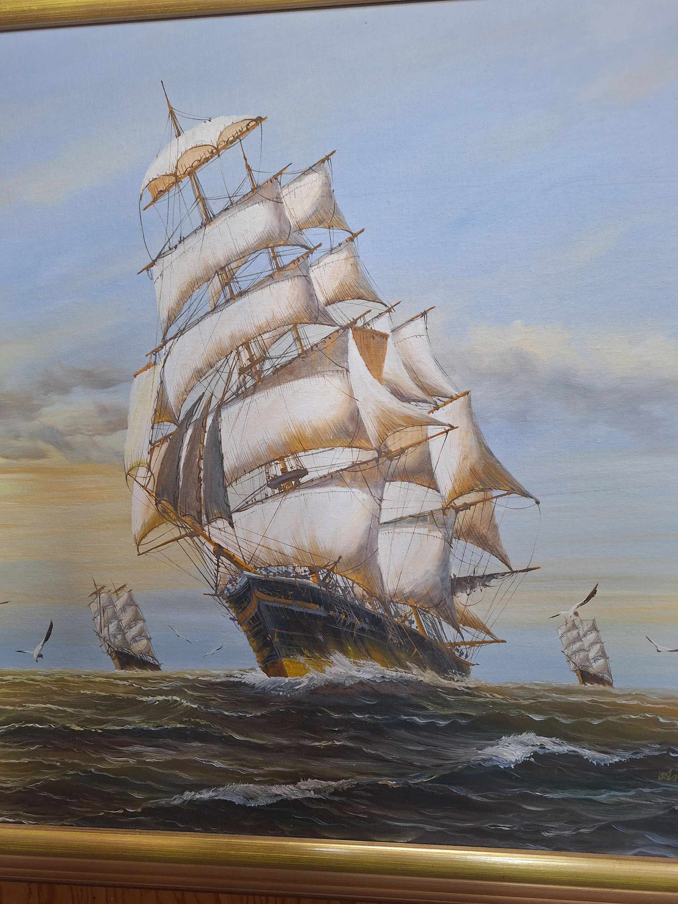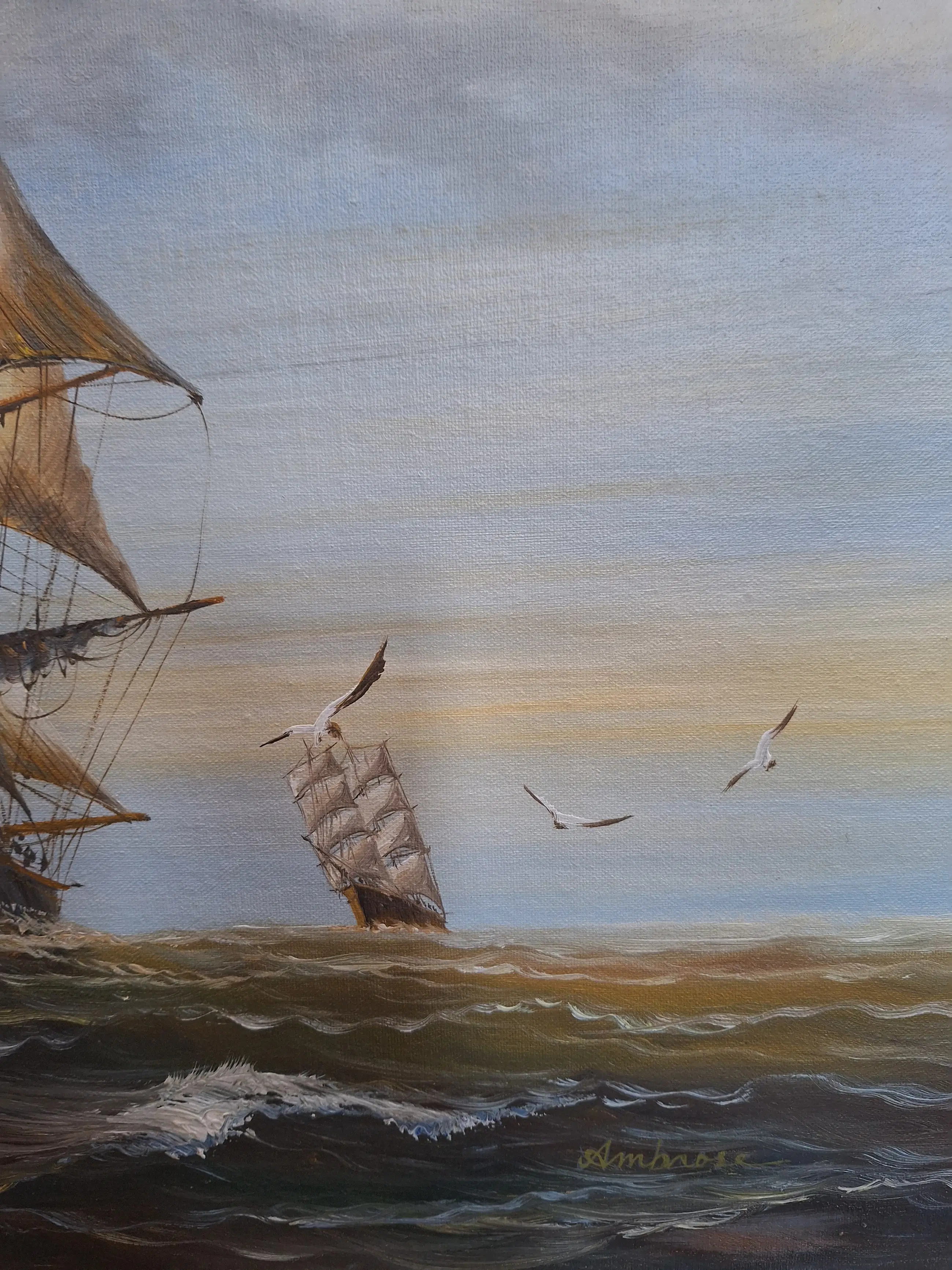 John Ambrose - Zeegezicht met zeilschepen en meeuwen