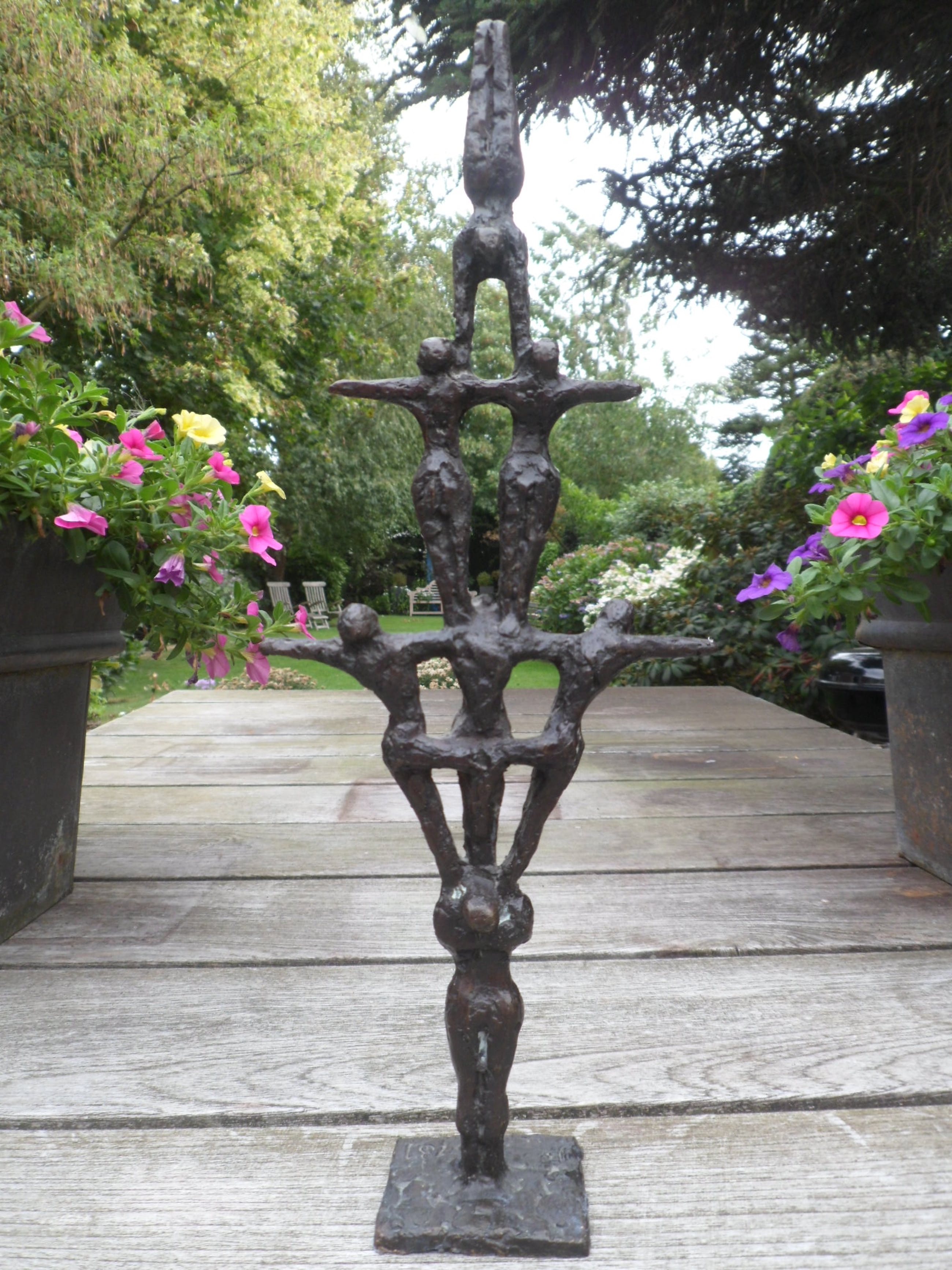 Bijzonder sculptuur in brons/koper 'Zeven Acrobaten' van de Nederlandse beeldhouwer John Bier (1936, Santpoort)