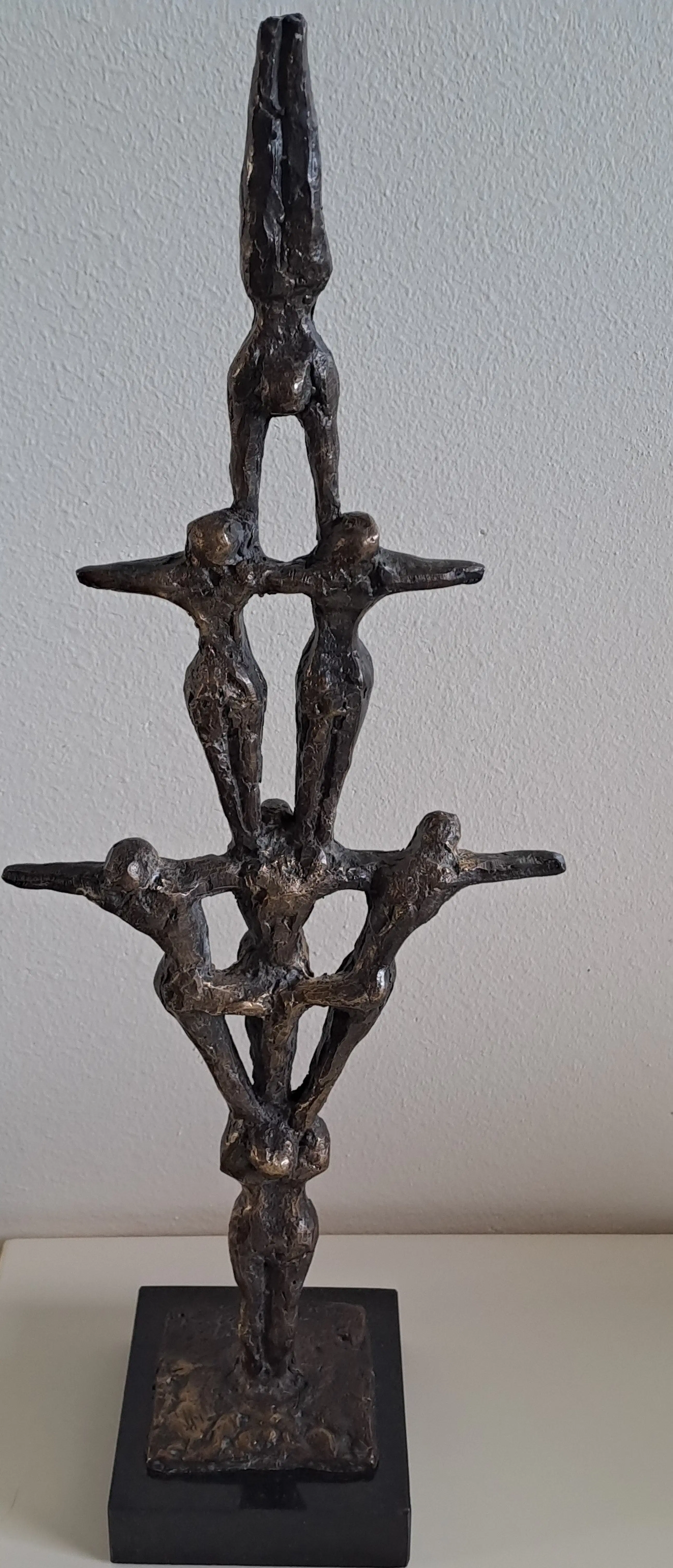 Bijzonder sculptuur in brons/koper 'Zeven Acrobaten' van de Nederlandse beeldhouwer John Bier (1936, Santpoort)
