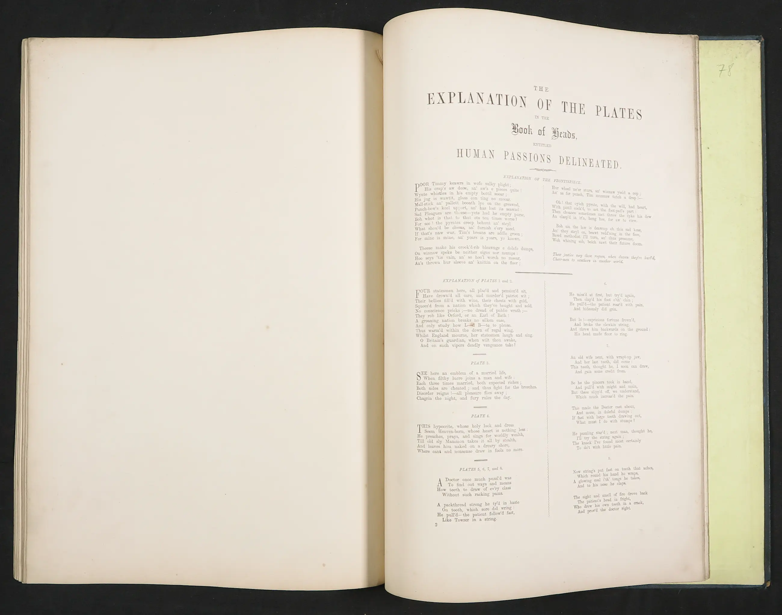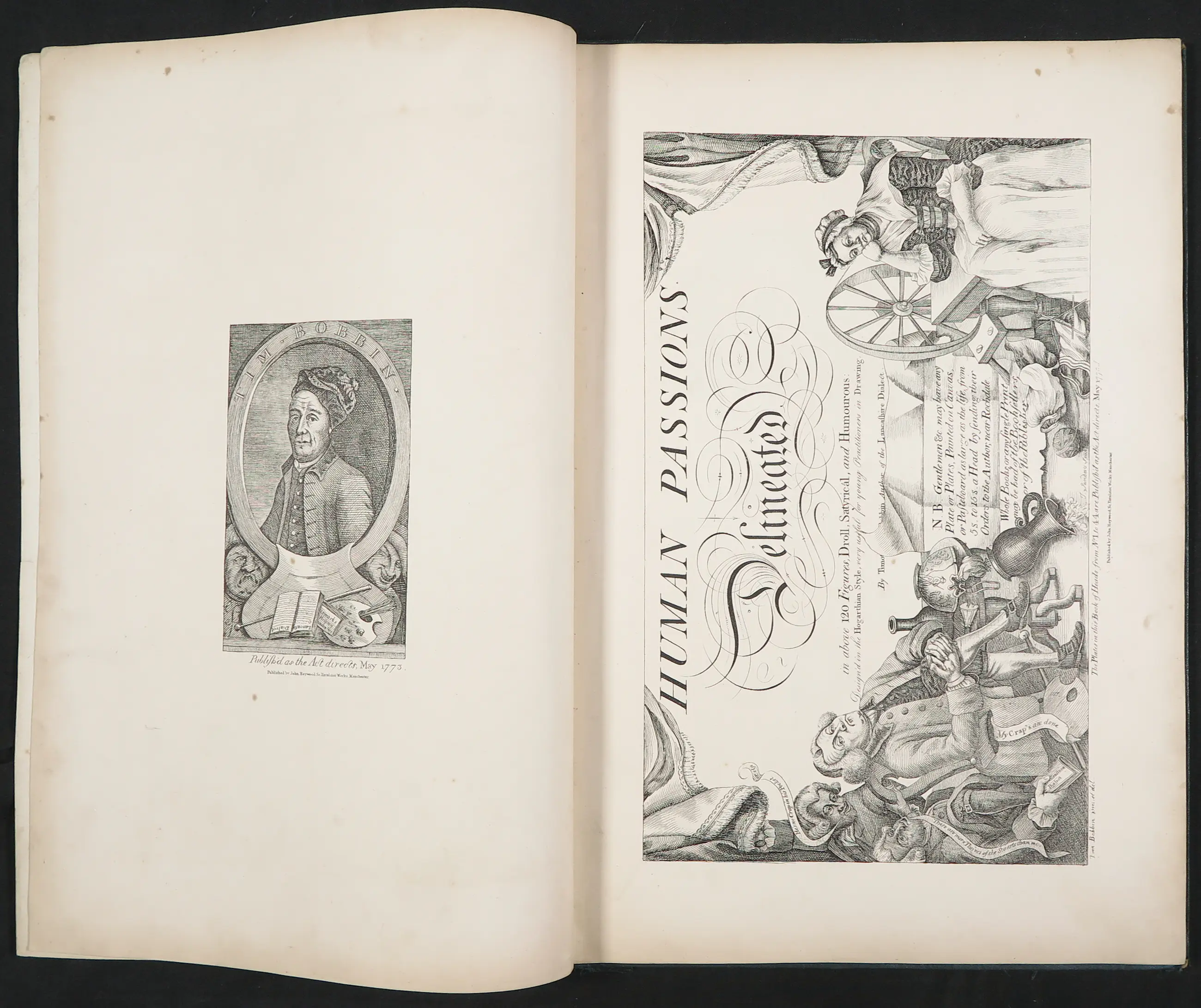 Heruitgave van het, oorspronkelijk in 1773 uitgeven, prentboek Human passions delineated. Het boek is voorzien van karikaturen over de eigenschappen en gewoontes van de mens. De komische prenten zijn ieder voorzien van tekst en uitleg op de laatste pagina's.