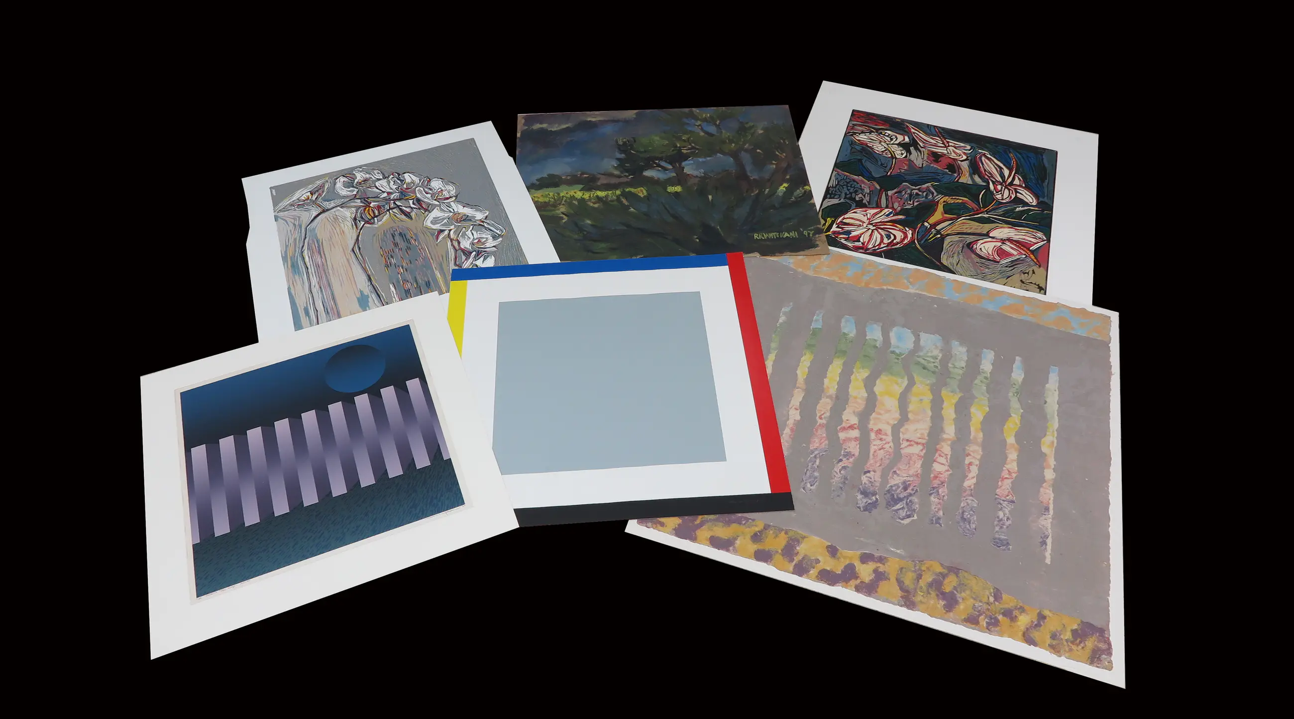 | Beschadigingen en tapresten zichtbaar op enkele werken in het lot. | |