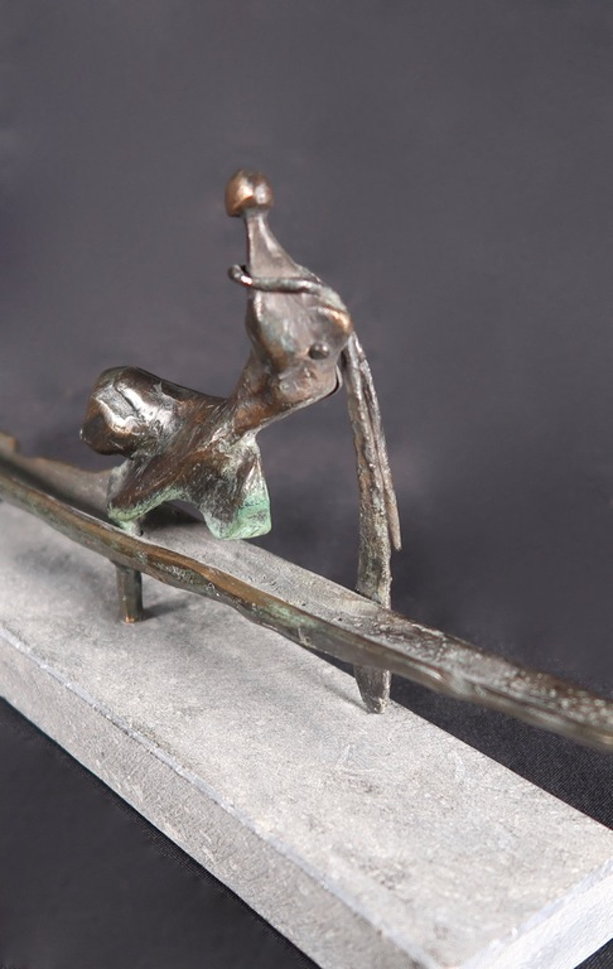 Materiaal: Gepatineerd brons op hardestenen sokkel