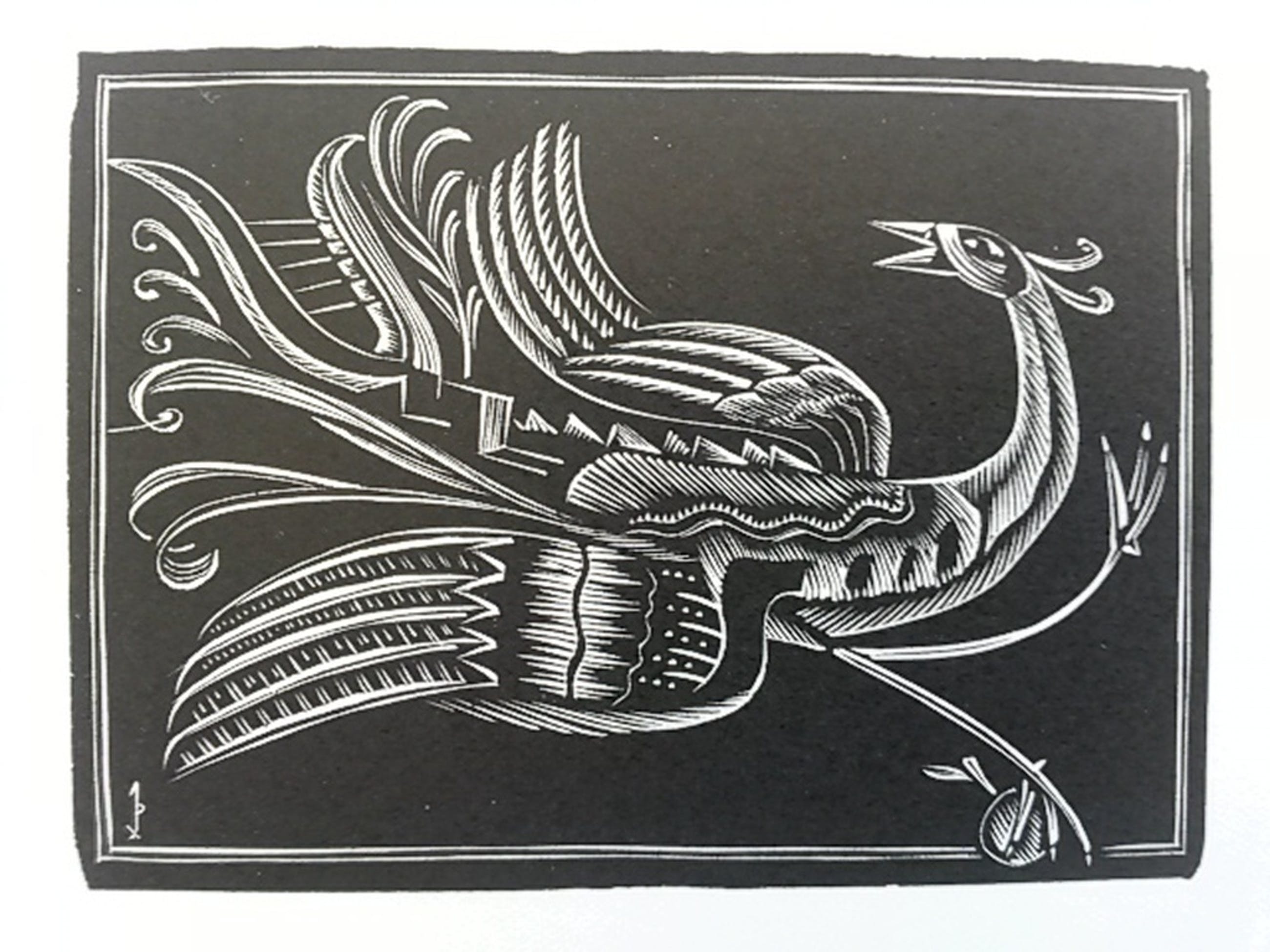Originele houtsnede van het blok eind jaren 60. Gesigneerd linksonder met monogram in het blok.De prent is gedrukt op zwaar papier van 27,5 x 21,4 cm. De afbeelding zelf is 7,5 x 10 cm. In uitstekende staat.
