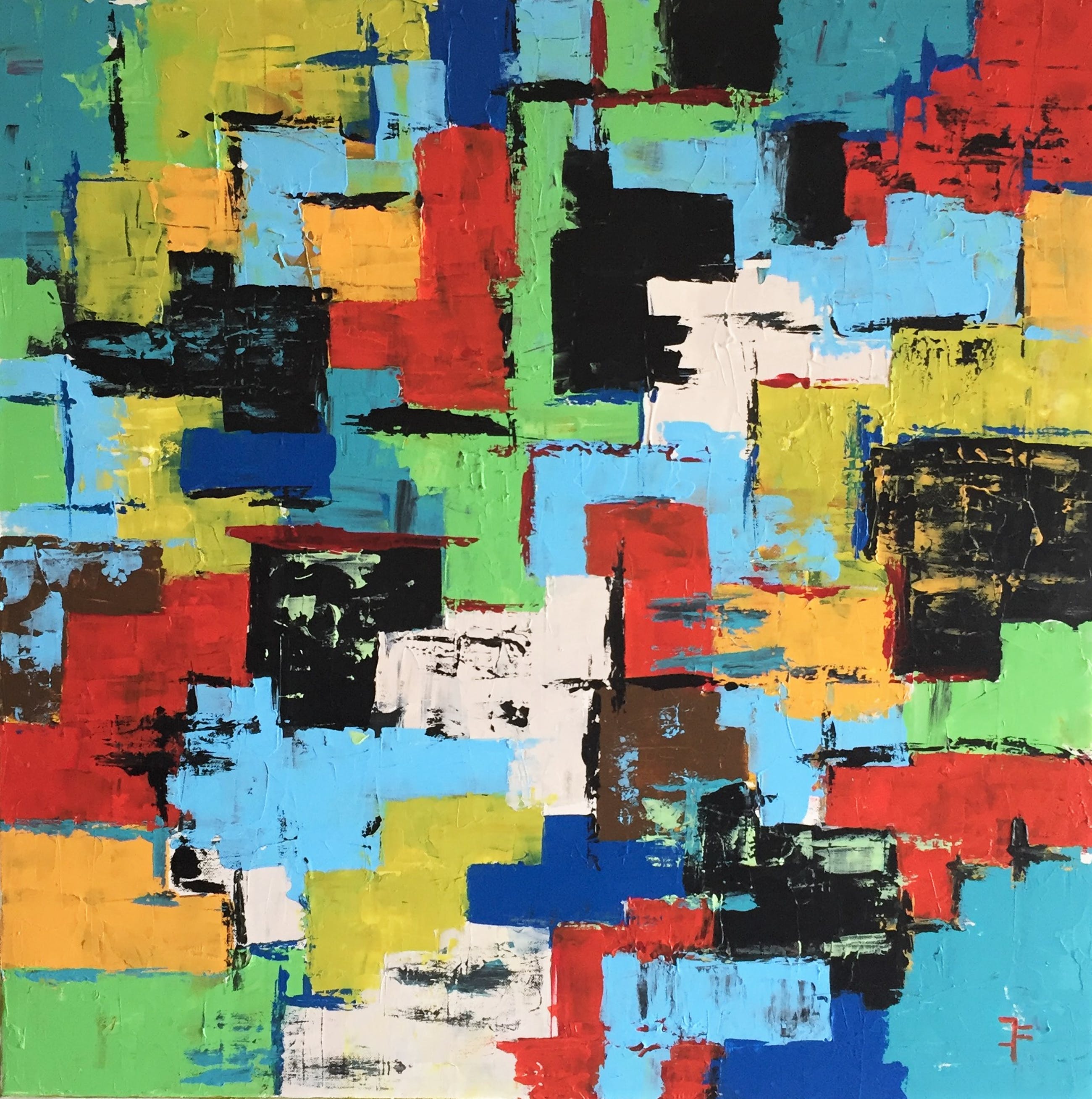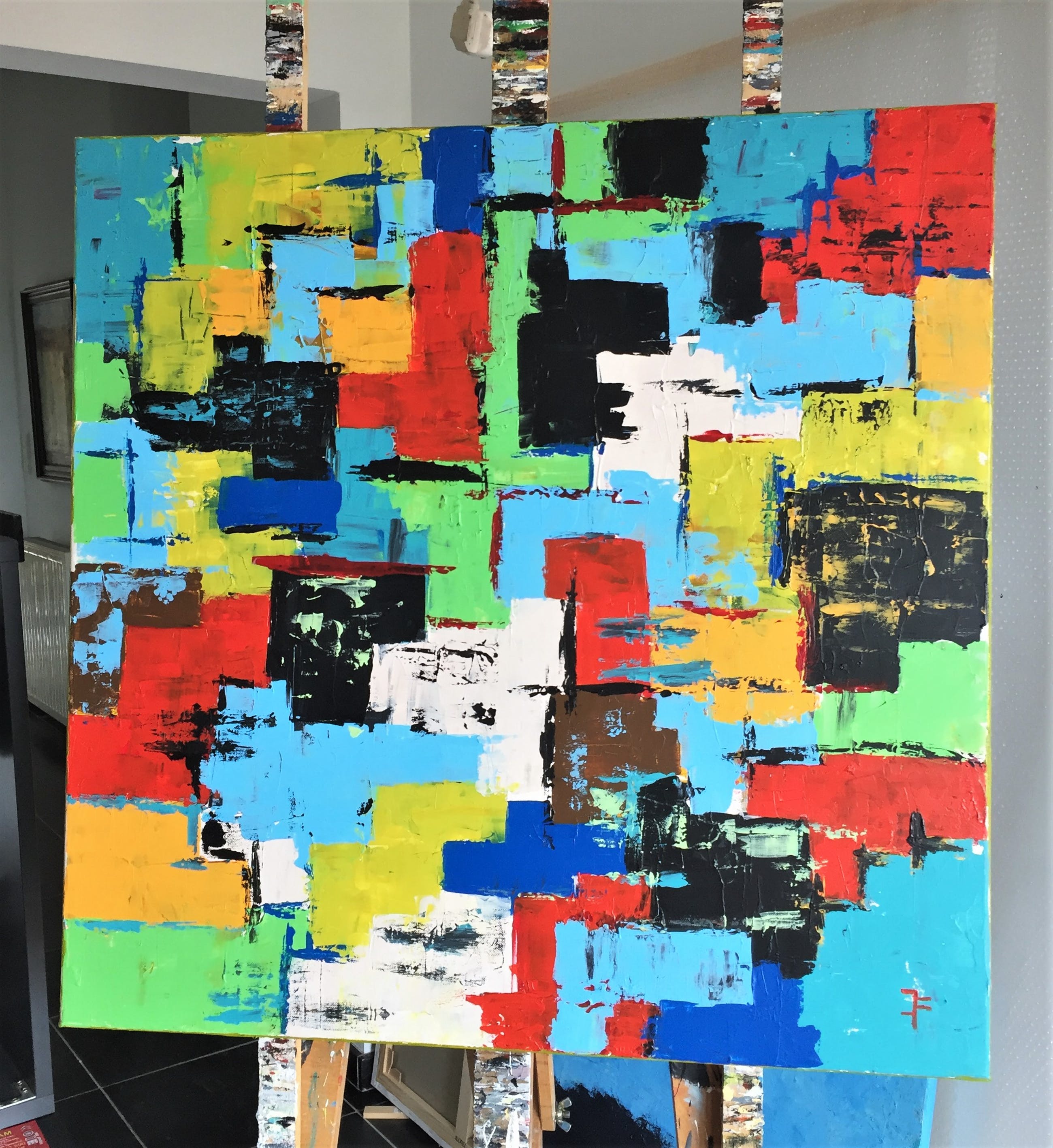 Editie: Groot 70 x 70 x 2 cm. - Unica - Authentiek - Canvas doek - Hand Gesigneerd.