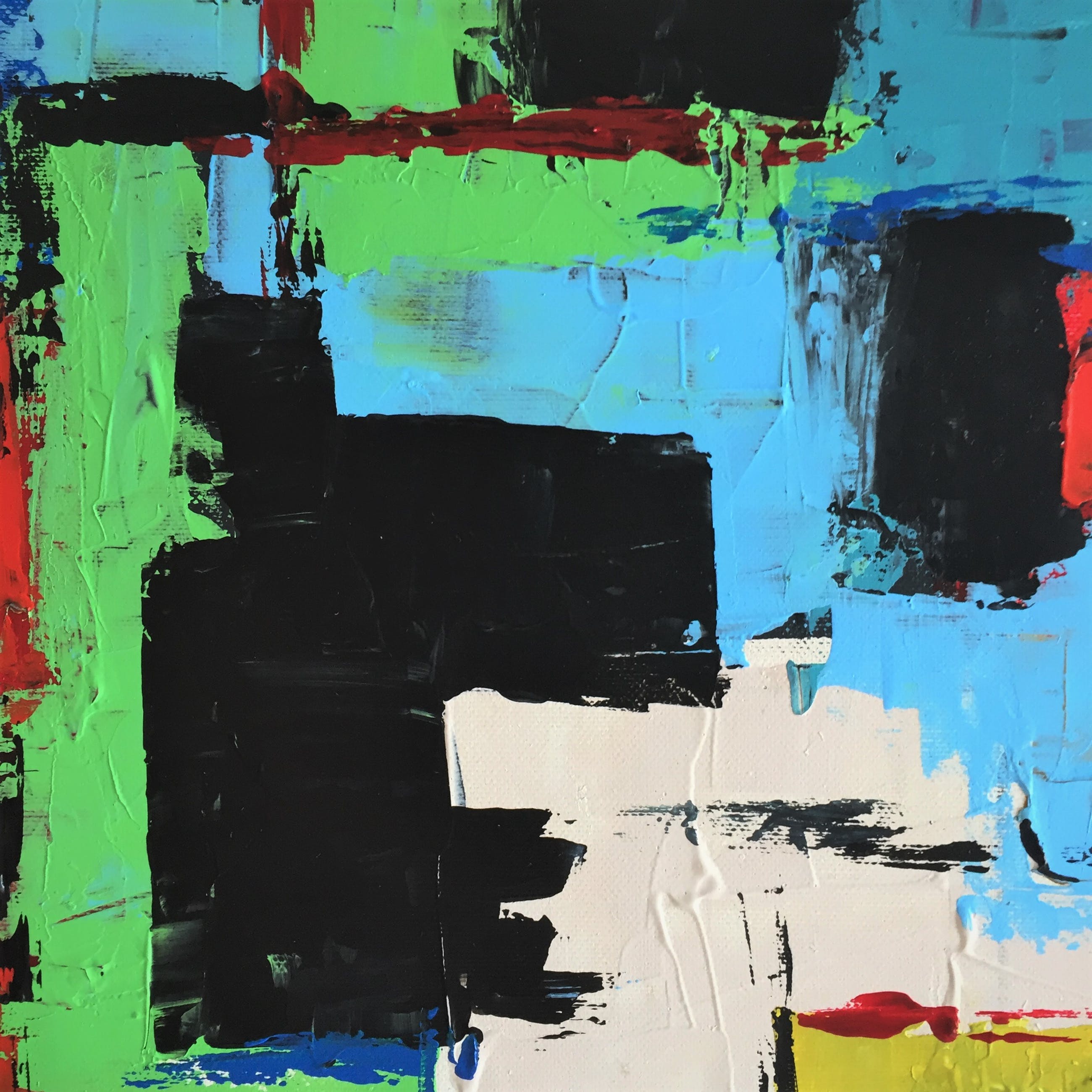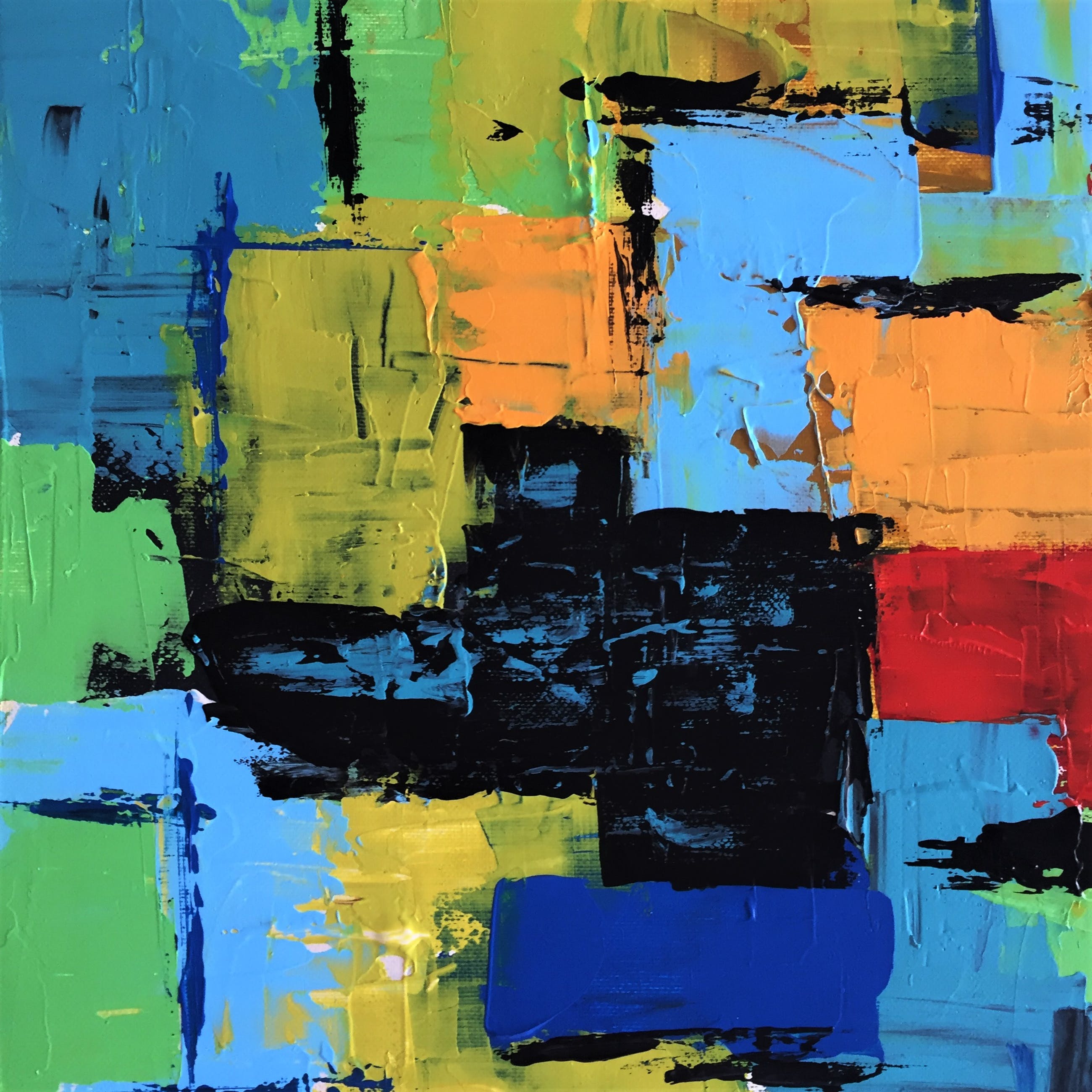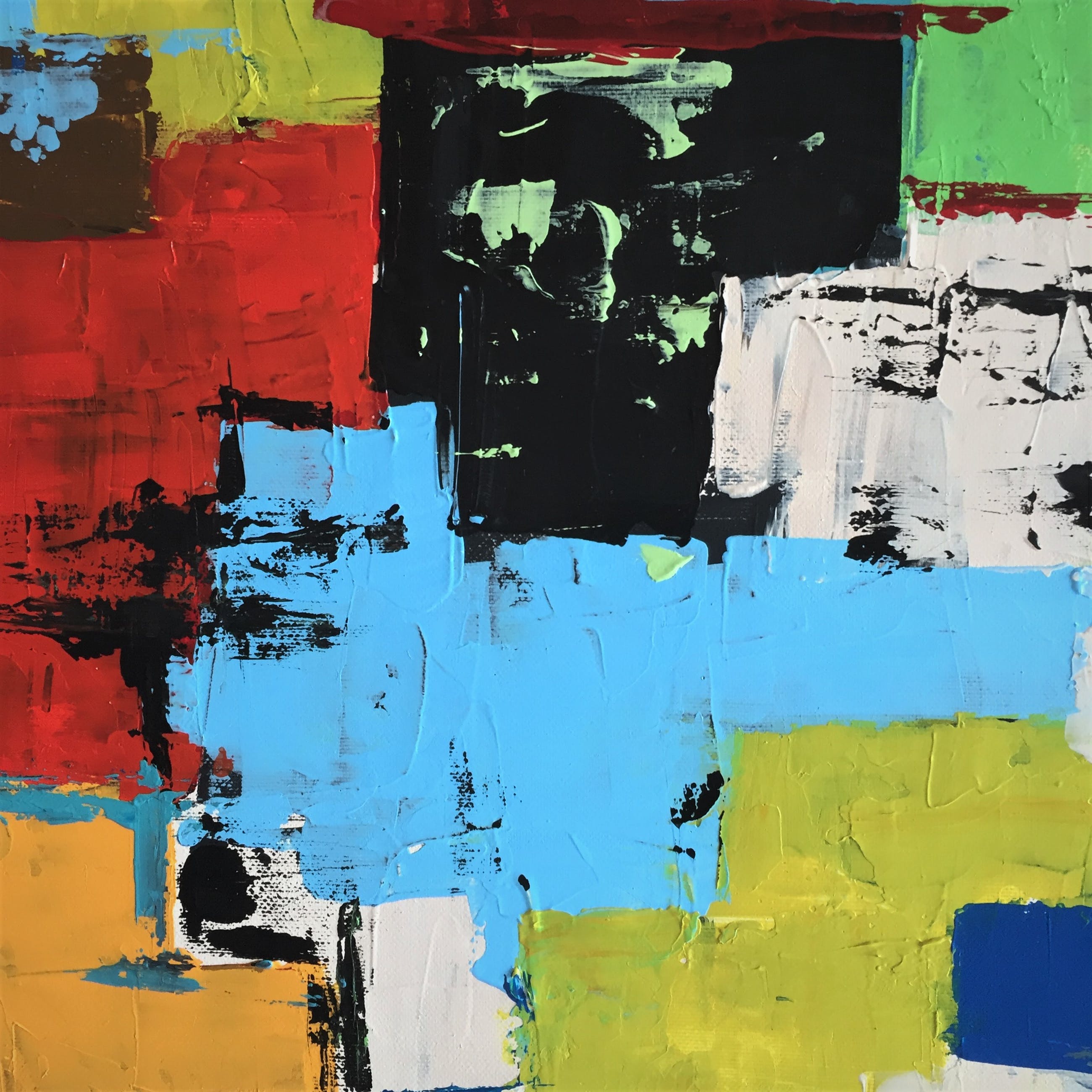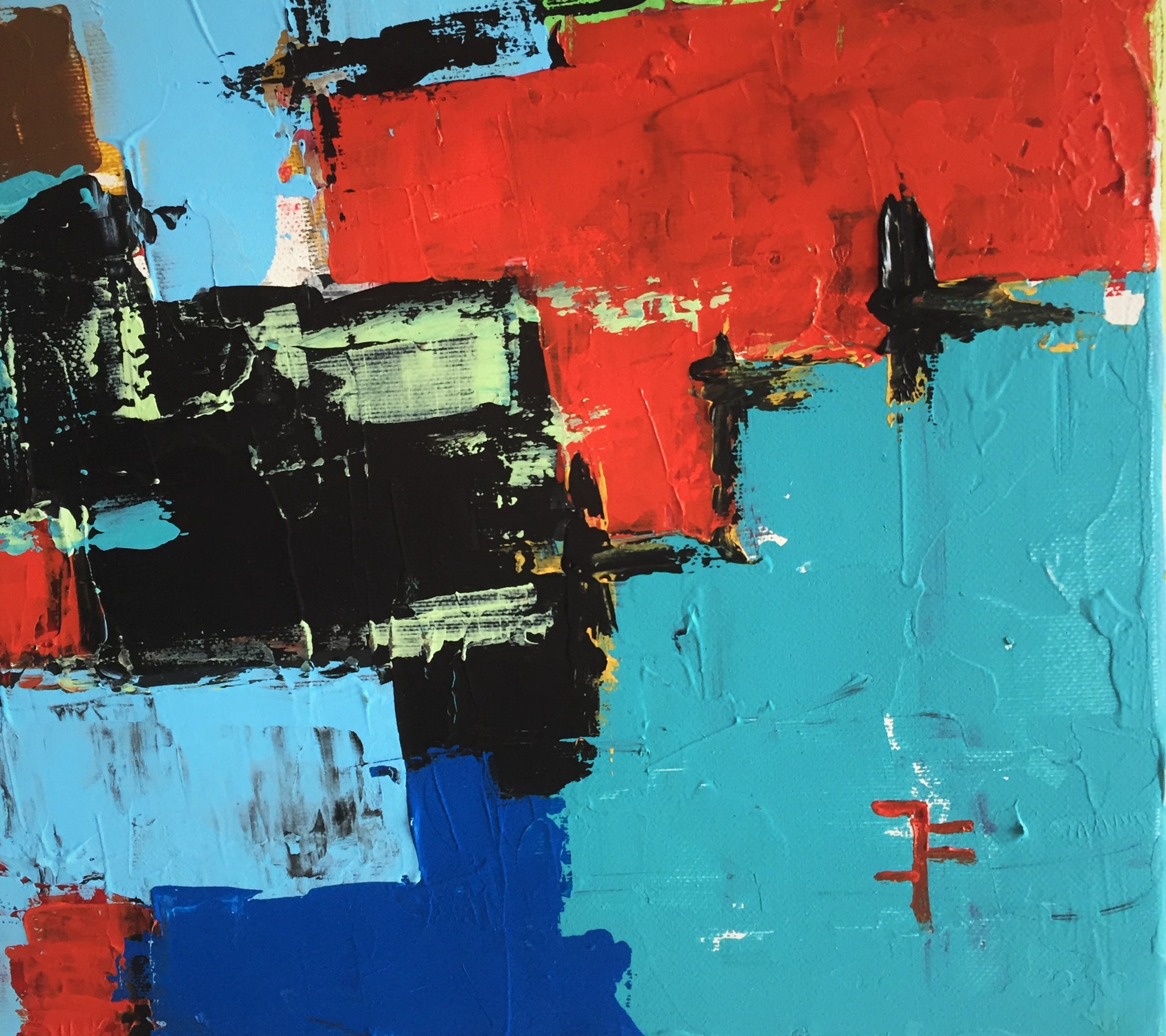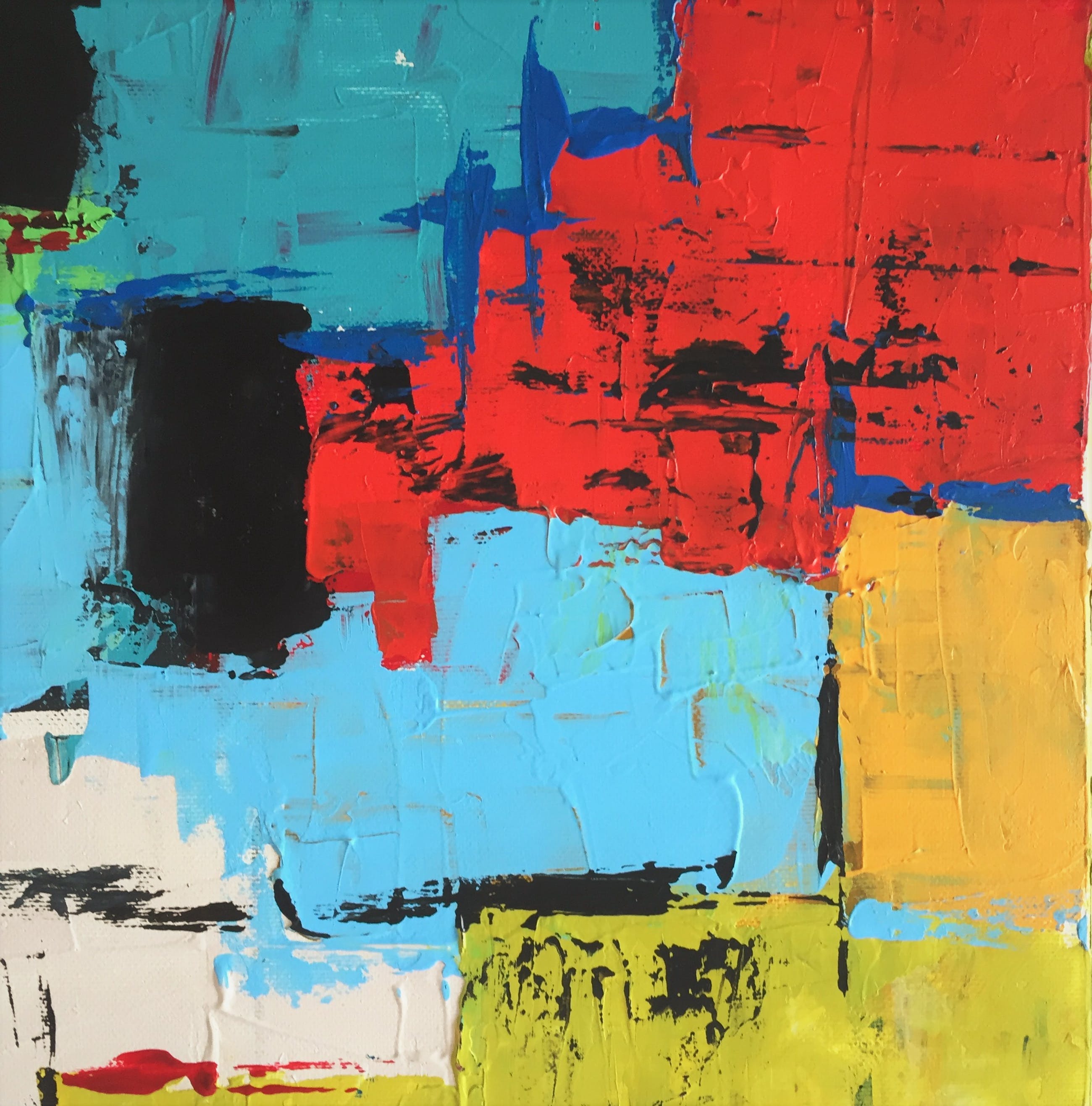 Reliëf ontstaan door de verf, acrylverf, laag over laag aan te brengen. De zijkanten, 2cm dik, zijn in het schilderij meegenomen, door deze afwerking is een lijst overbodig