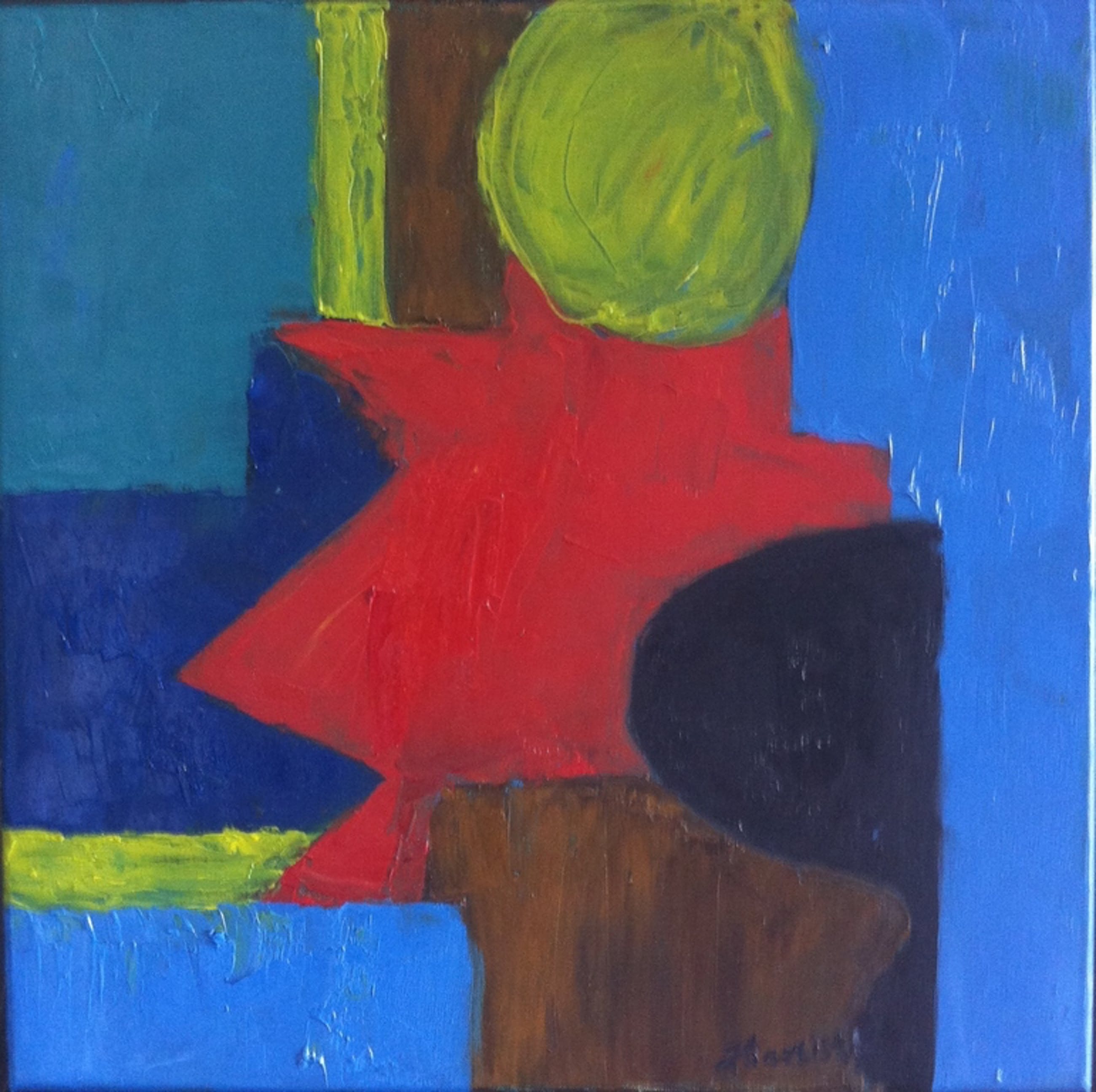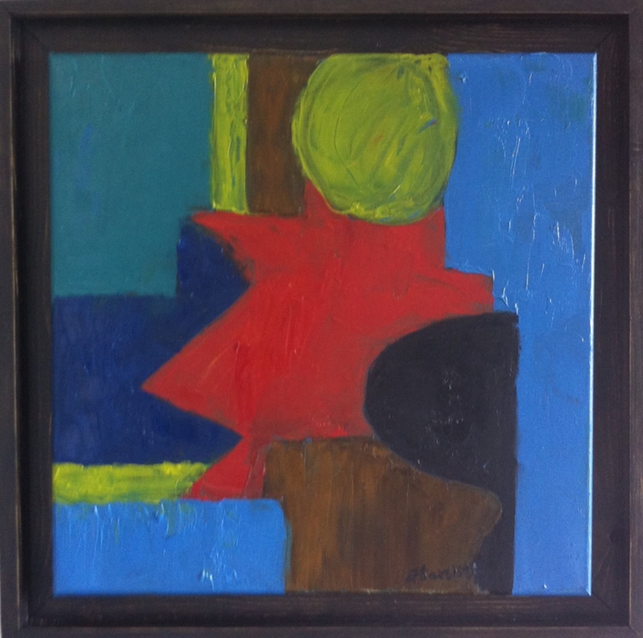 Titel: "Compositie no.9 " Abstract olieverfwerk op canvas van John Foppen