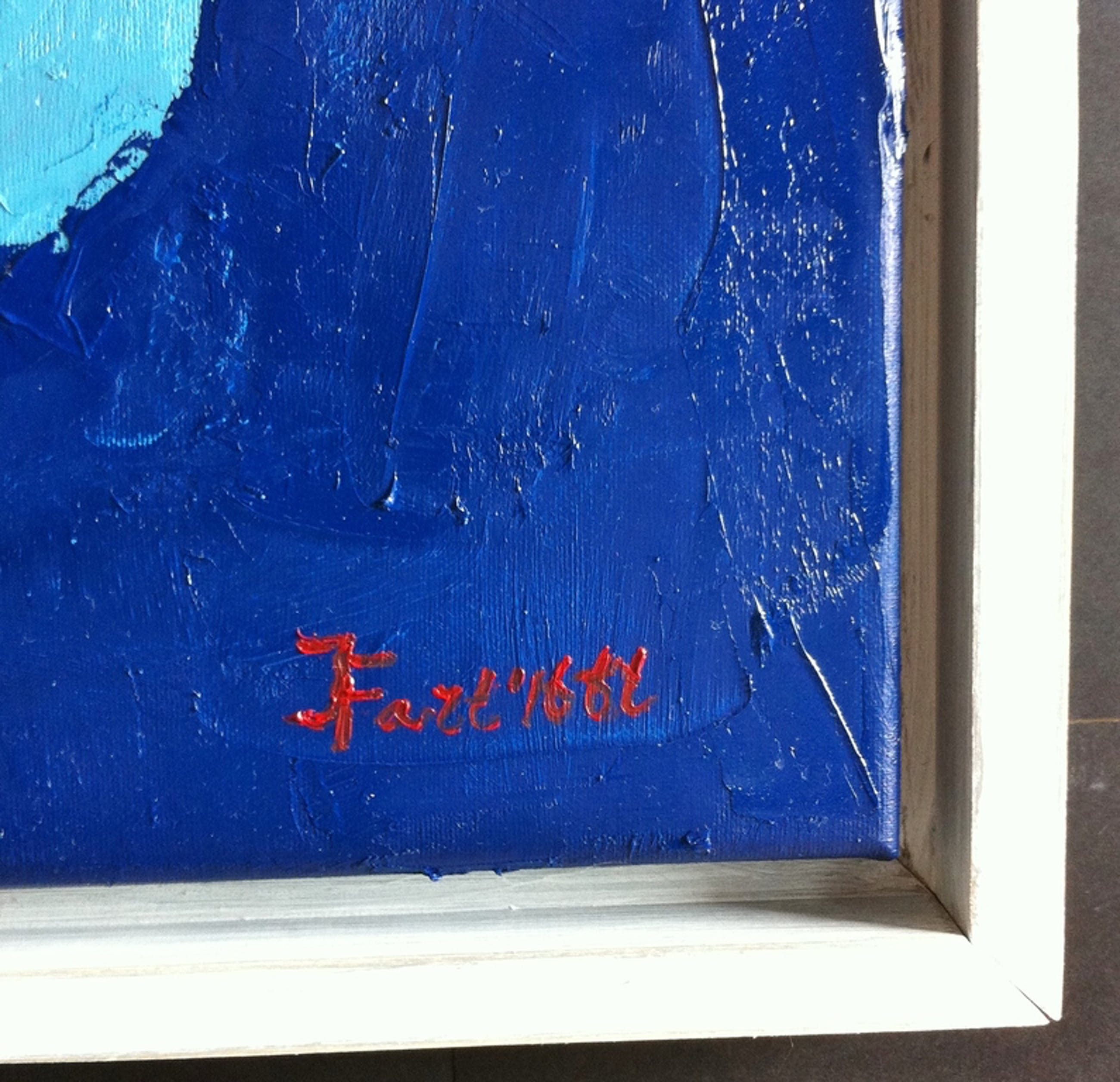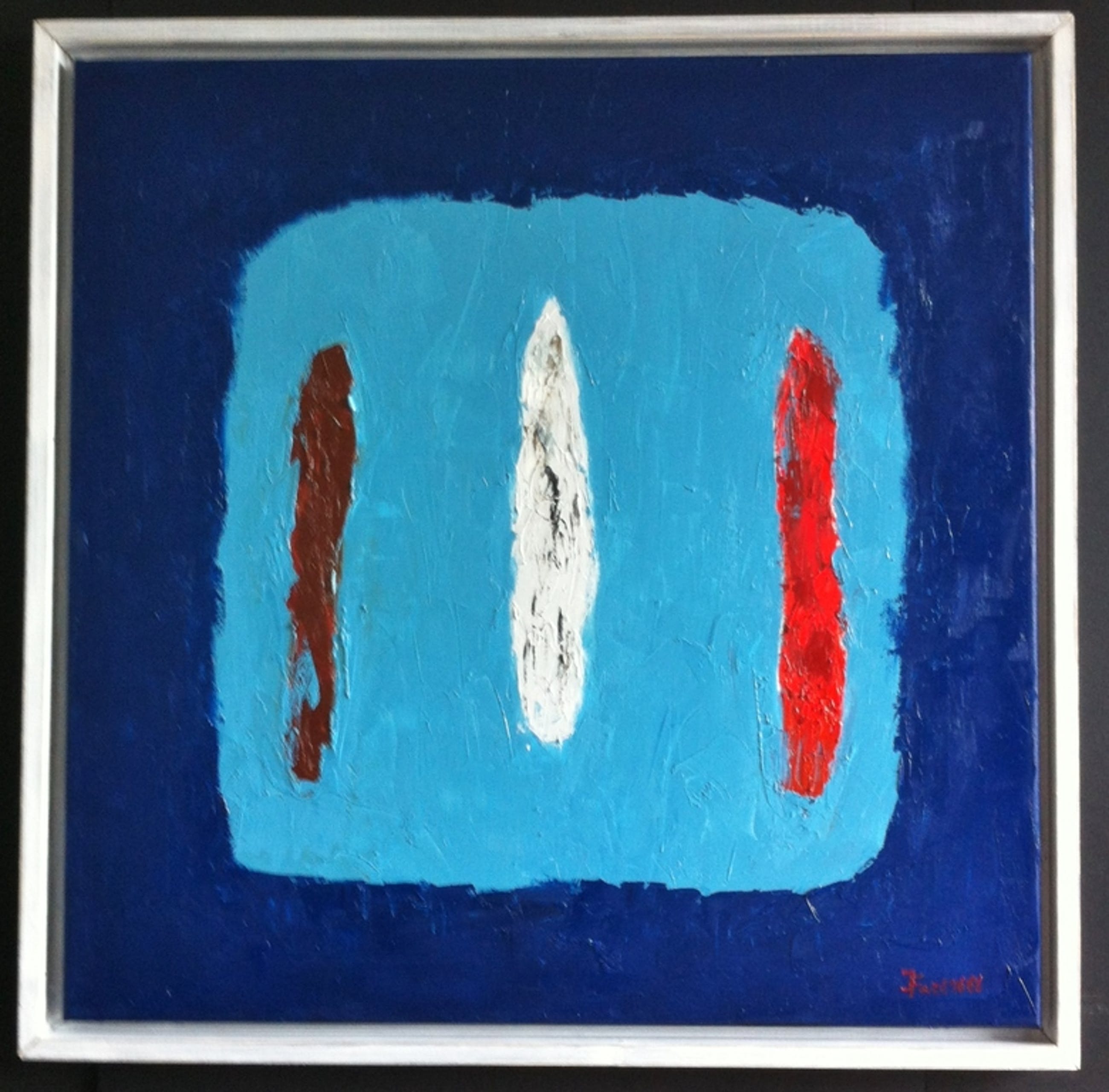 Olieverf op canvas - gesigneerd - Titel: " Composition in Blue......."