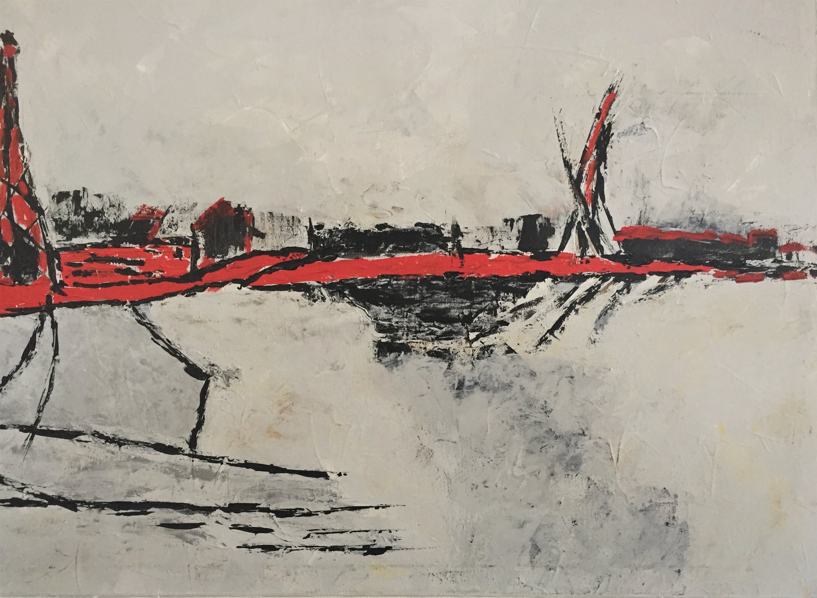Reliëf ontstaan door de verf laag over laag aan te brengen.