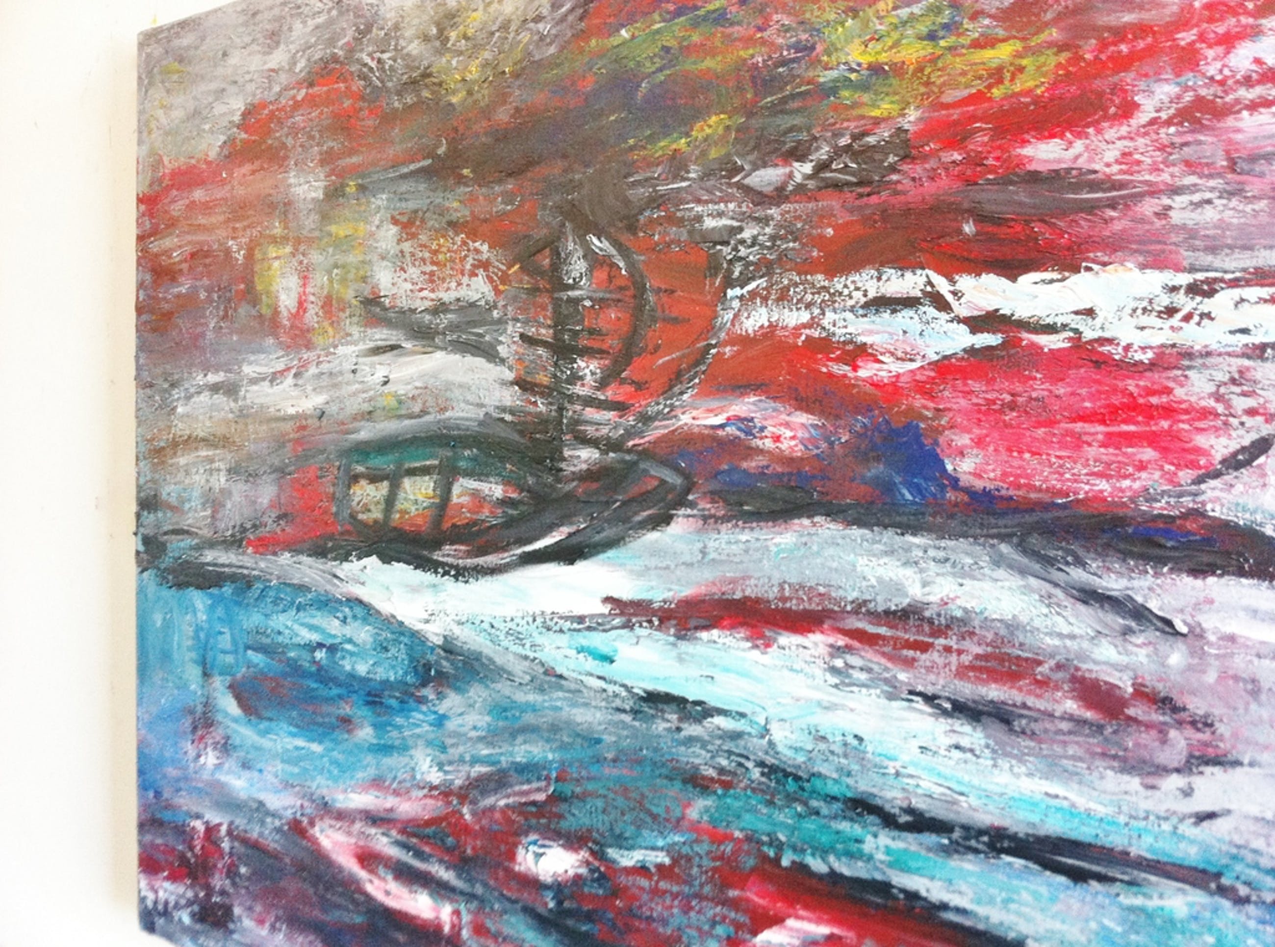 Techniek: Olieverf op canvas - Reliëf door royaal opbrengen olieverf met mes en penseel - zijkanten mee