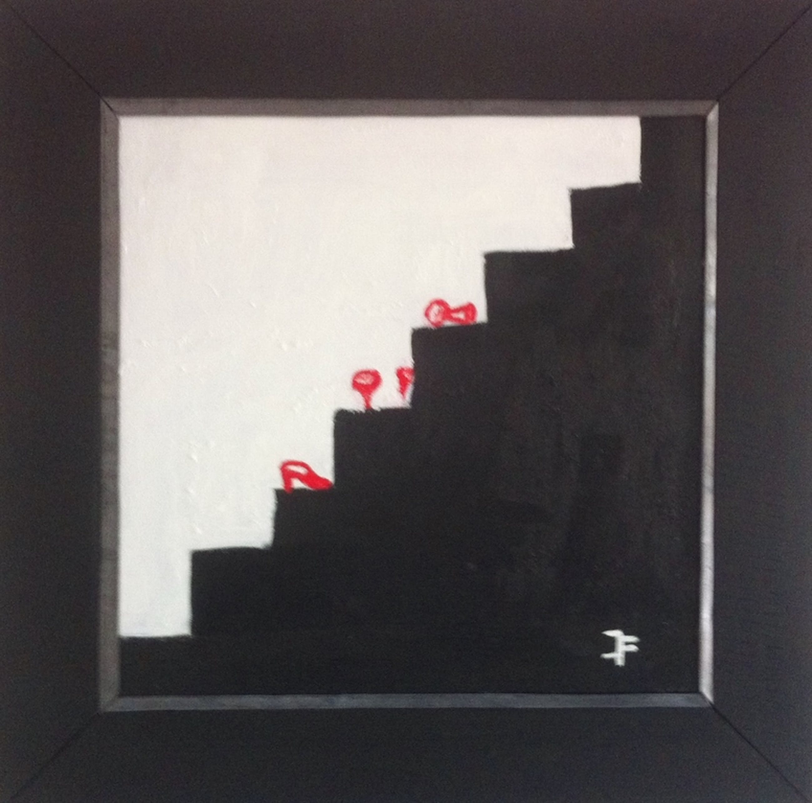 Afm. 56 x 56 cm............Afm. Doek: 40 x 40 cm. Titel: "Oh what a night"