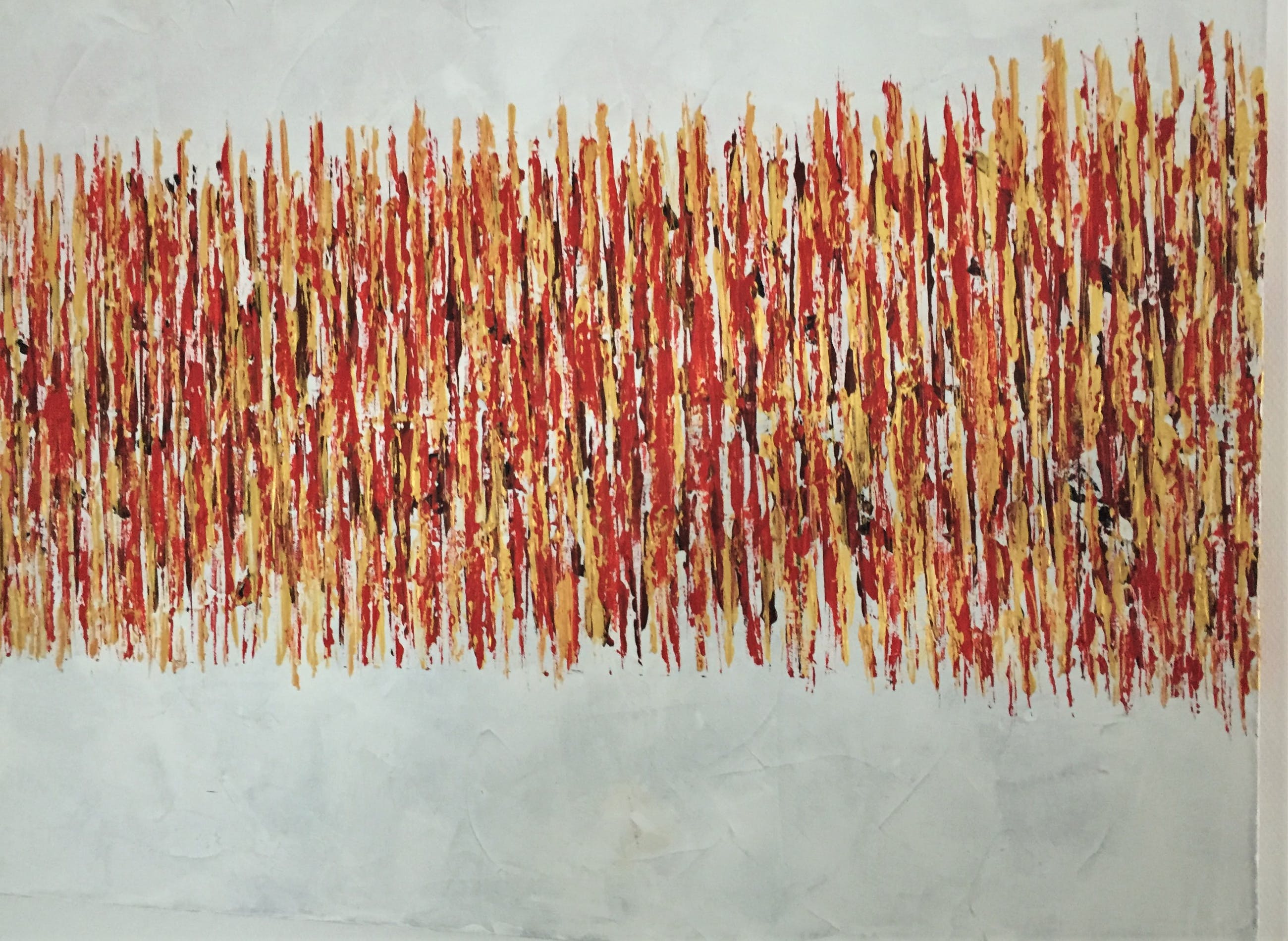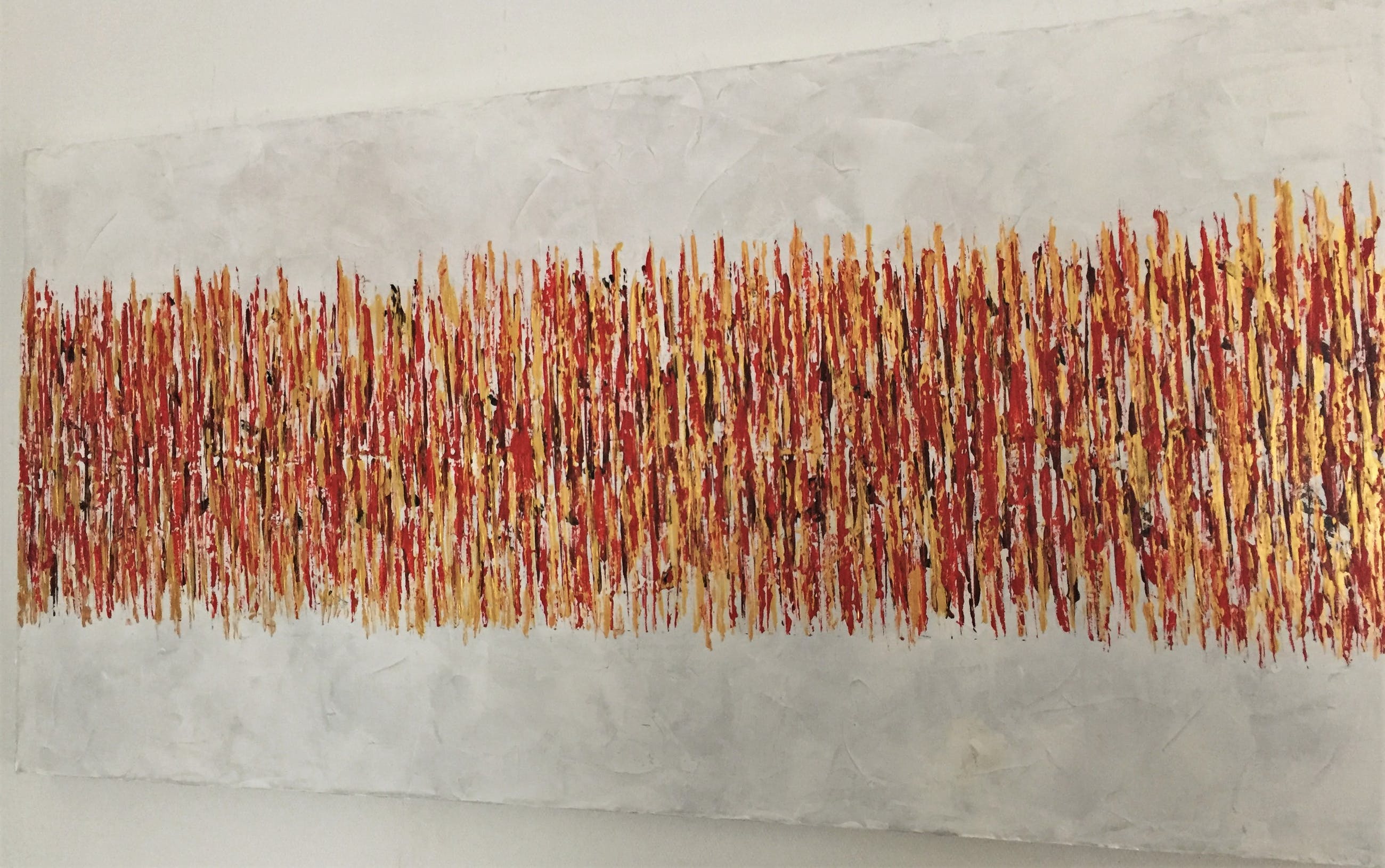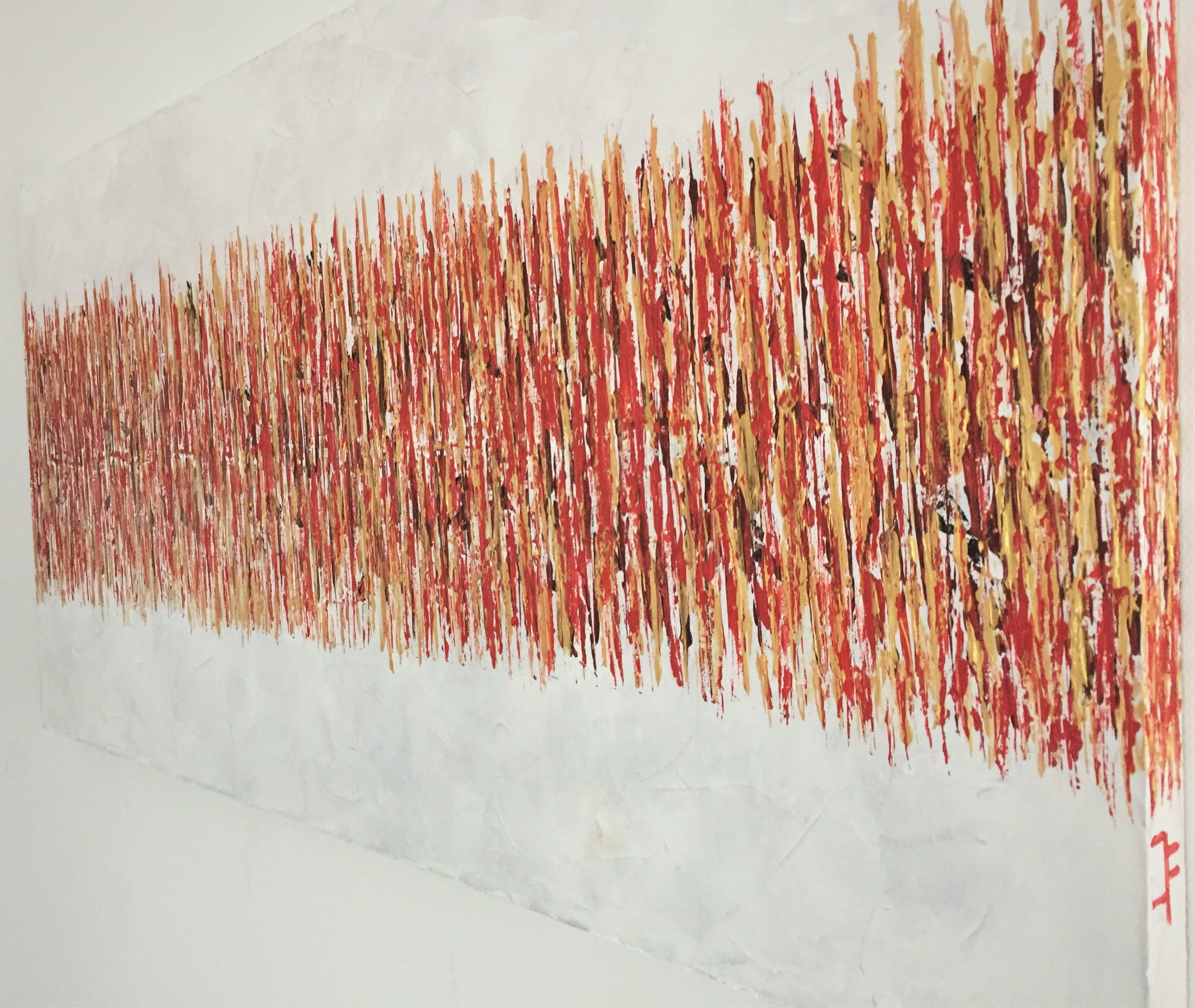 Reliëf ontstaan door de verf laag over laag aan te brengen.