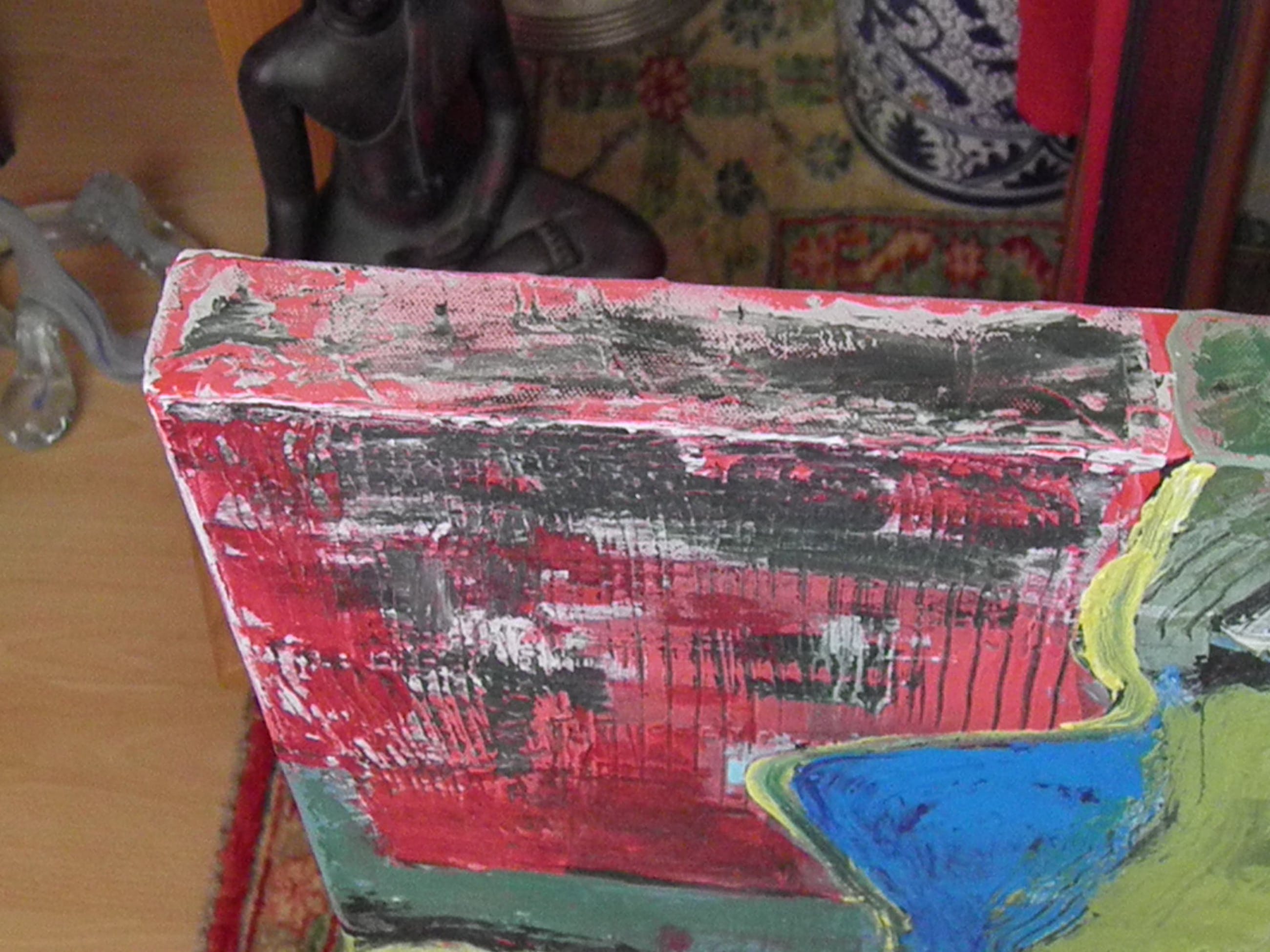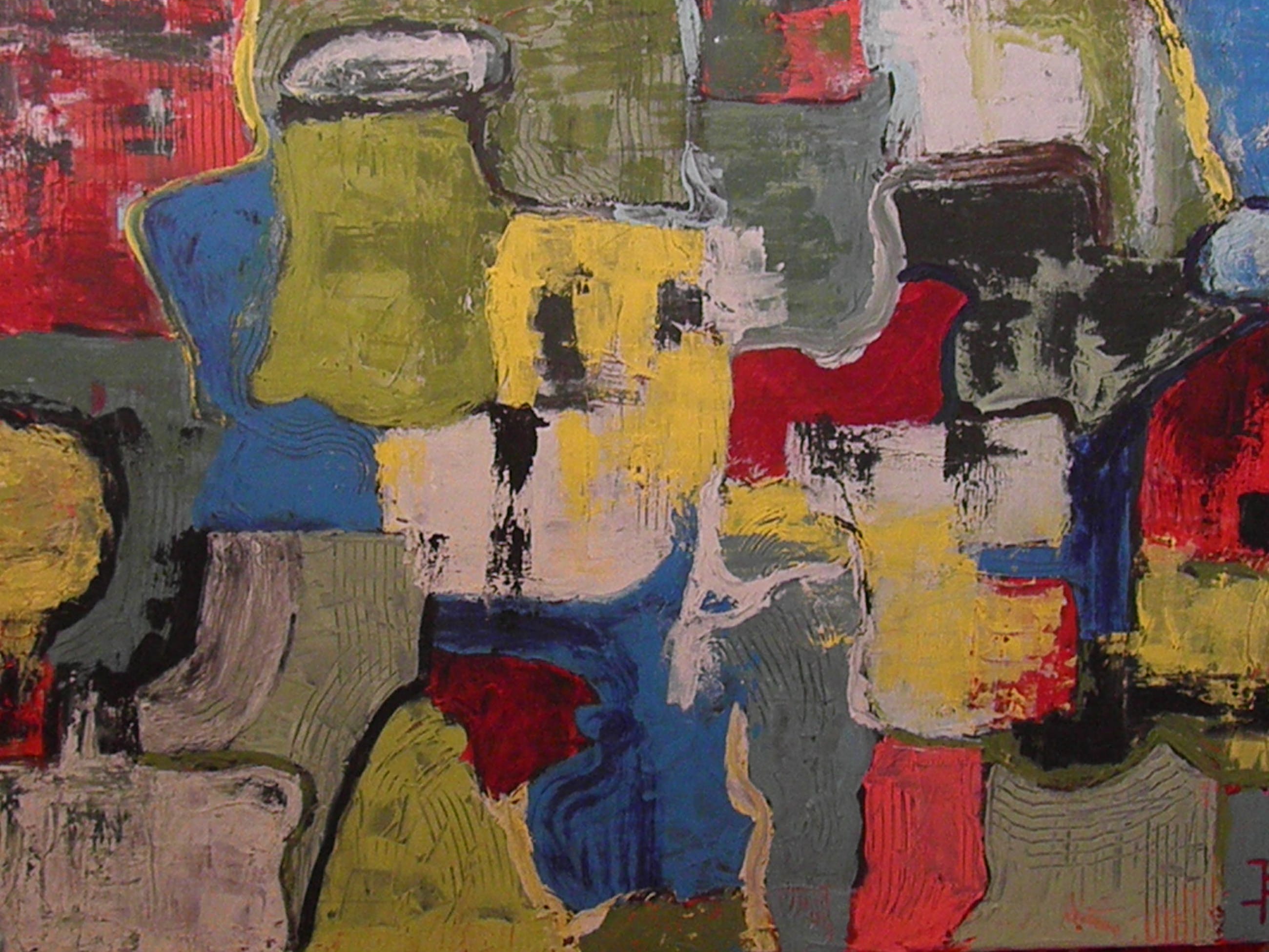 Intrigerend werk van John Foppen. Het is een mix van olie en acrylverf op ongeprepareerd canvas. Reliëf ontstaan door de verf laag over laag aan te brengen.