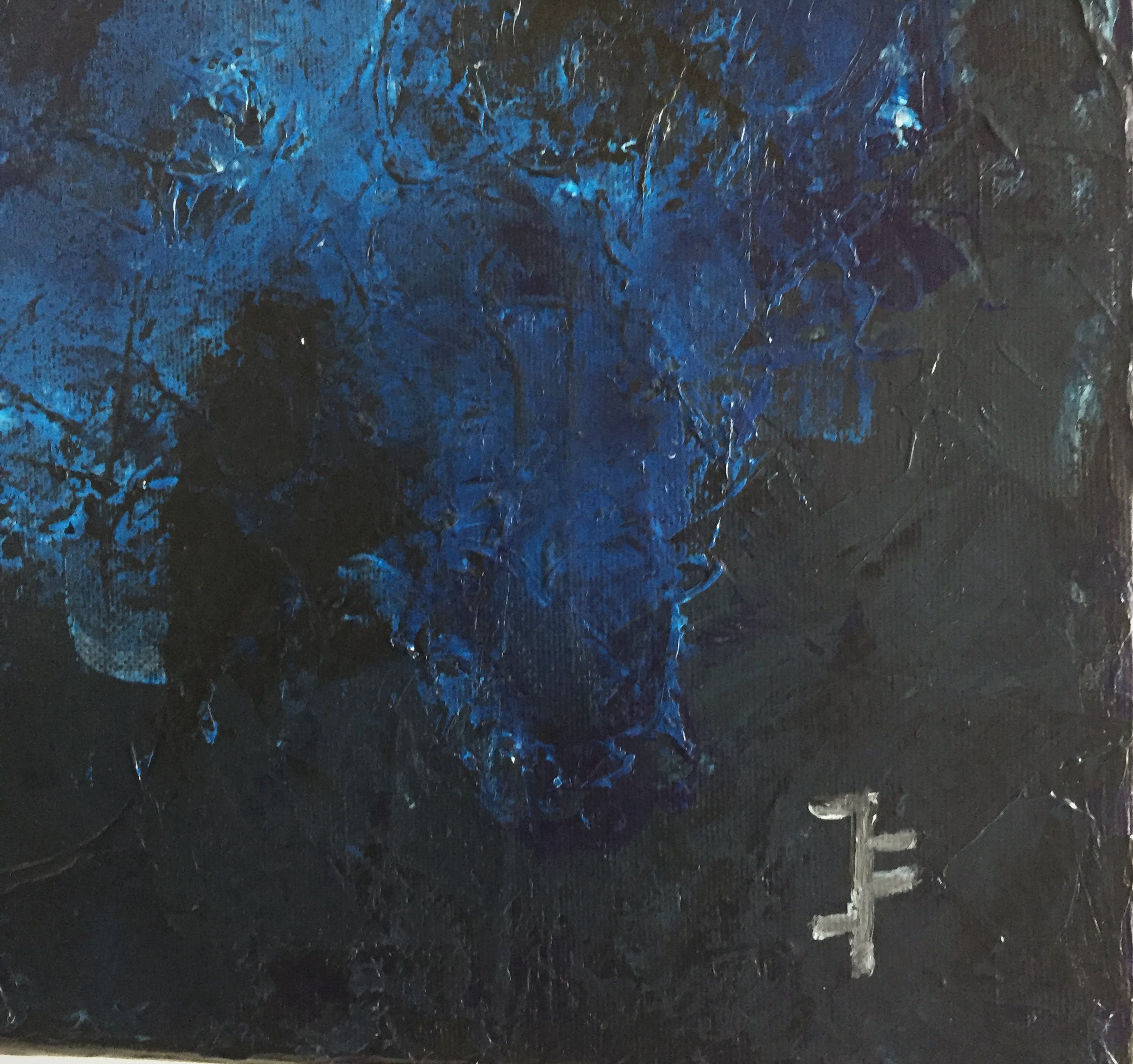 Reliëf ontstaan door de verf, acrylverf, laag over laag aan te brengen. De zijkanten, 2cm dik, zijn in het schilderij meegenomen, door deze afwerking is een lijst overbodig
