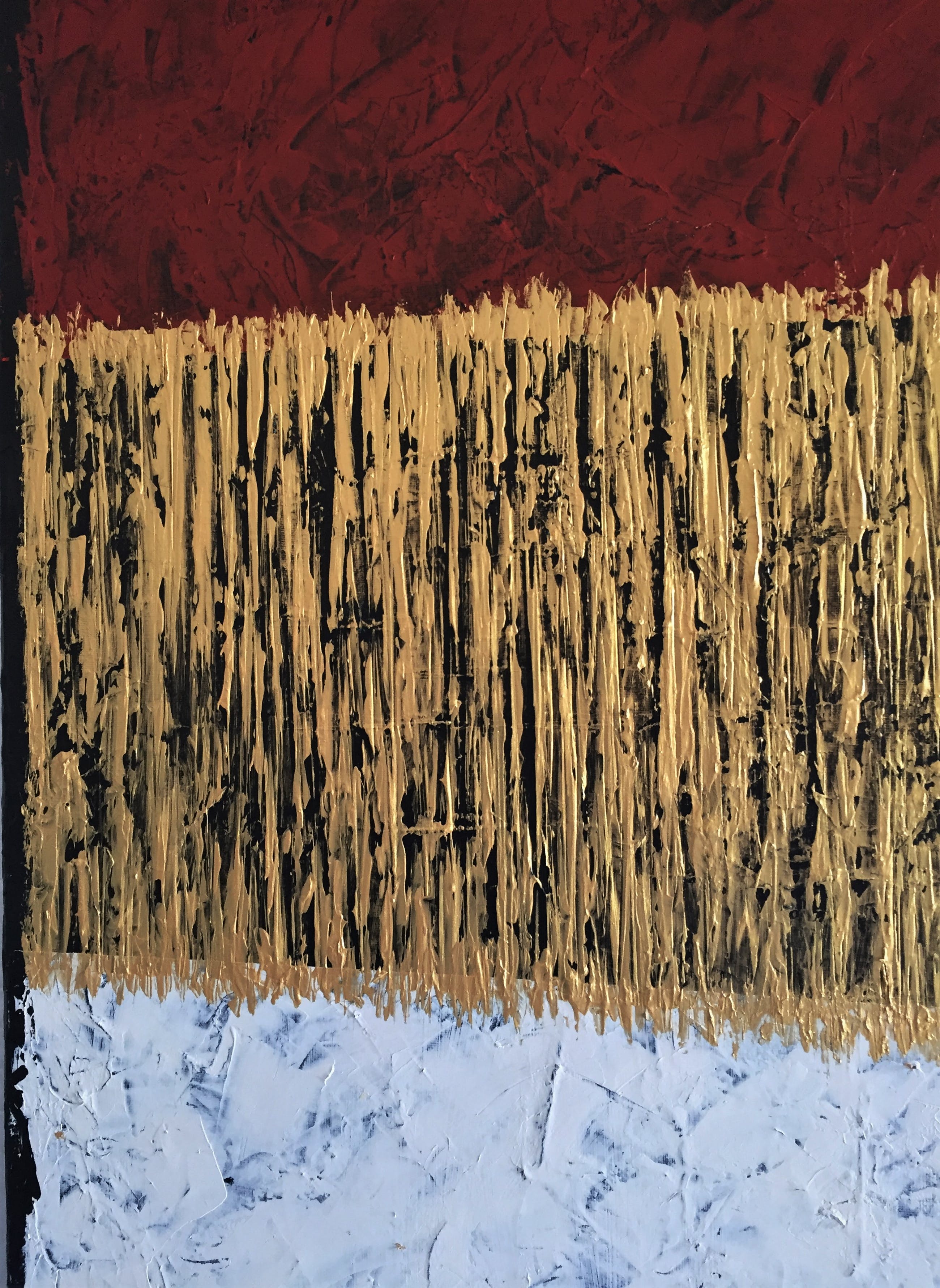 Reliëf ontstaan door de verf laag over laag aan te brengen.