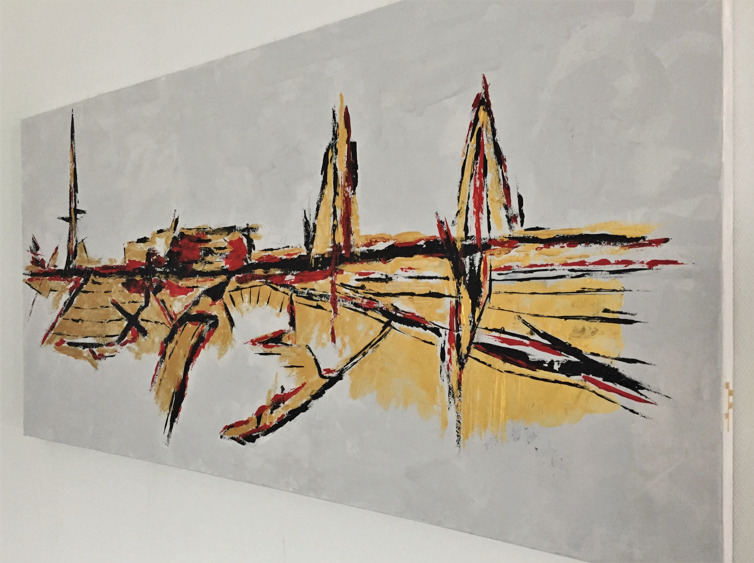 Reliëf ontstaan door de verf laag over laag aan te brengen.