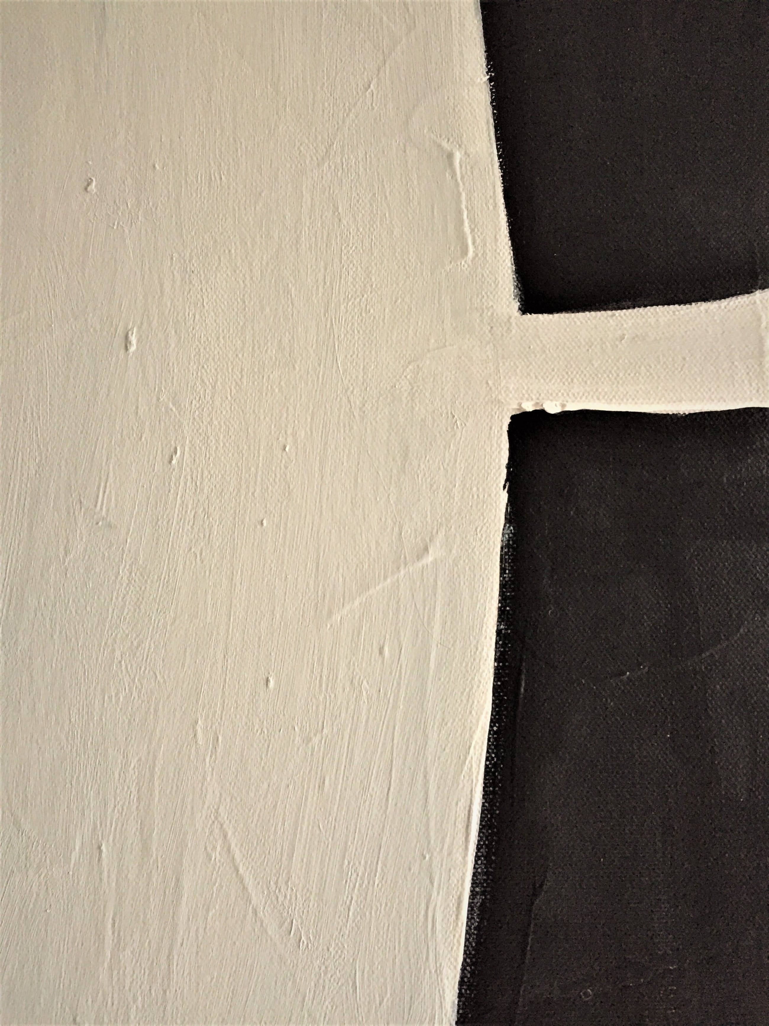 Reliëf ontstaan door de verf, Mix acrylverf, laag over laag aan te brengen. De zijkanten, 4cm dik zijn in het schilderij meegenomen, door deze afwerking is een lijst overbodig