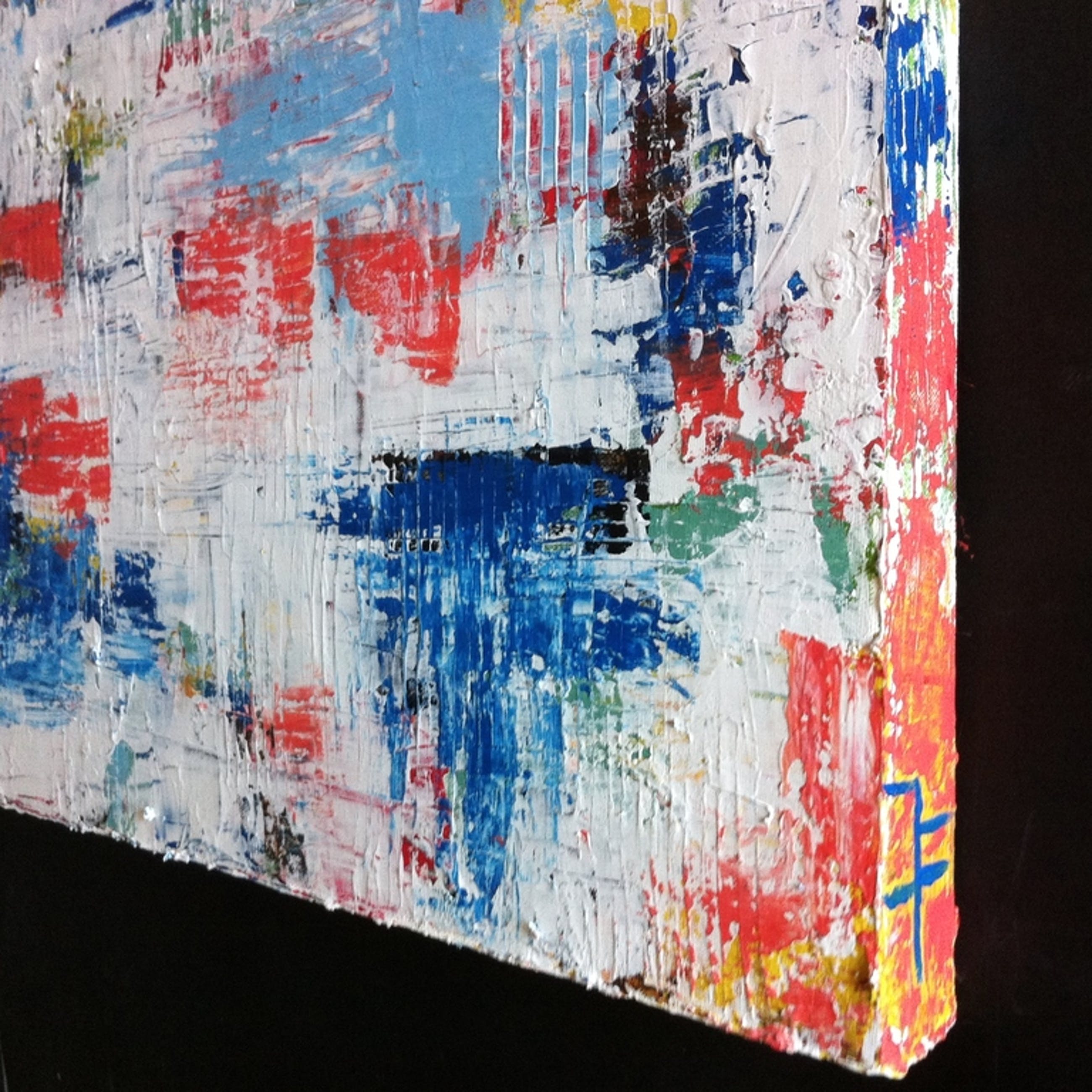 Techniek: Mix olie-/acrylverf op 3D canvas - Reliëf: door meerdere lagen verf op te brengen met mes en penseel.