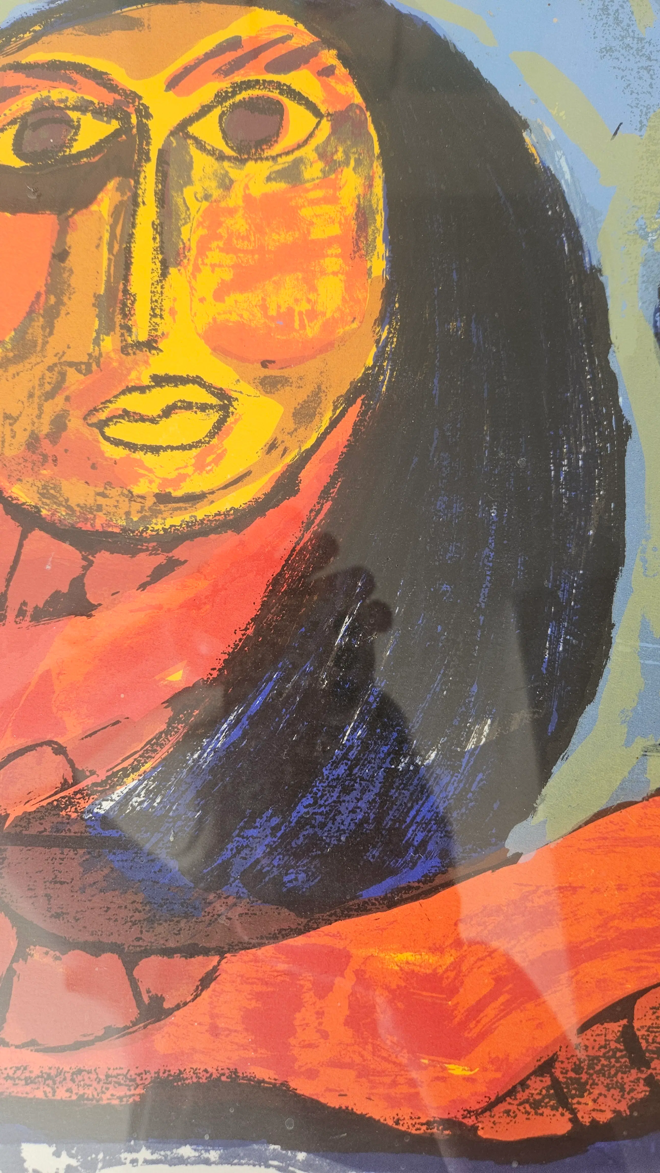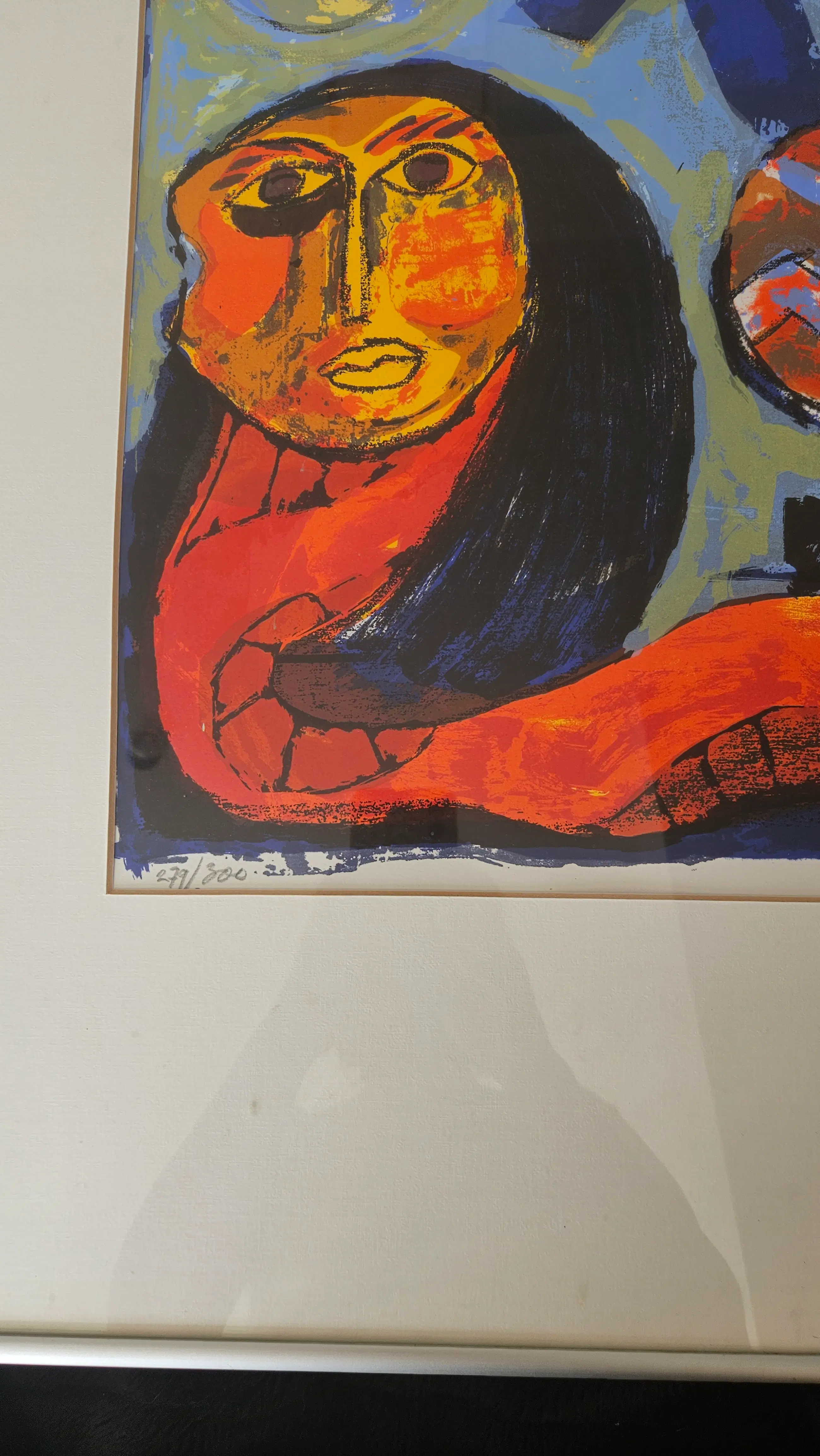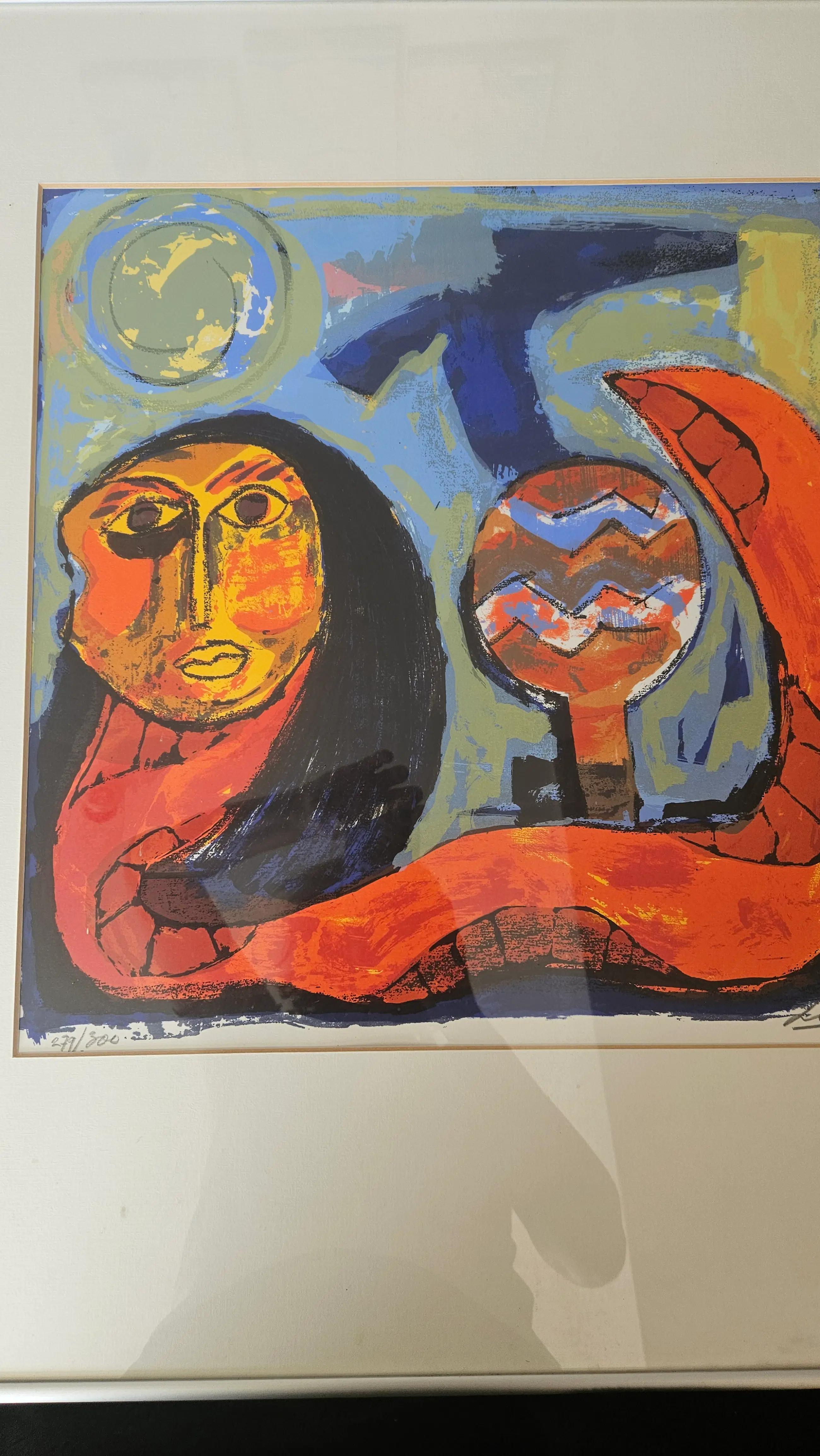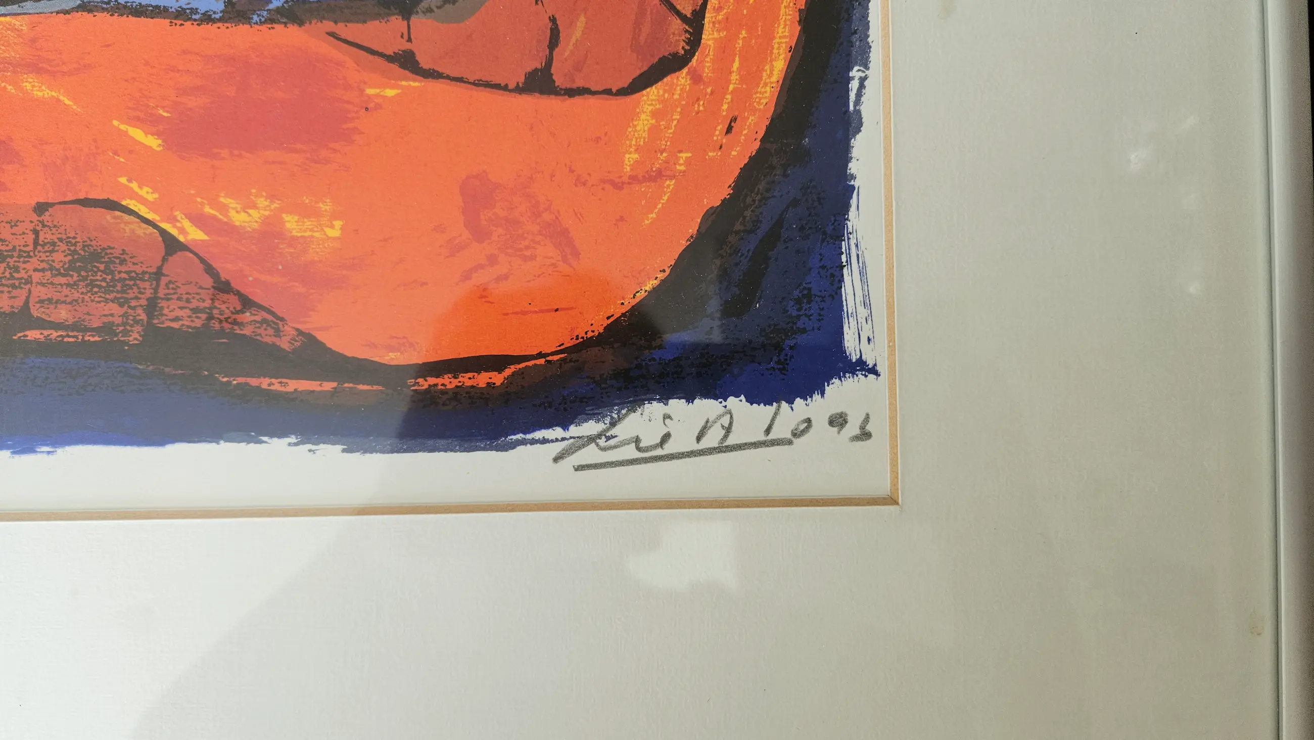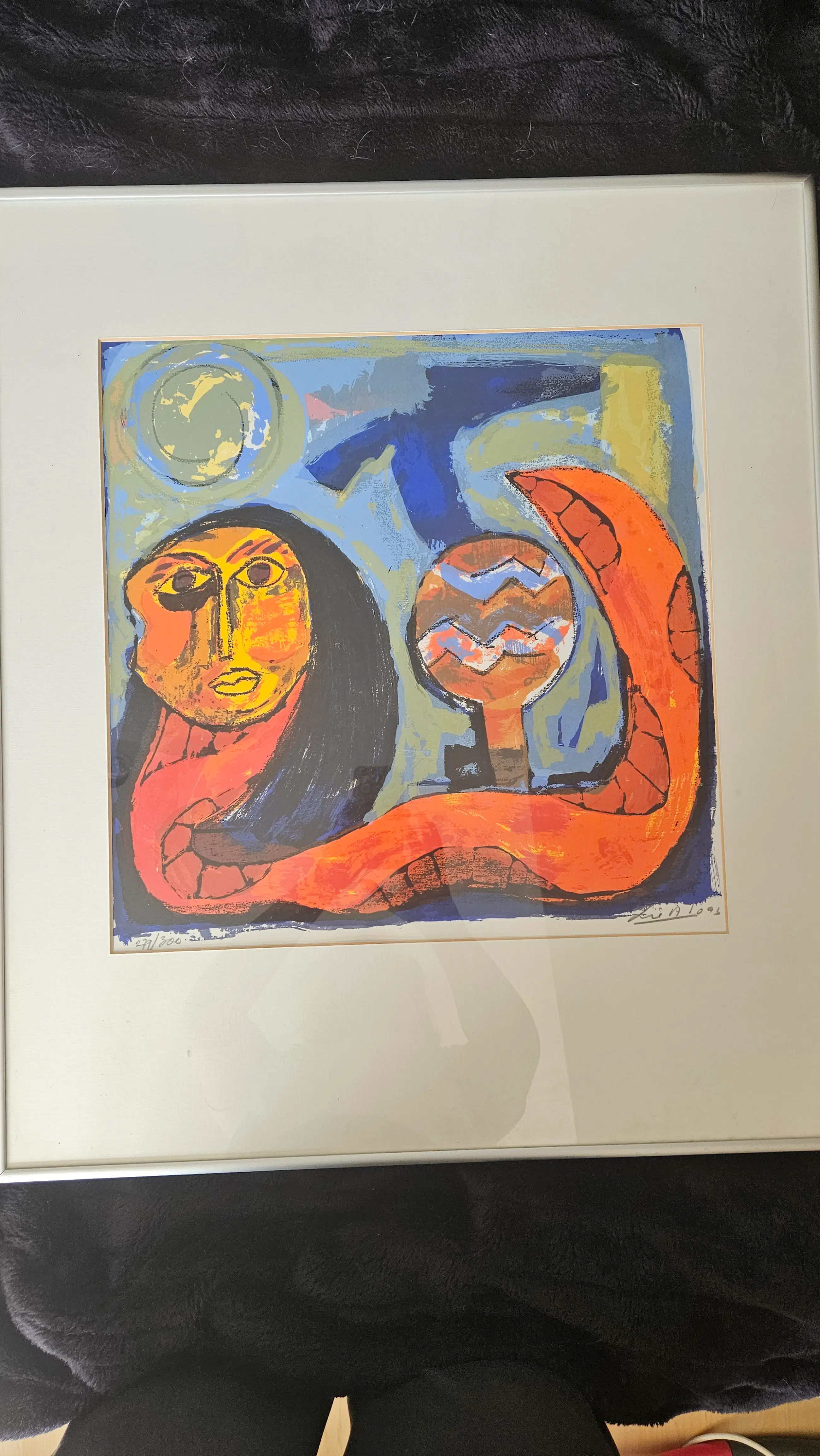 Mooie abstracte zeefdruk van John Lie A Foe. Afgedrukt op dik papier, door de maker gesigneerd, genummerd en gedateerd. Het werk is in nieuwstaat en ingelijst in nette lijst met glas