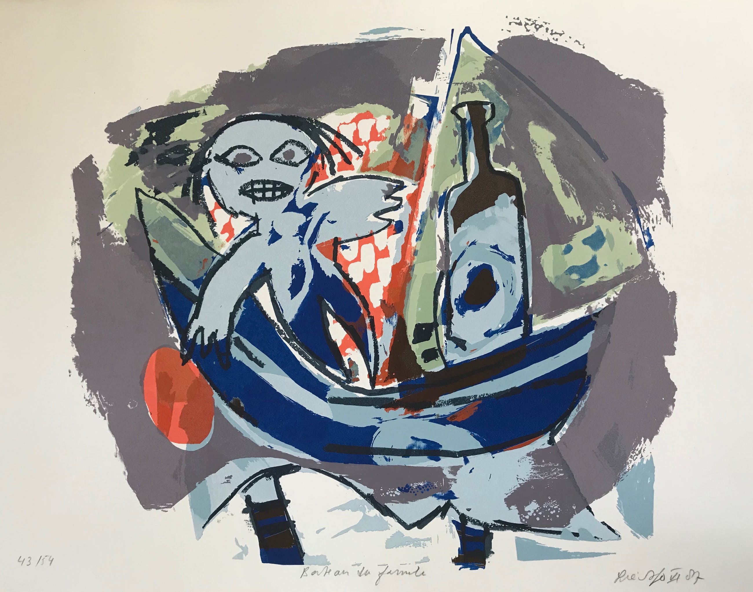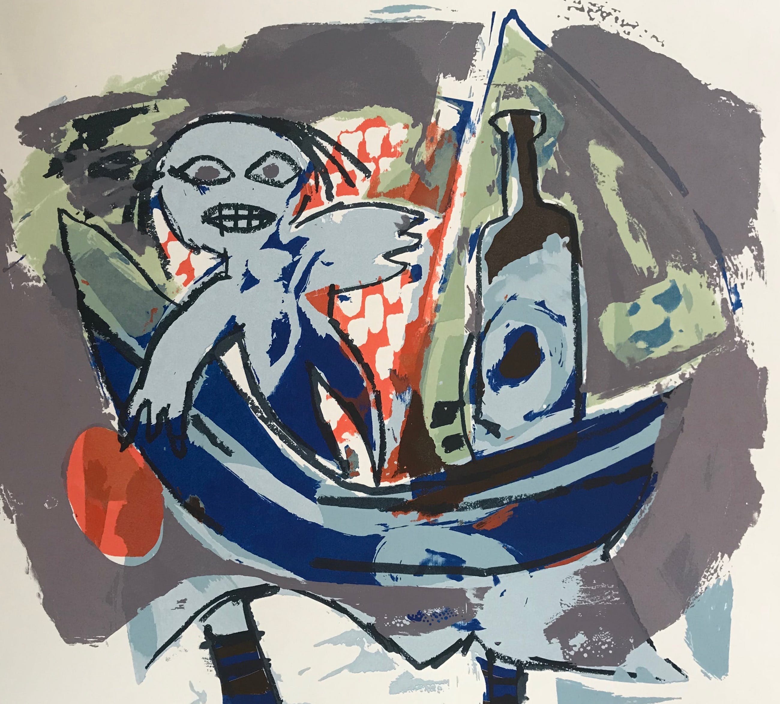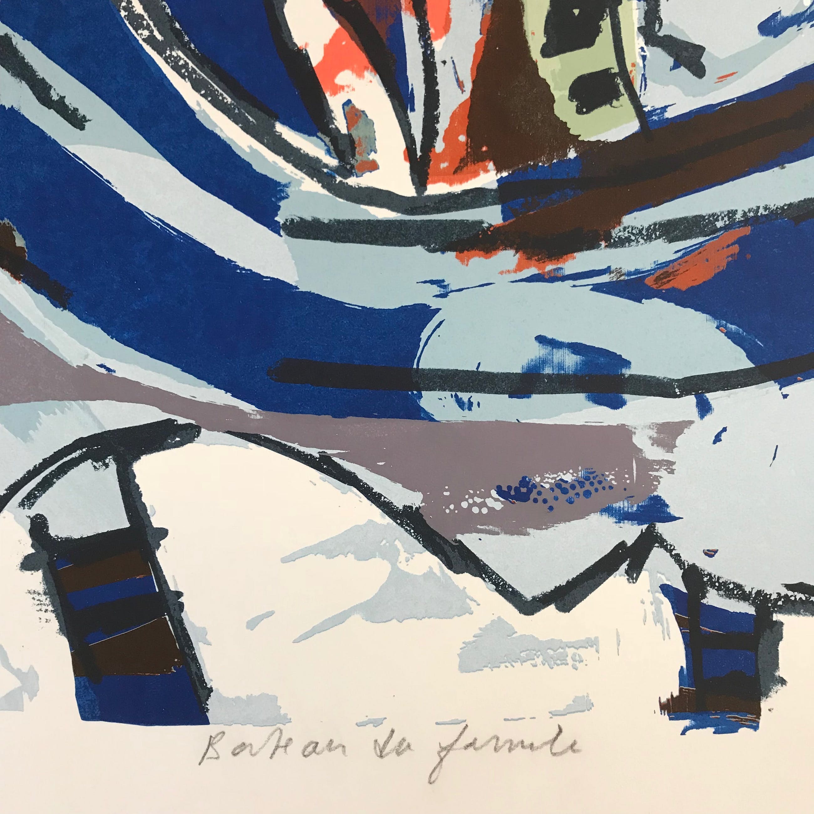 Mooie figuratieve zeefdruk van de Surinaamse kunstenaar John Lie A Fo. Titel: 'Bateau...' Jaar 1987 Oplage: 43/54 Getekend, genummerd en gedateerd in potlood door de kunstenaar. Afmeting beeldmaat: 70 x 50 cm De zeefdruk verkeert in prima staat, is nog nooit ingelijst geweest. Zal in stevige koker verzonden worden! Verzending B: 12€ NL: 20€