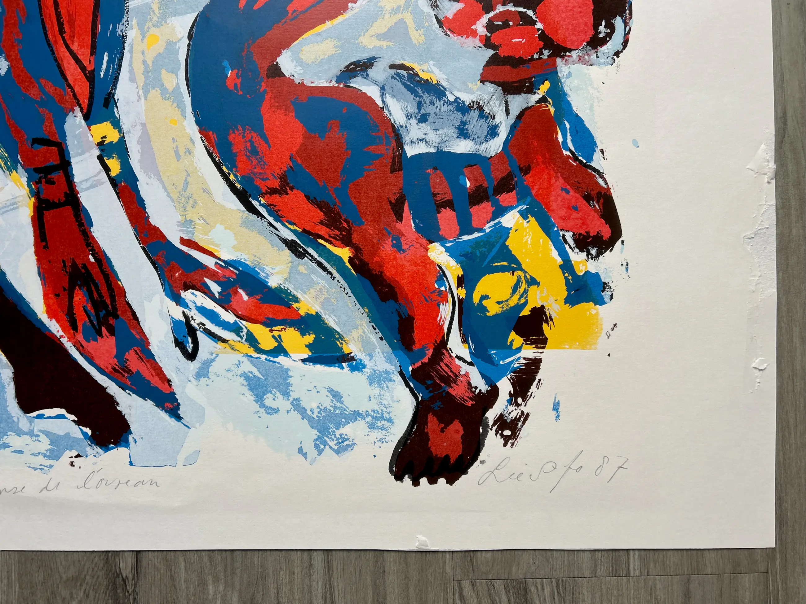 Conditie: zeer goed. Rechterrand vel heeft lichte beschadiging door passe-partout en onderkant vel deukje, zie foto's. Oplage: 11/50. Wordt zorgvuldig verpakt en verzekerd verzonden.