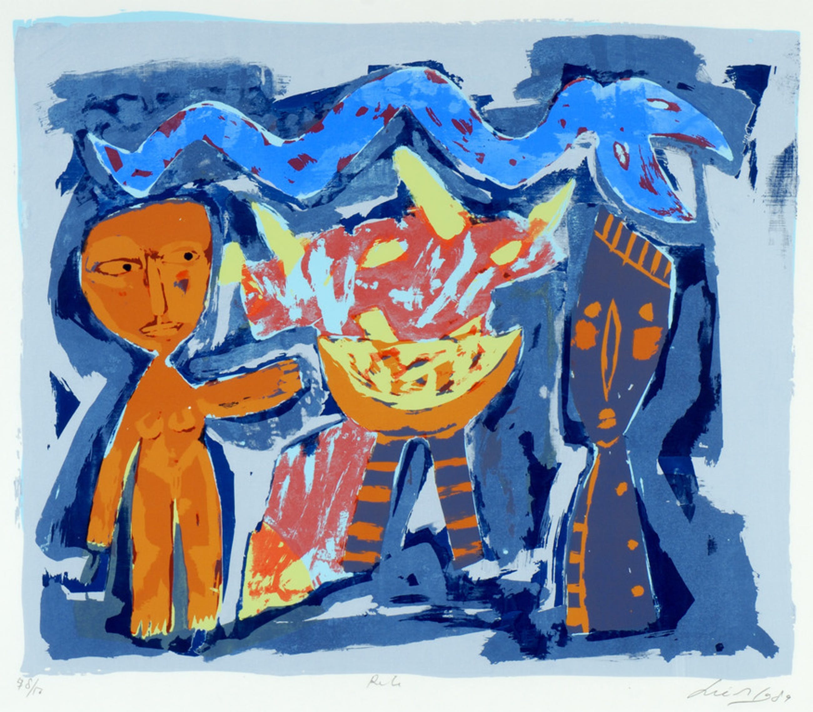 Mooi kleurrijke zeefdruk van John Lie A Fo, prentmaat 55 x 73 cm en met passe partout 80 x 80 cm. Verkeerd in perfecte staat. Gedrukt in een oplage van 50 exemplaren, dit is nummer 22. Kan worden afgehaald met passe partout in onze galerie in Arkel of verzonden worden zonder passe partou tper aangetekende post in een stevige kartonnen verpakking.